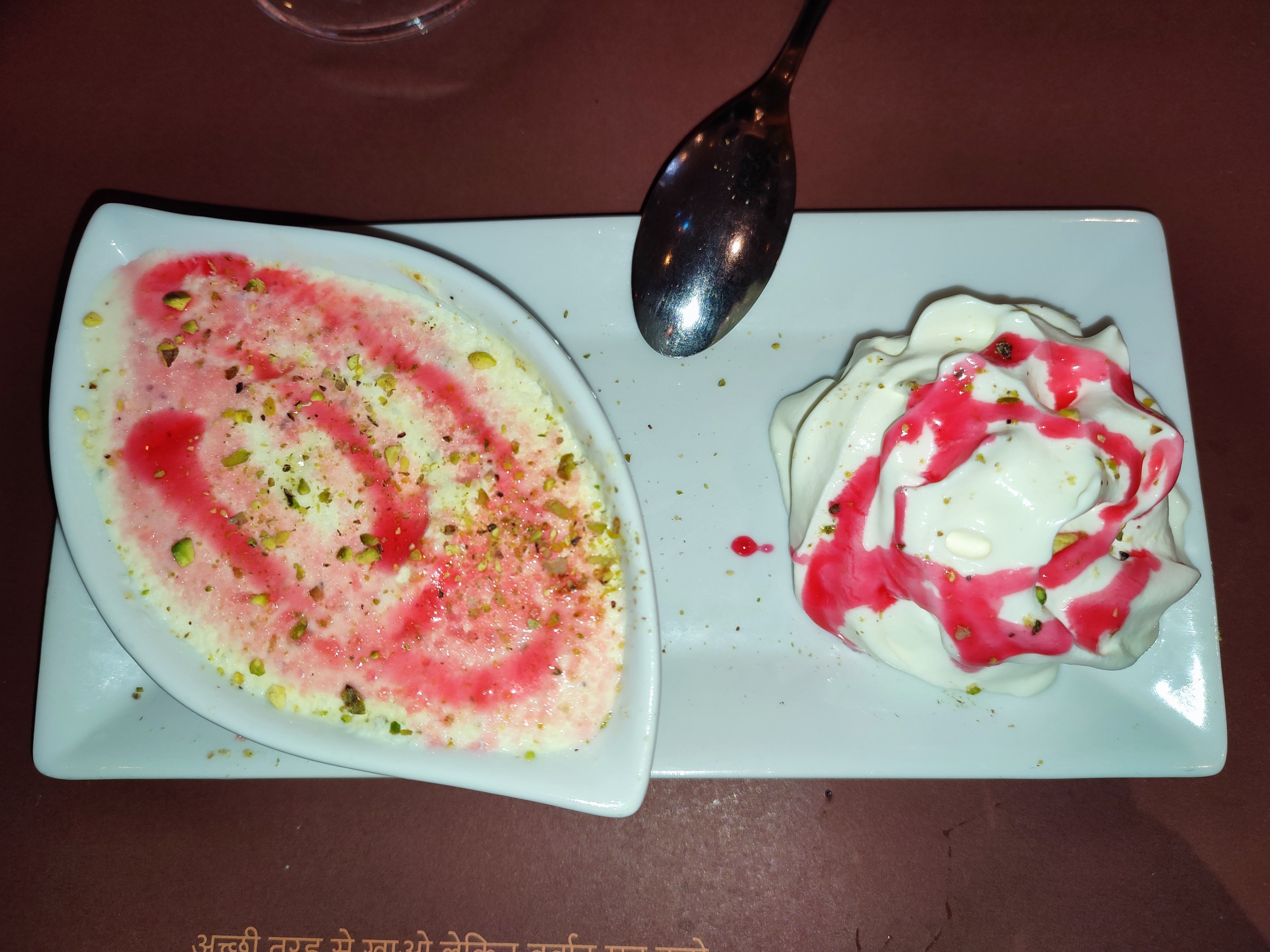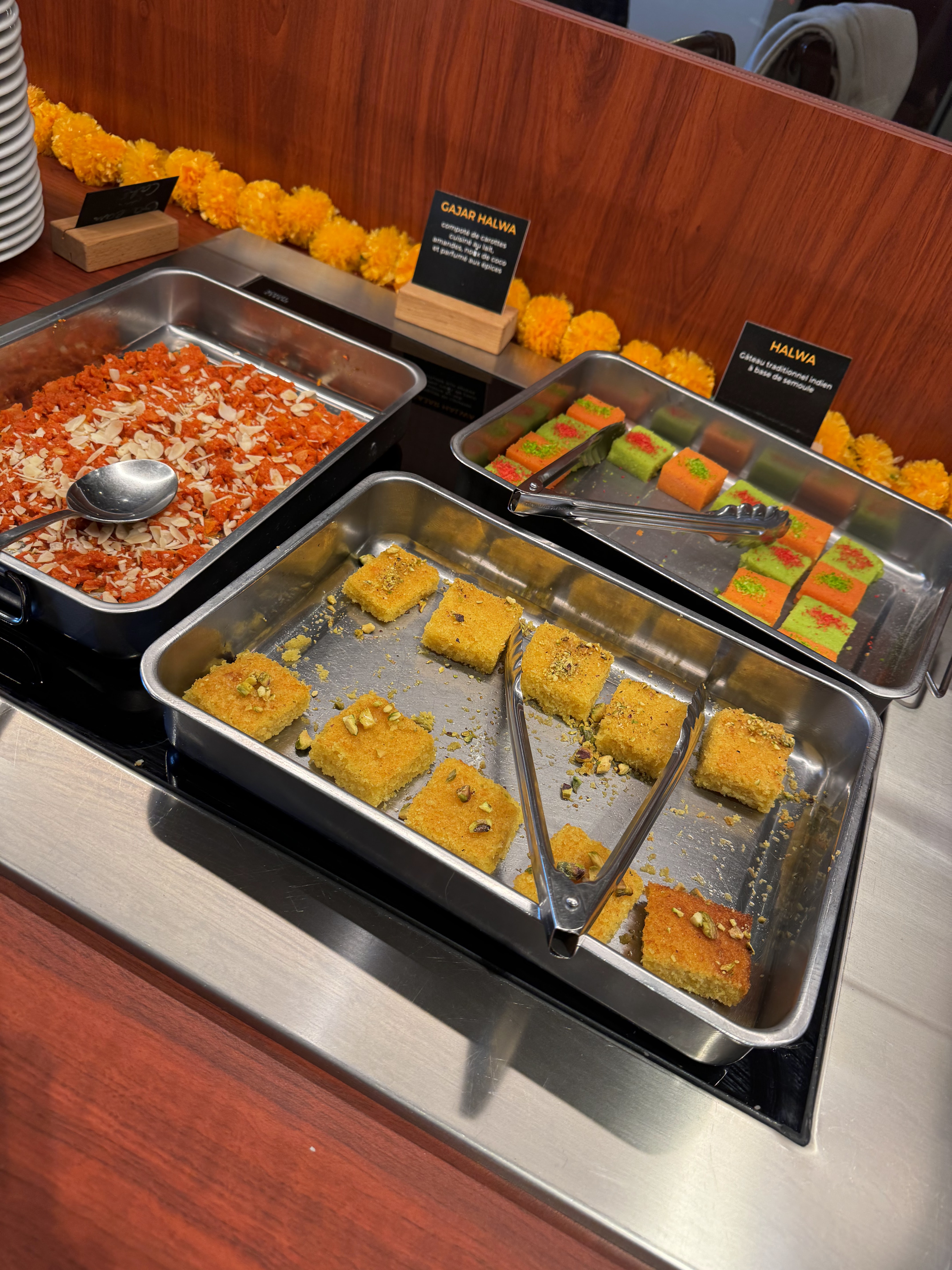 J ai bien aimé les plats dans l ensemble Nous sommes habitués à manger indien Plutôt la cuisine du sud, c est bon ça manque d épices selon nous après il faut plaire à tout le monde. Le seul point négatif pour nous sont les desserts. 🙅♀️La mousse à la rose et la pistache n ont rien à faire là en terme de saveur. Les petits gâteaux européens industriels sans plus dommage de ne pas finir de la meilleure des façons. Peut être proposer avec un petit supplément de 1ou 2 euros des dessert indien comme le gulab jamun, coconut laddoo on peux les faire maison. une glace à la rose, pistache et vanille meme un moelleux chocolat revisité ça peut être sympas. Sinon oui je reviendrai et je partage votre adresse. Un buffet qualitatif pour les entrées et plat de résistance ❤️