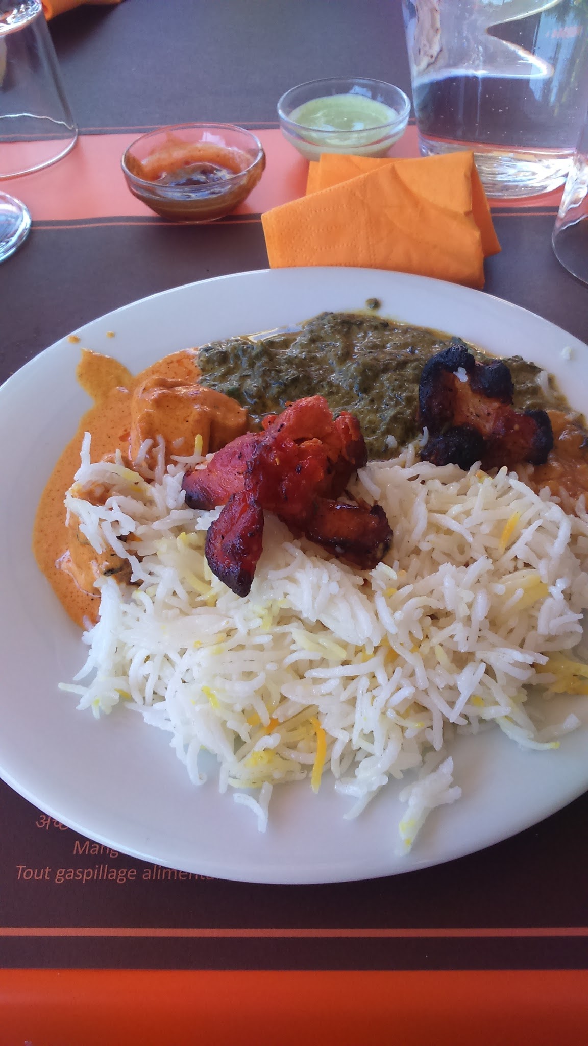 Très bonne expérience culinaire dans le monde de l'Inde. Connaissant quelques plats de la part d'une amie indienne, je trouve les assaisonnements cohérents sans être trop pimenté... Voyage culinaire garanti !