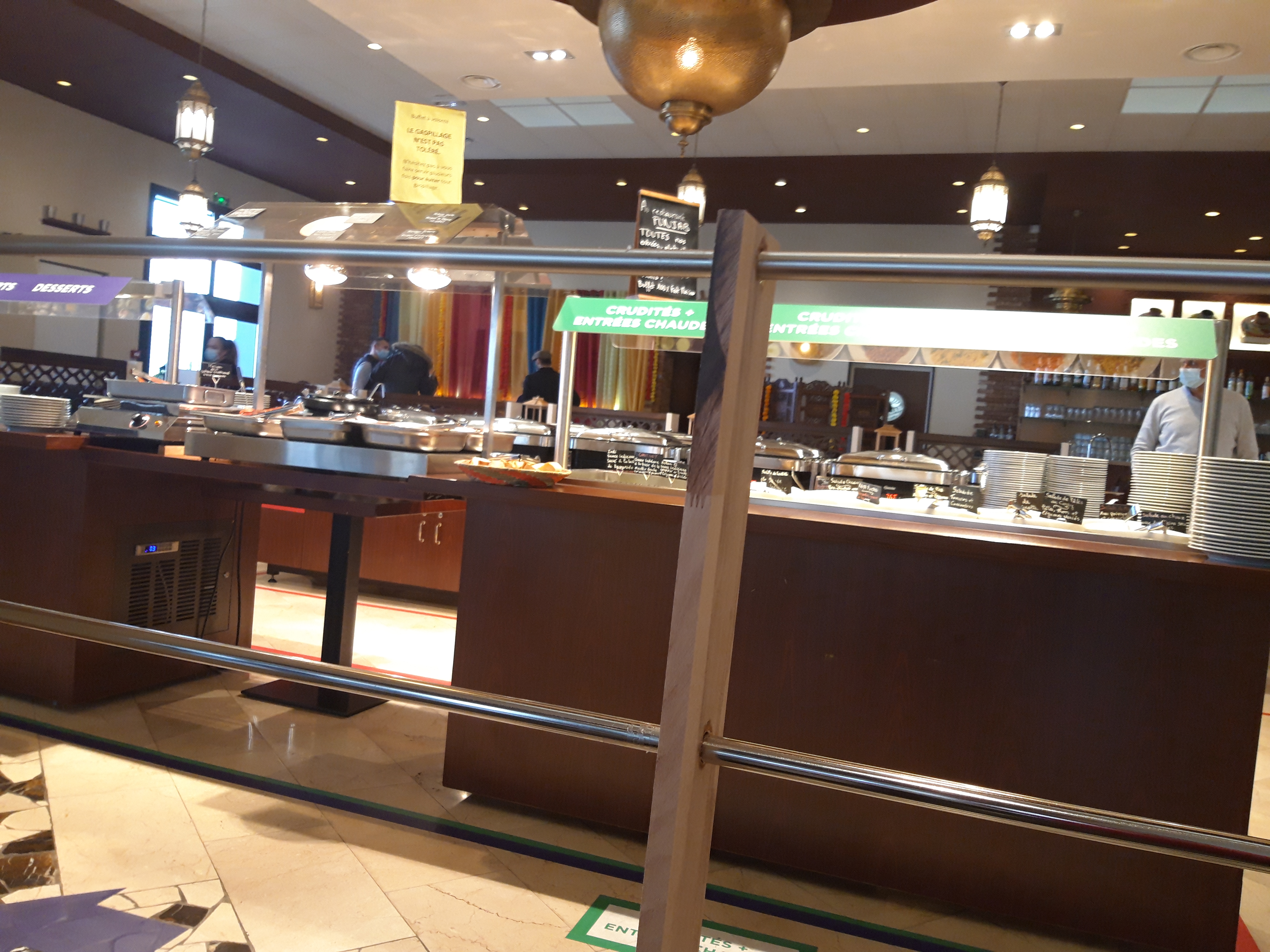 Jolie cadre, les mesures sanitaires sont très présente. Le choix du buffet est assez varié, de quoi rouler sous la table si on veux. Par contre le gâchis n'est pas toléré et sera facture en cas d'abus.