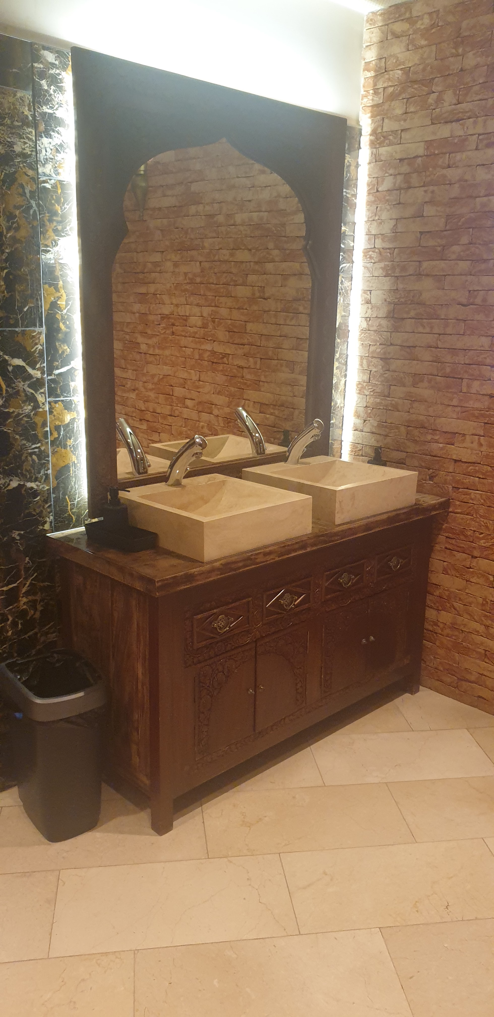 Le restaurant est très Propre et le service pas mal.Cependant, j'ai eu 2 bémols.Jai demandé une carafe d'eau et le serveur à du prendre bien 1/4 pour me le ramener.Il continuait à débarrasser les tables et pourtant il n'y avait pas beaucoup de clients et beaucoup de tables vides.Jai du le rappeler car il m'avait oublié. Le 2eme point négatif, j'ai pris du poulet qui était un peu trop cuit à mon goût que j'ai tout simplement pas aimé, j'ai dû le laisser dans l'assiette et aller me servir de l'agneau et la serveuse me fit une remarque me disant :nous nadmettons pas le gaspillage,la prochaine fois vous paierai 5€ de plus.Mais franchement juste 2 petites chutes de poulet.La question est:fallait t'il que je me force à manger ce qui ne m'a pas plut car trop sec pour éviter un soi disant gaspillage ?