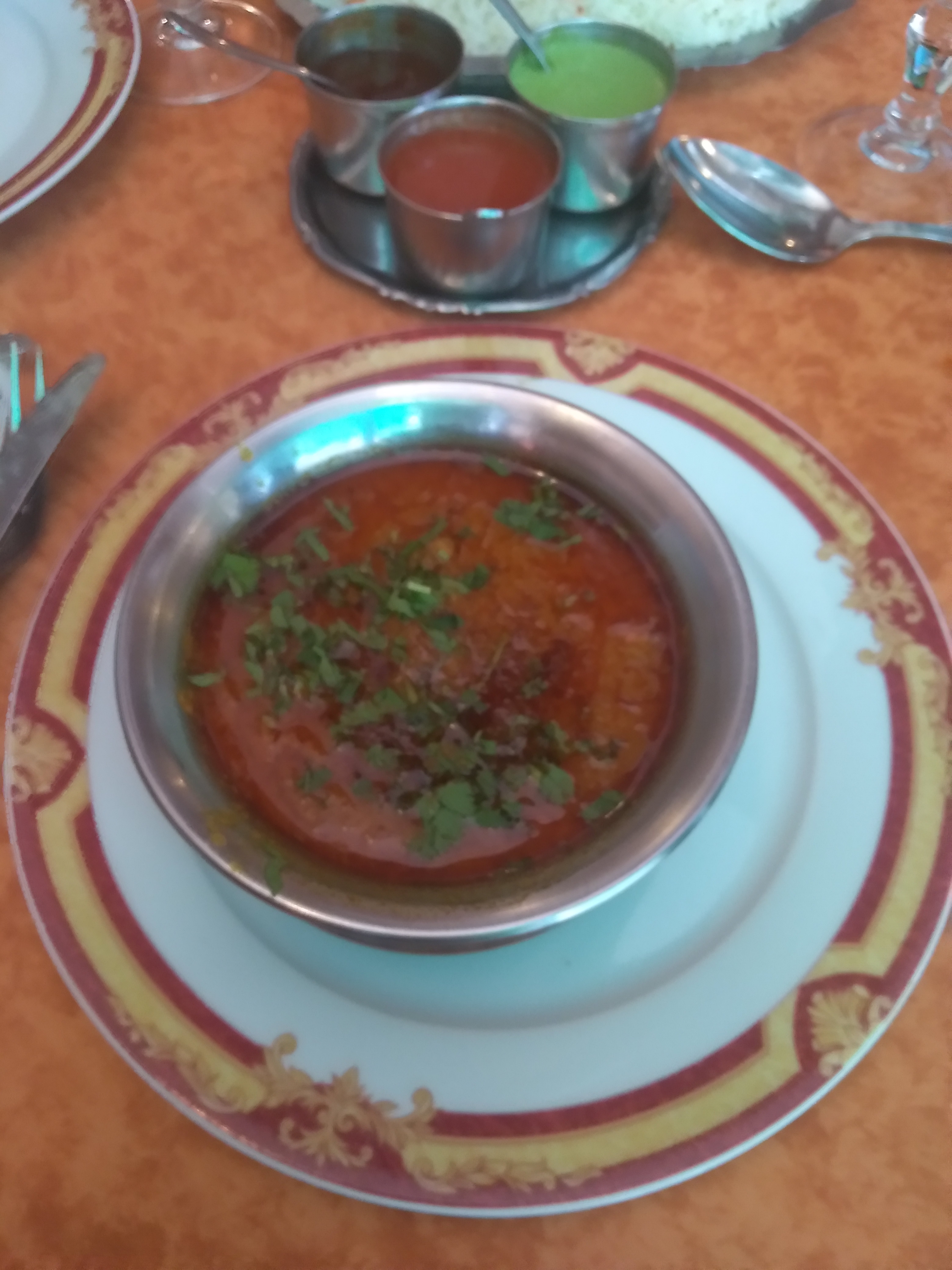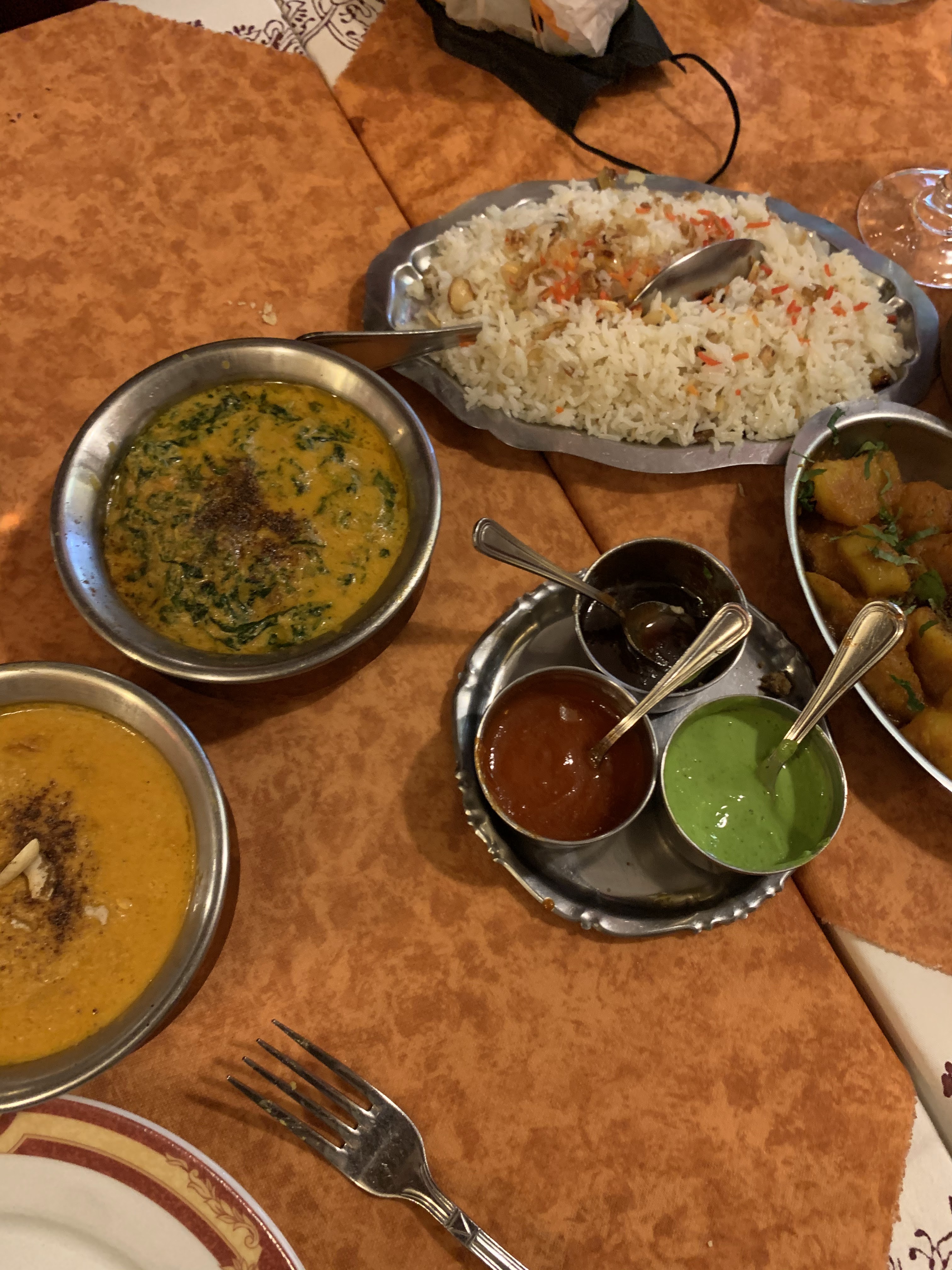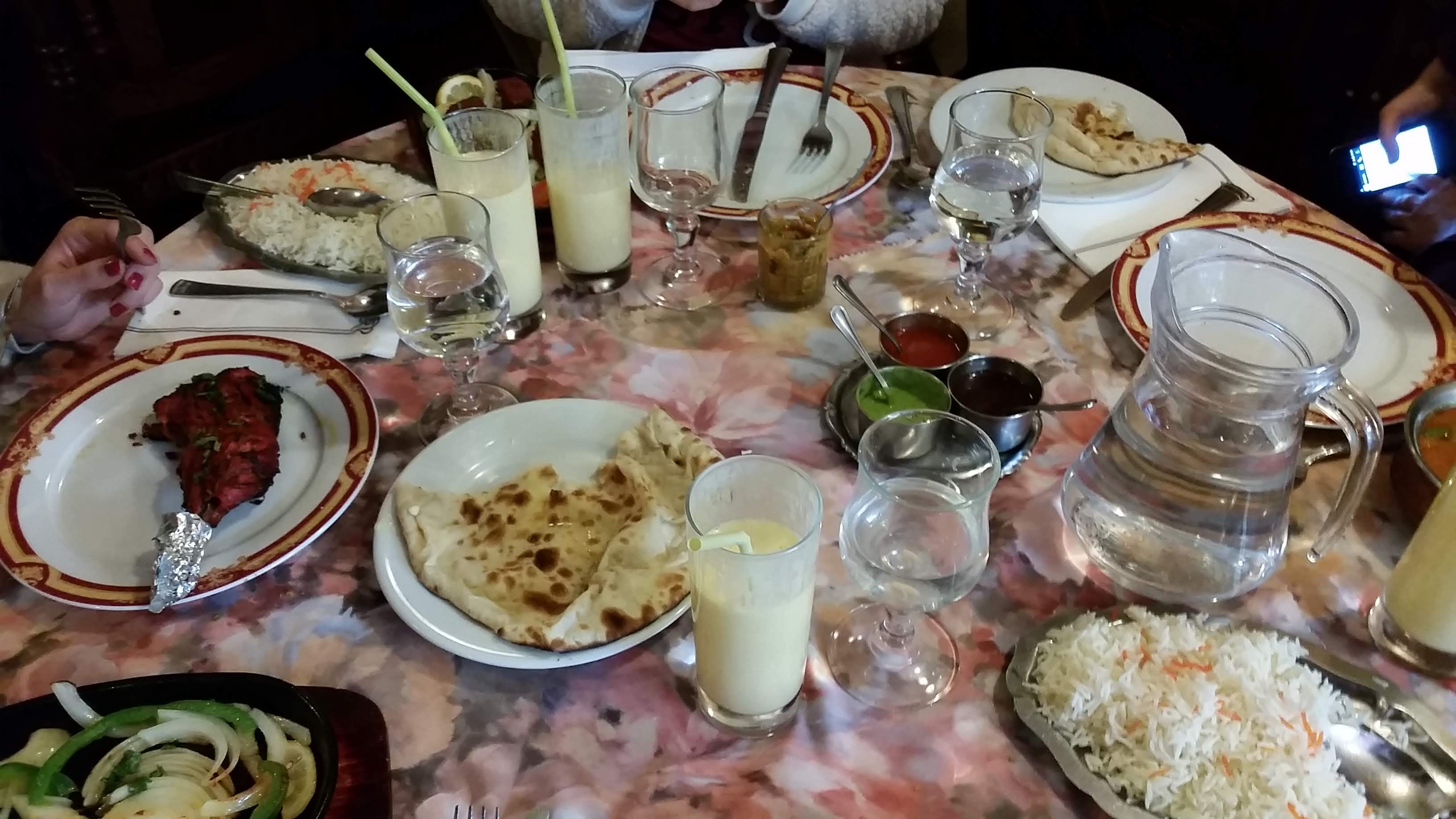 Accueil très déplaisant. Salle vide, on demande si on peut s'installer pour grignoter, on nous dit oui. Une fois à table, boissons en face de nous, un 2ème serveur se pointe et nous dit de façon très désagréable que non on ne peut pas commander que des entrées, que c'est exceptionnel et que c'est la seule et unique fois (on n'avait pas l'intention d'y retourner de toute façon). Nourriture pas terrible, on a pris un garlic naan chacune et des raïtas. Pas trop de goût, vraiment fade.