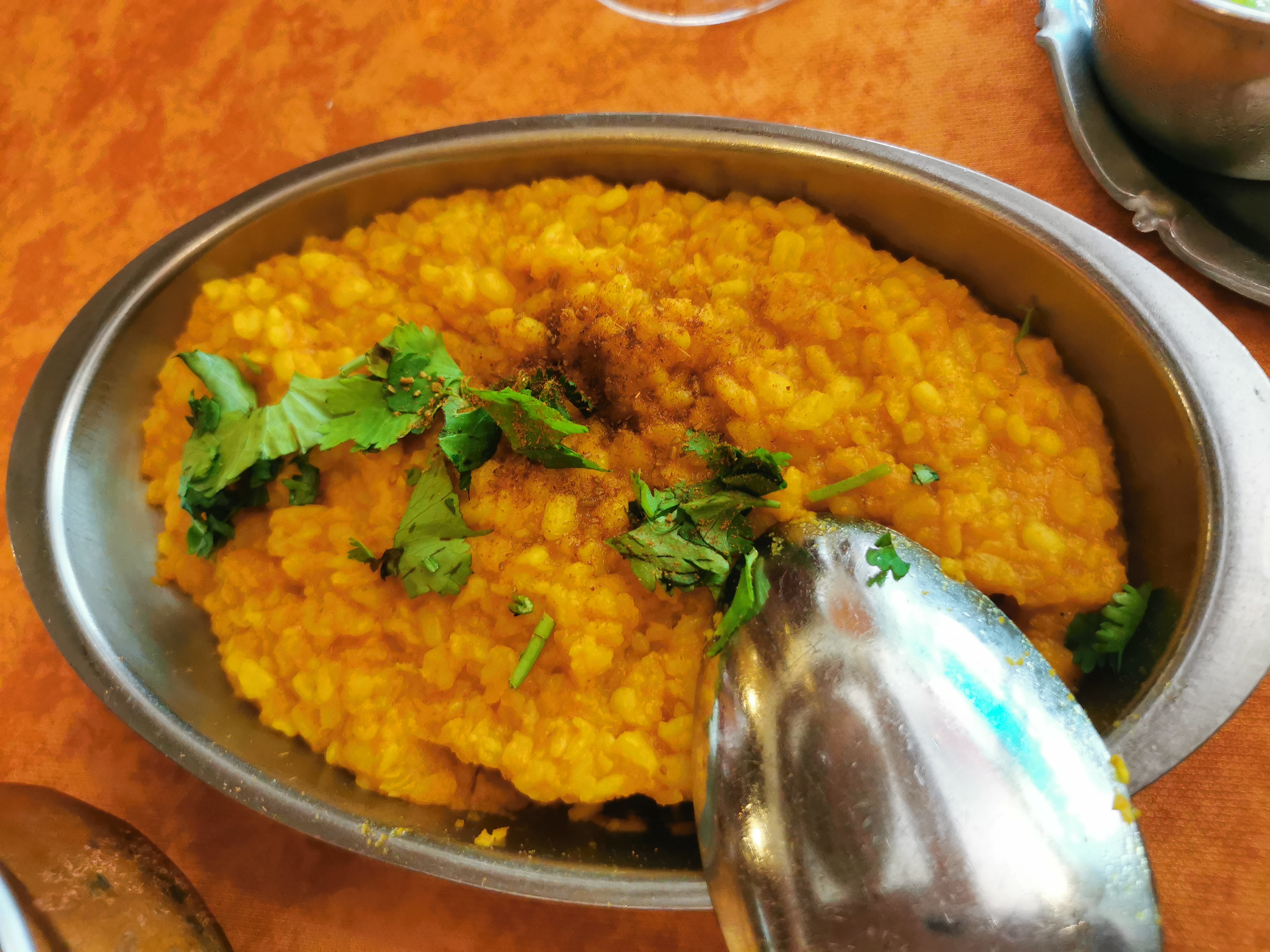 Plats de différentes régions de l'Inde .. salle en rdc , à l'étage et terrasse sur rue piétonne.. personnel accueillant et réactif.. peu d'attente .. différents menus et plats à la carte très abordables. Plats végétariens, naan , et tandoori sur plaque chauffante , lassi , gulfi .. Nourriture réconfortante et bien servie ,décor typique.