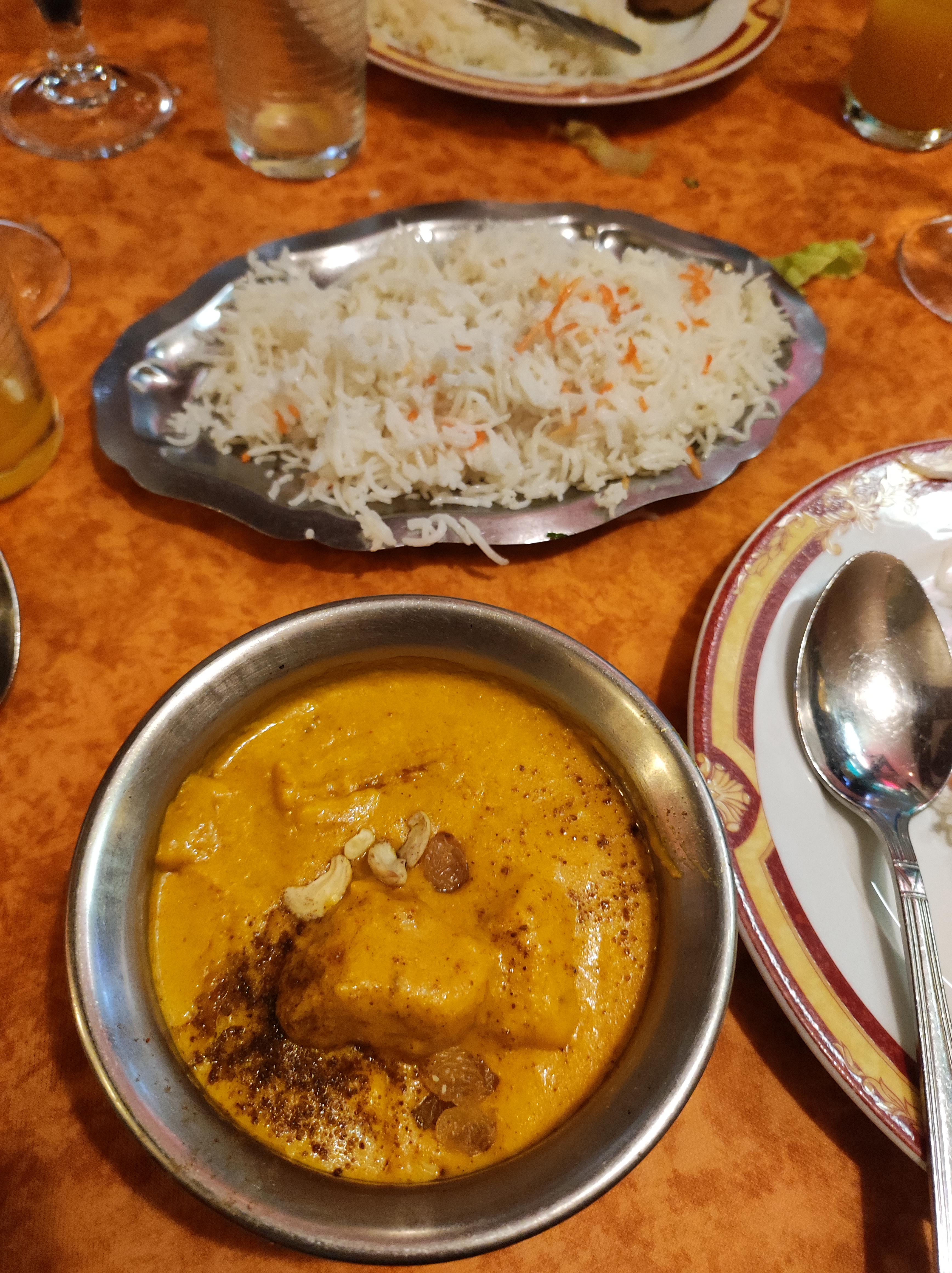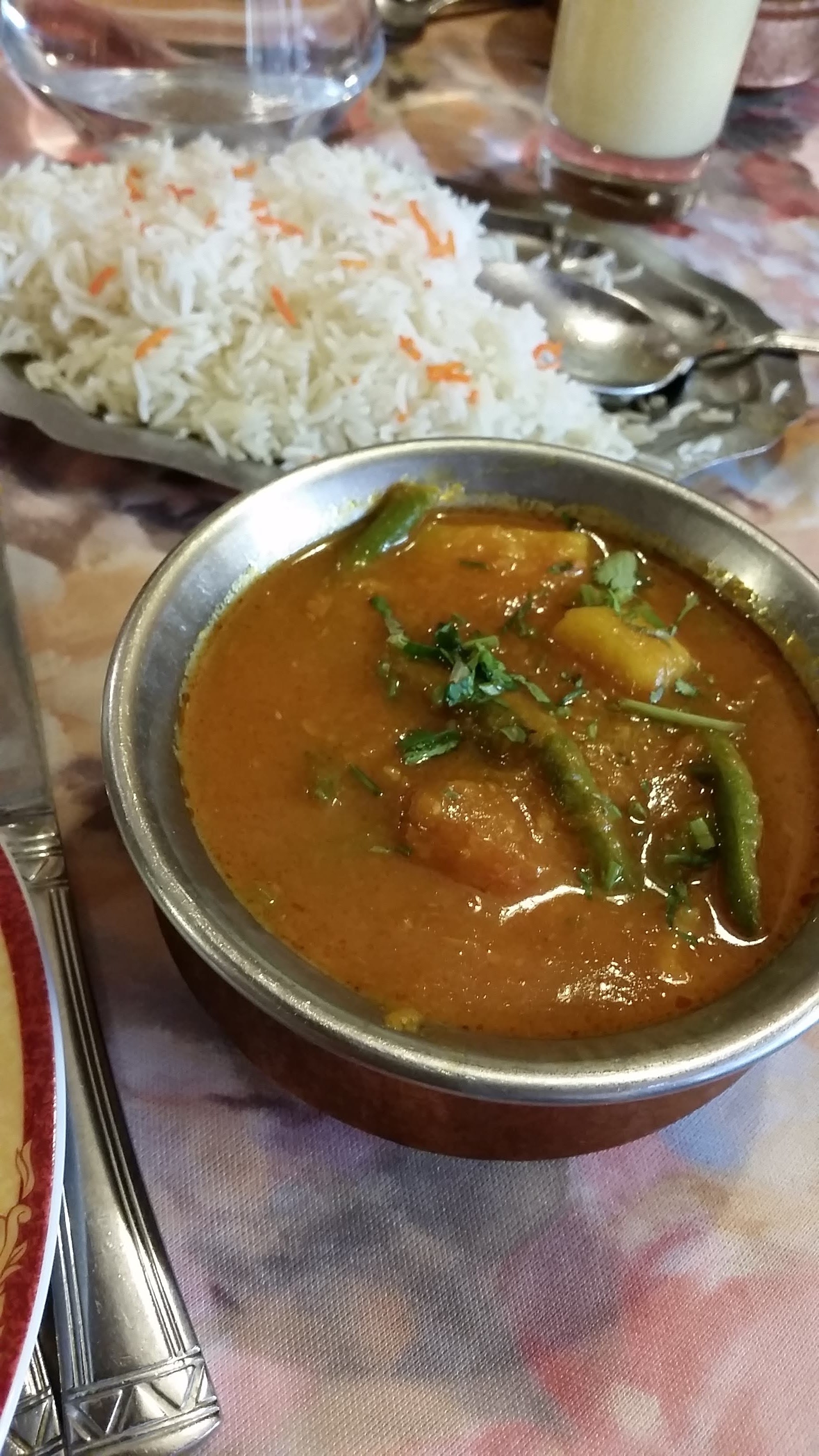 Super restaurant, proposant pas seulement des spécialités indiennes(Bengale, Mongolie), bonne cuisine. Contrairement à indiqué dans d'autres avis, selon mon expérience, le personnel s'assure que nous ayons fini avant de débarrasser. Je recommande la boisson lassi (voir photo à la rose ou à la mangue). Le poulet est tendre. Le plat Biryani a beaucoup de goût, délicieux et très très légèrement épicé. Le gâteau à la carotte est succulent avec la saveur de carotte puissante. Les quantités sont conséquentes. (Ayant chacun pris un naan) Nous sommes tous rentrés le ventre trop rempli.