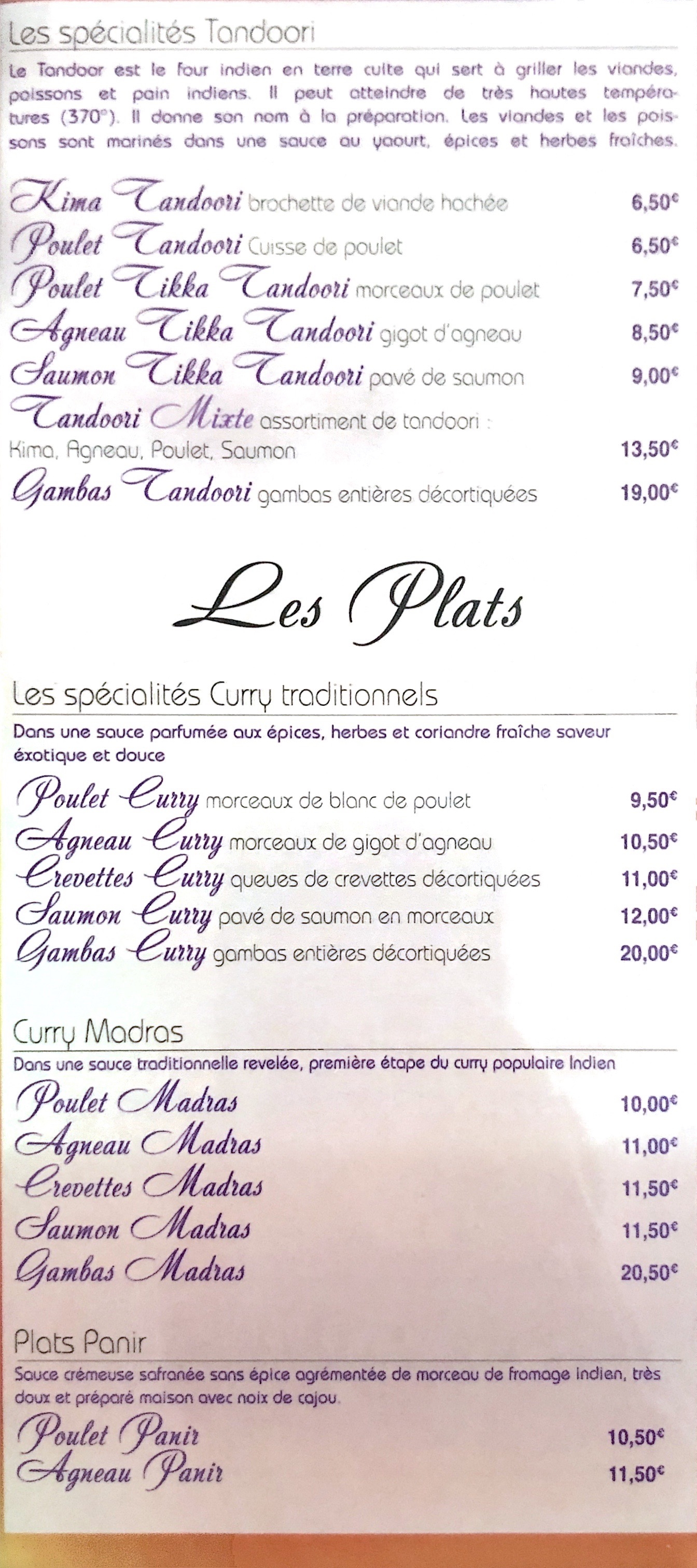Acceuil très chaleureux, plats bon et copieux sans être trop épicés. Menu à partir de 10€ le midi (en semaine) pour entrée/plat/dessert c'est plus qu abordable !