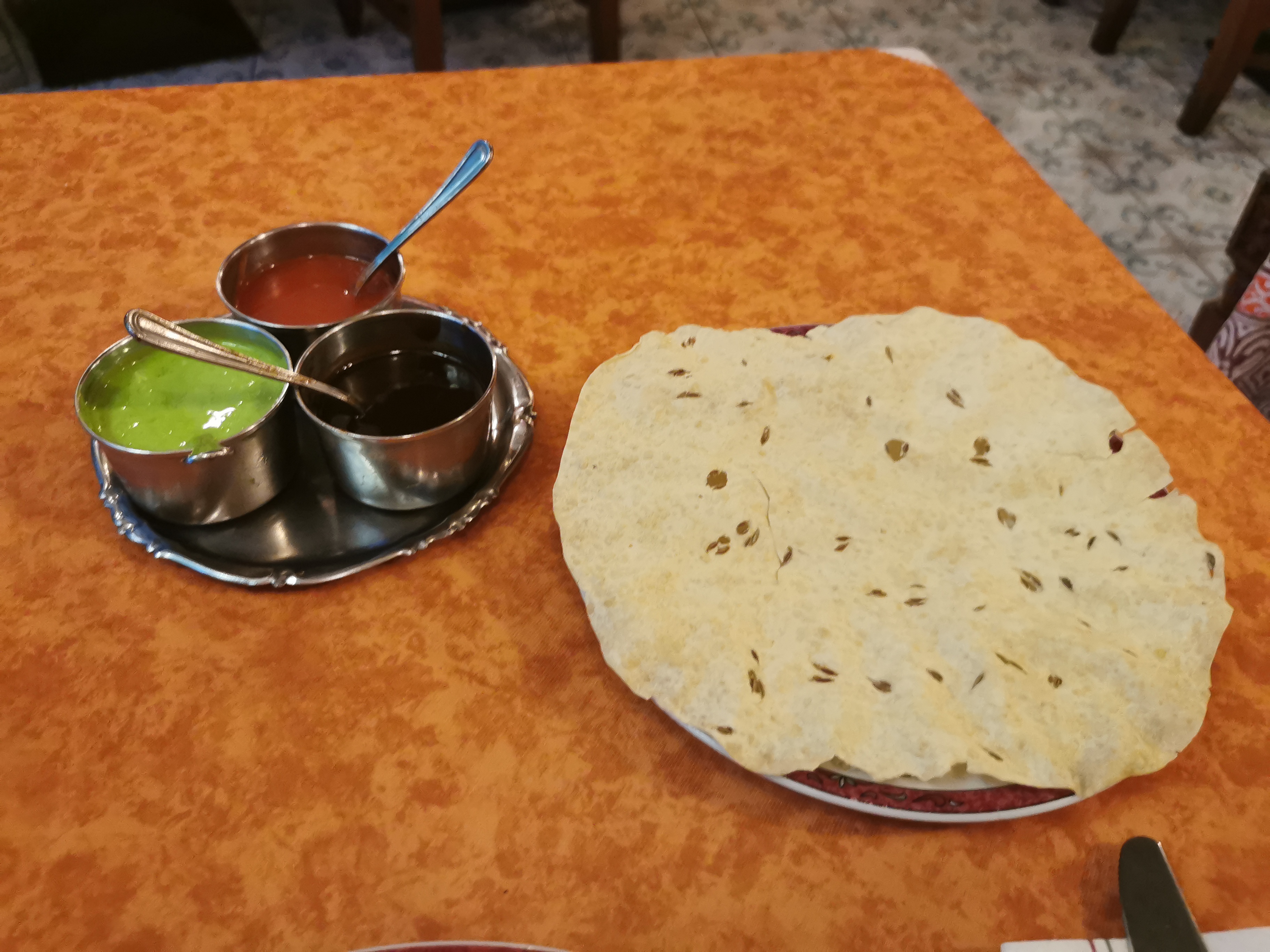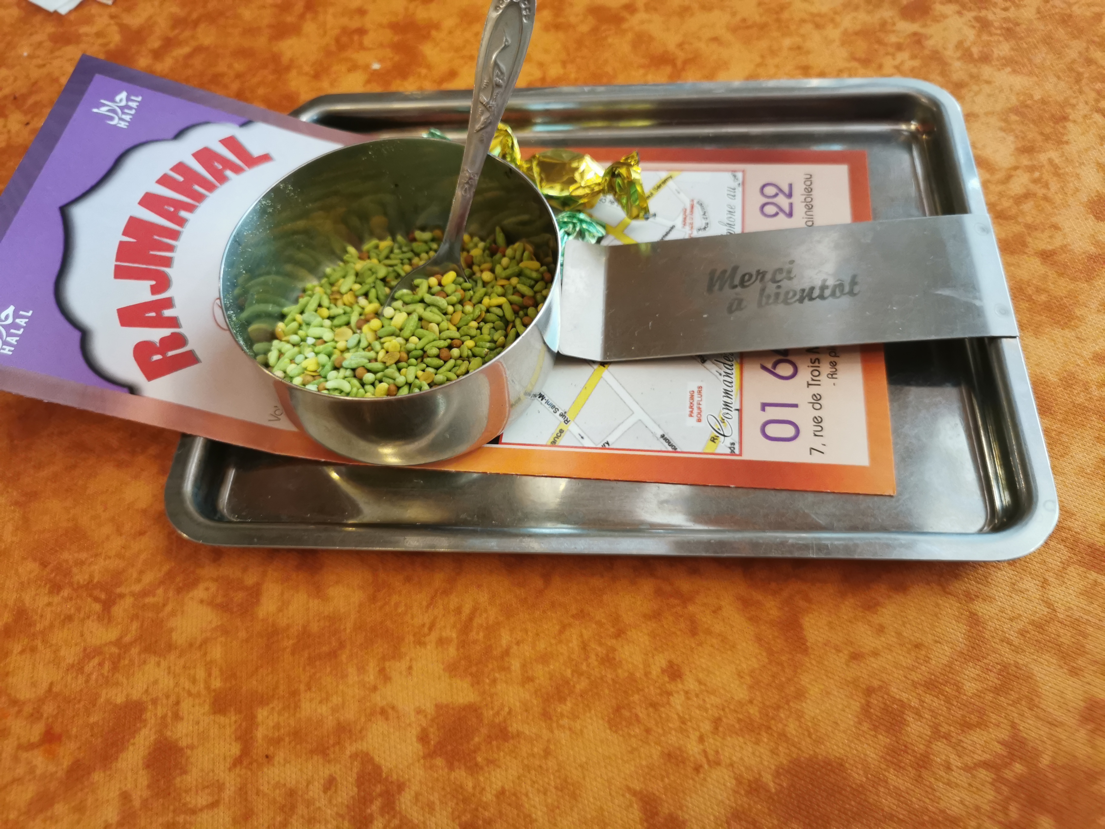 Alors on a commander a emporter. On a été chercher. Et pour nous donner leur mini sauce ça était le caca nerveux. 3 plats et ils refusaient de nous donner la petite sauce épicer. Et le mec gueule dans sa langue parle a un autre et ne donne rien c pour ceux qui mange sur place. Une honte. J’irai à l’épicerie il y a des pot de sauce indien à 3€ s’il veux l’info... pfff un mini pot de sauce qui fait une crise !