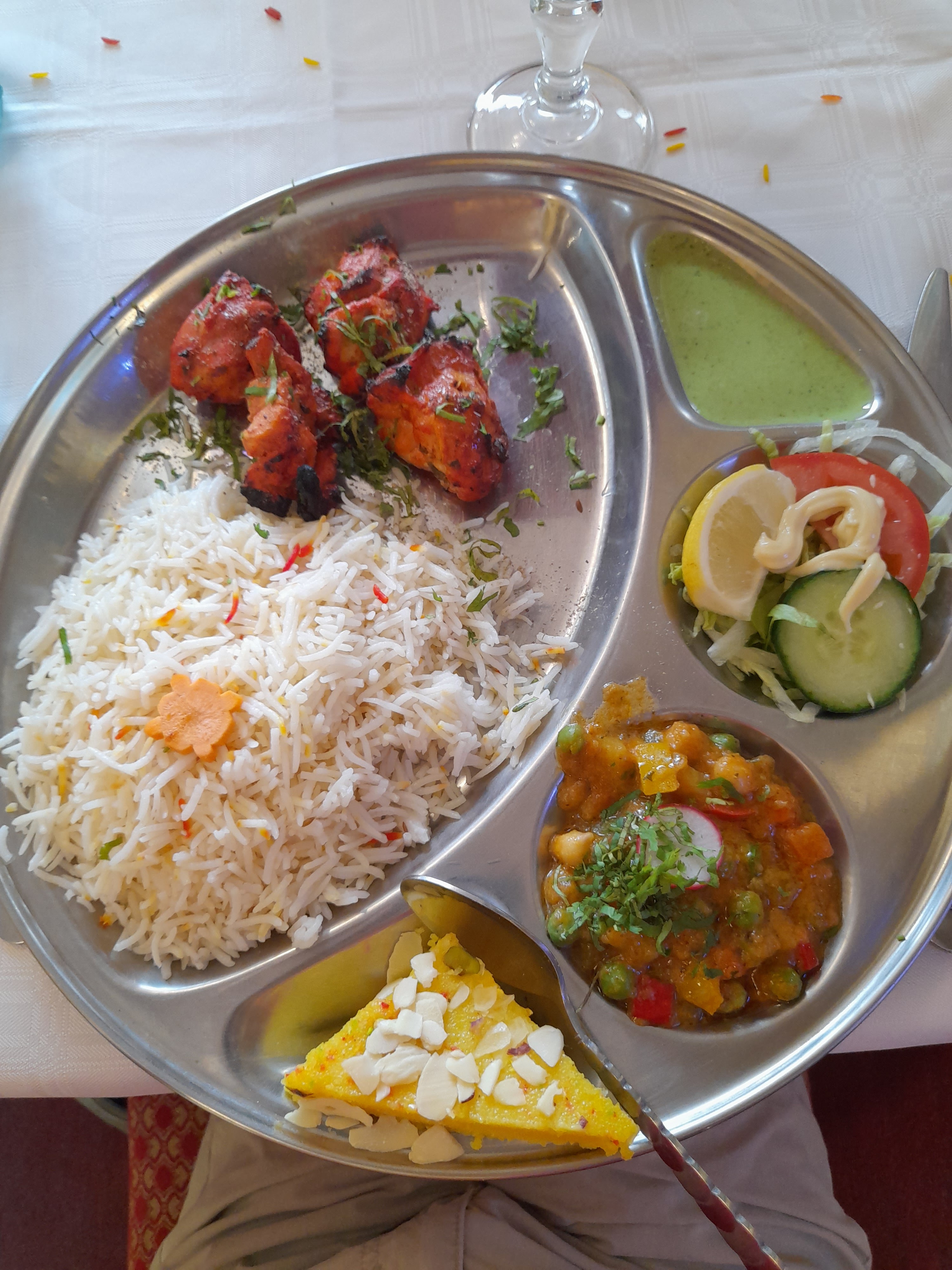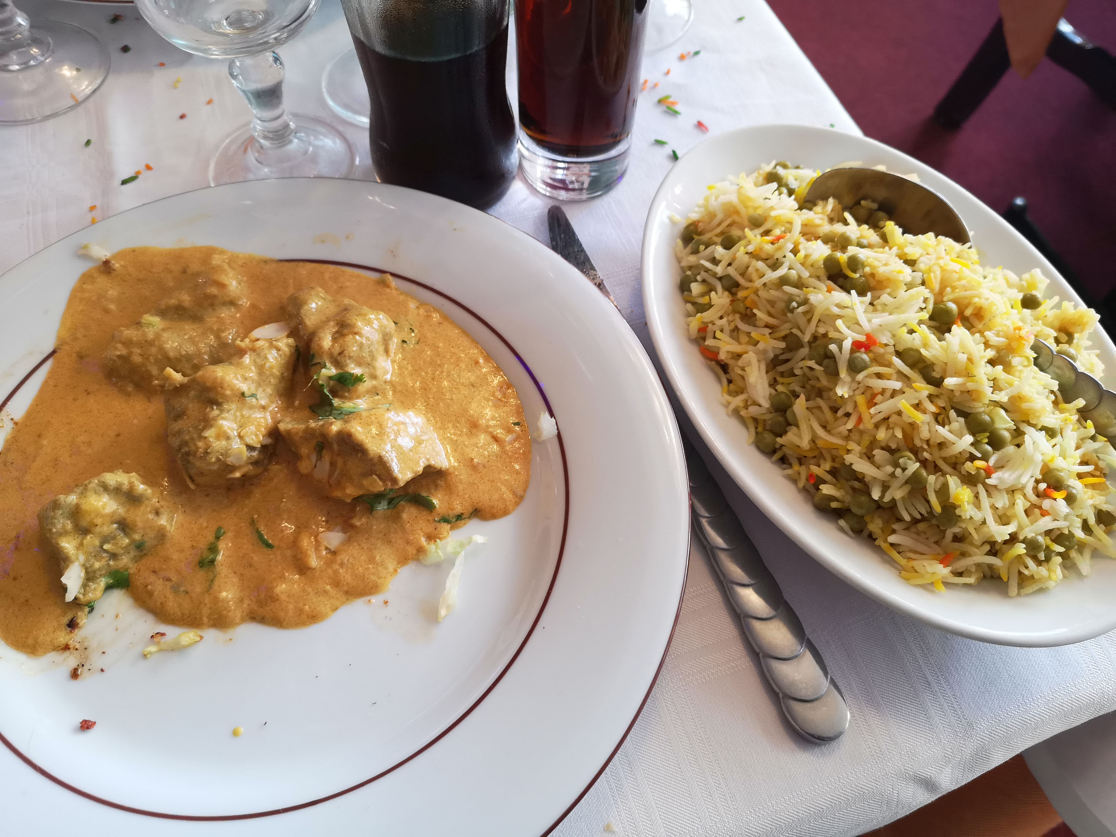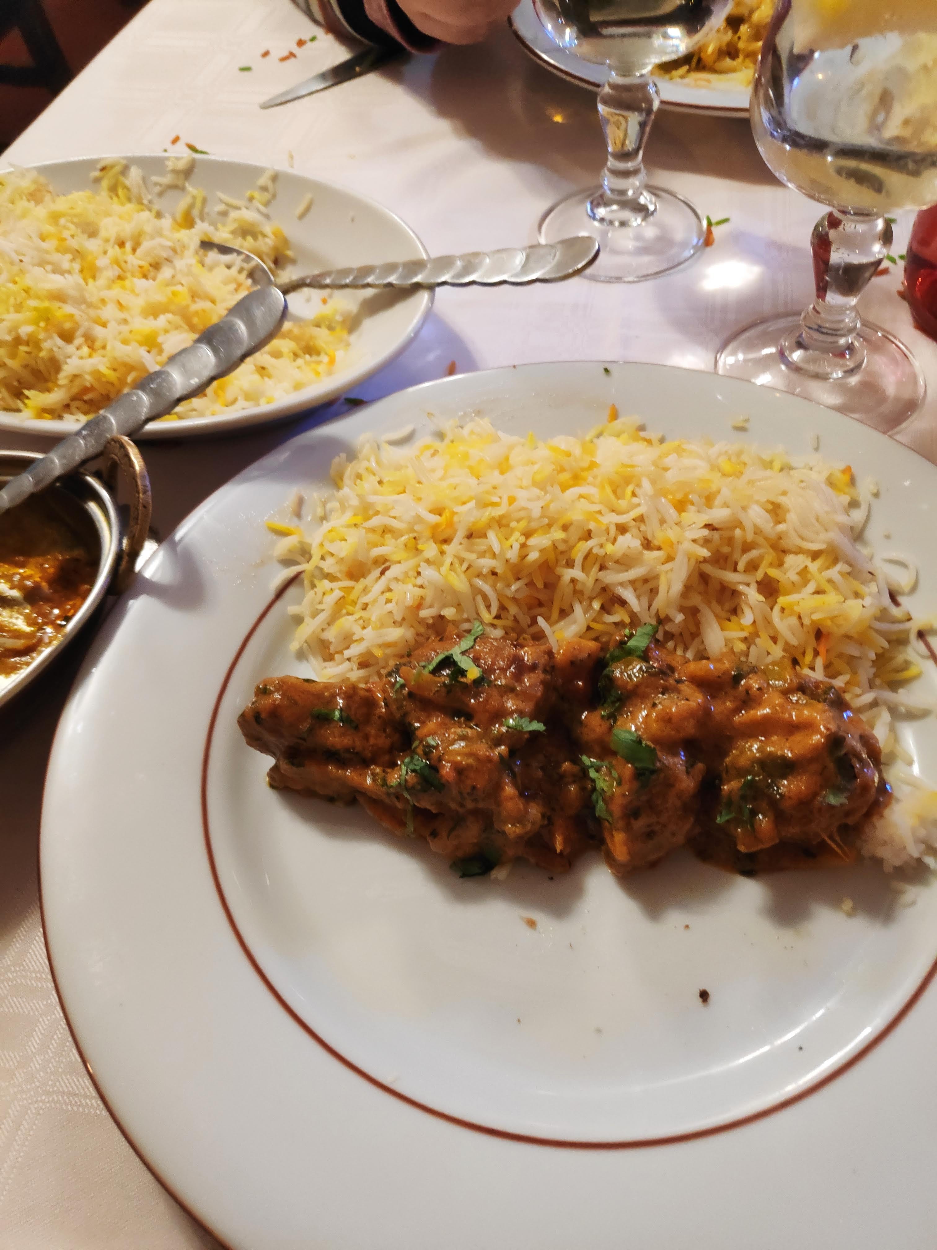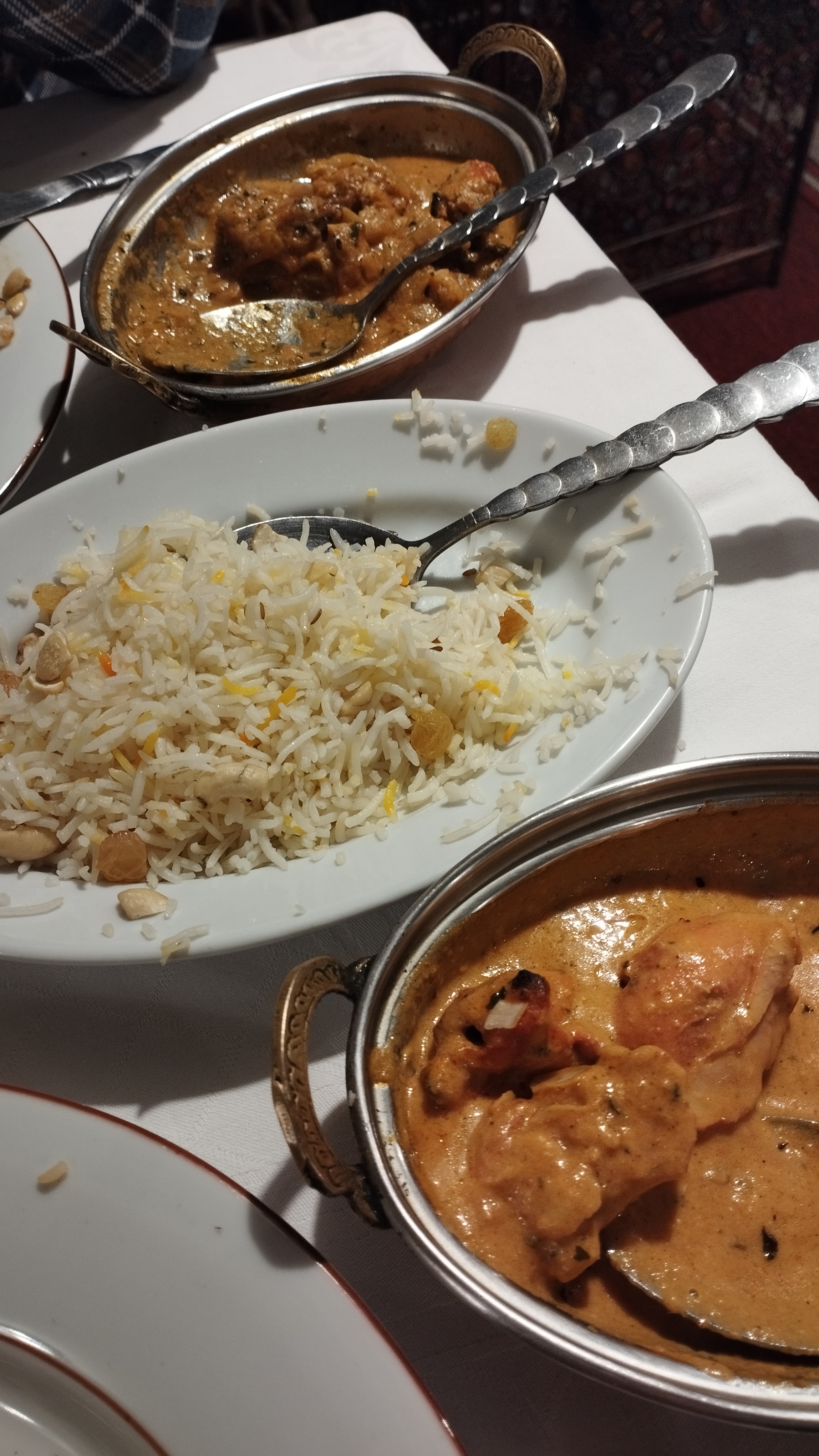 Excellent restaurant, nous avons commandé un agneau tikka masala accompagné de riz ainsi qu'un plat poulet madras excellent Superbe boisson Lassi Banane ( boisson à base de lait)riz avec variante aux fruits secs Je recommande vraiment !