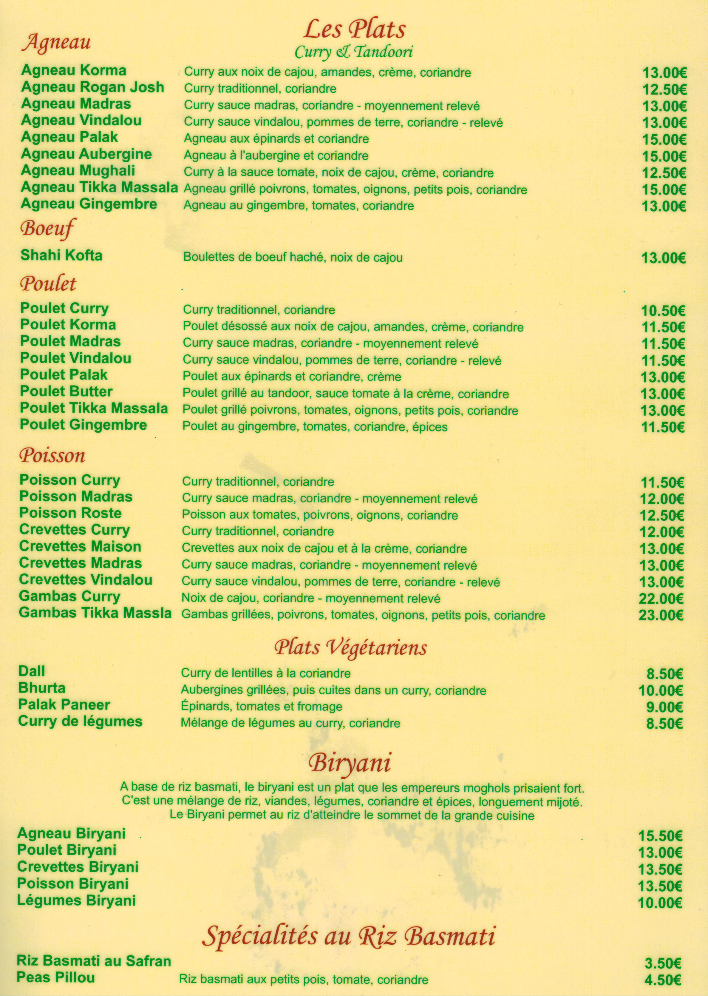 Cuisine raffinée, le restaurant propose des biryanis, tous les restaurants ne proposent pas ce plat aux épices délicates. Comptez 20 euros par personne pour le dépaysement, bière comprise.