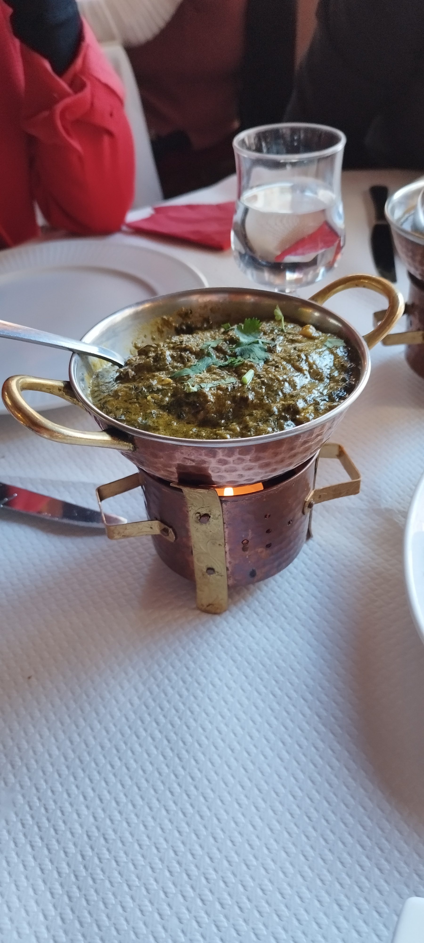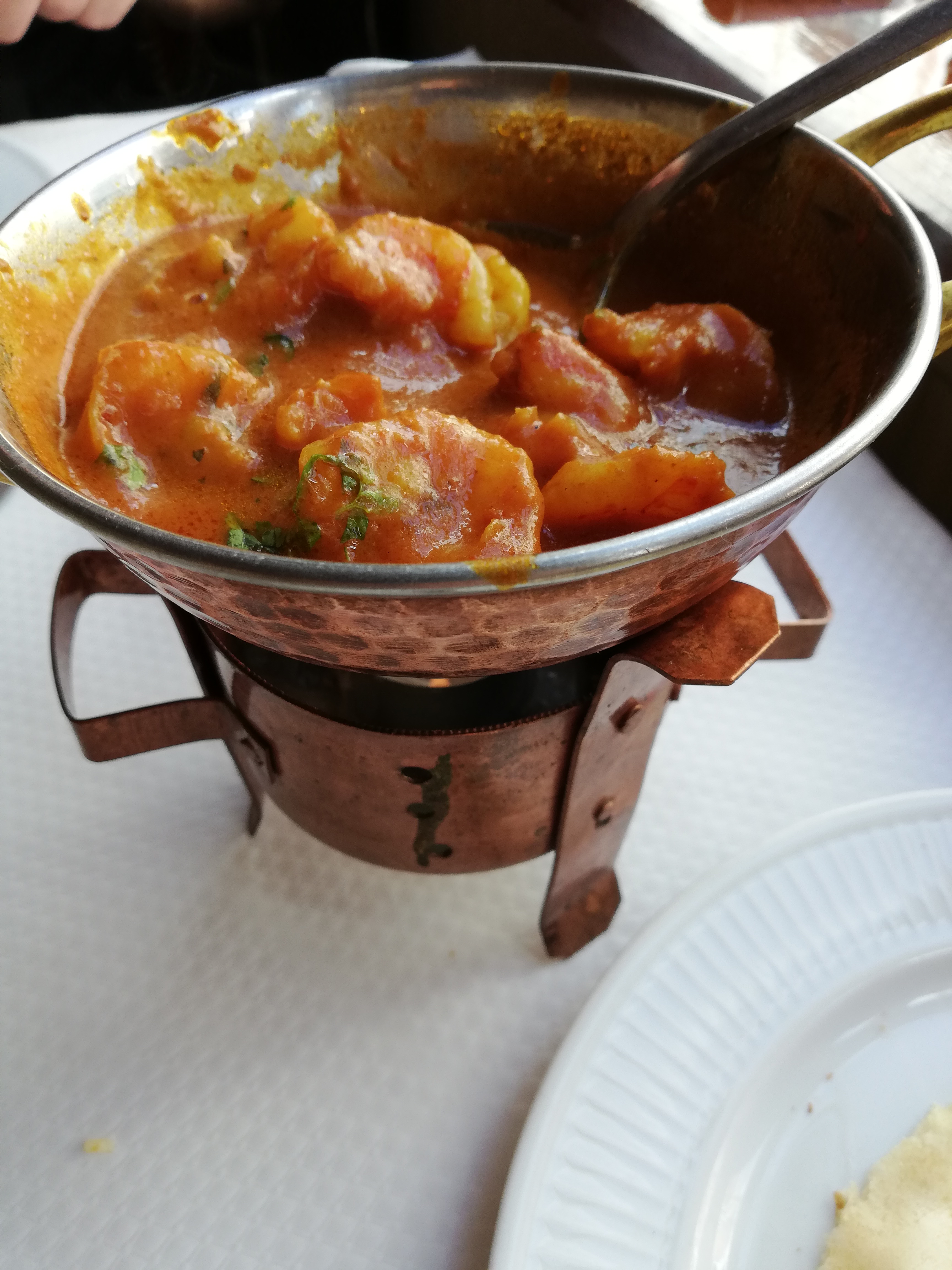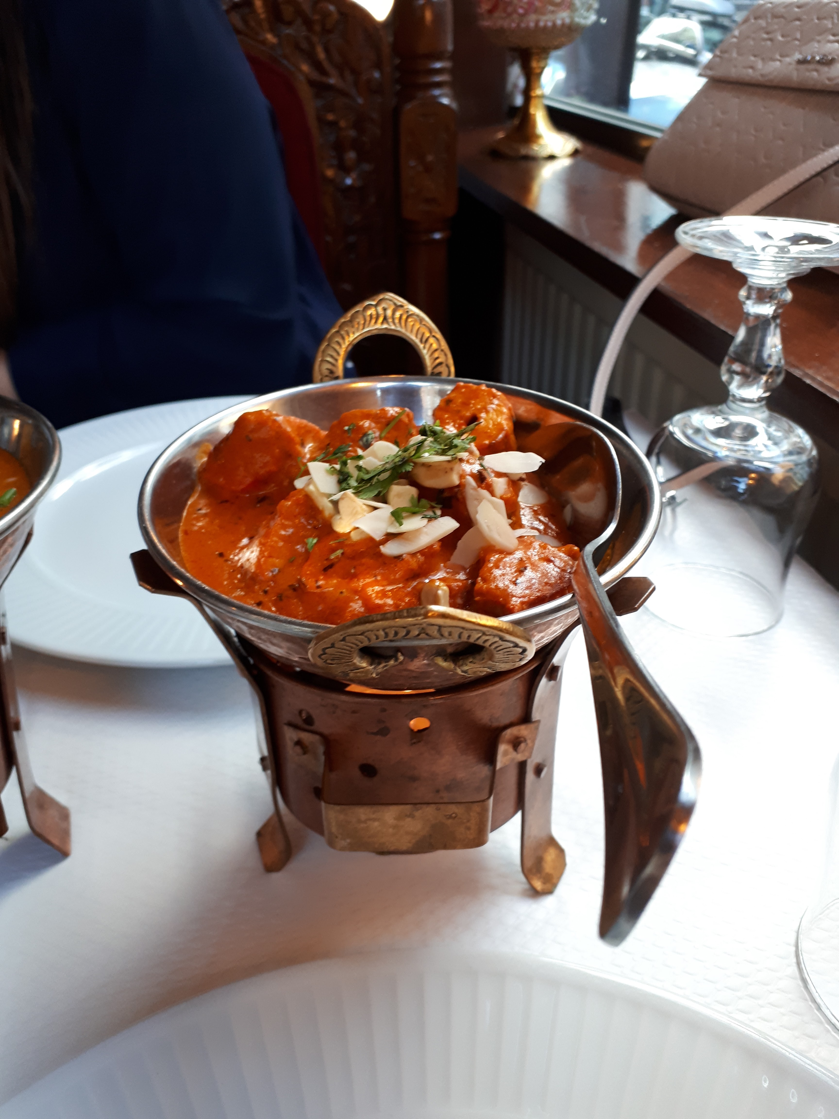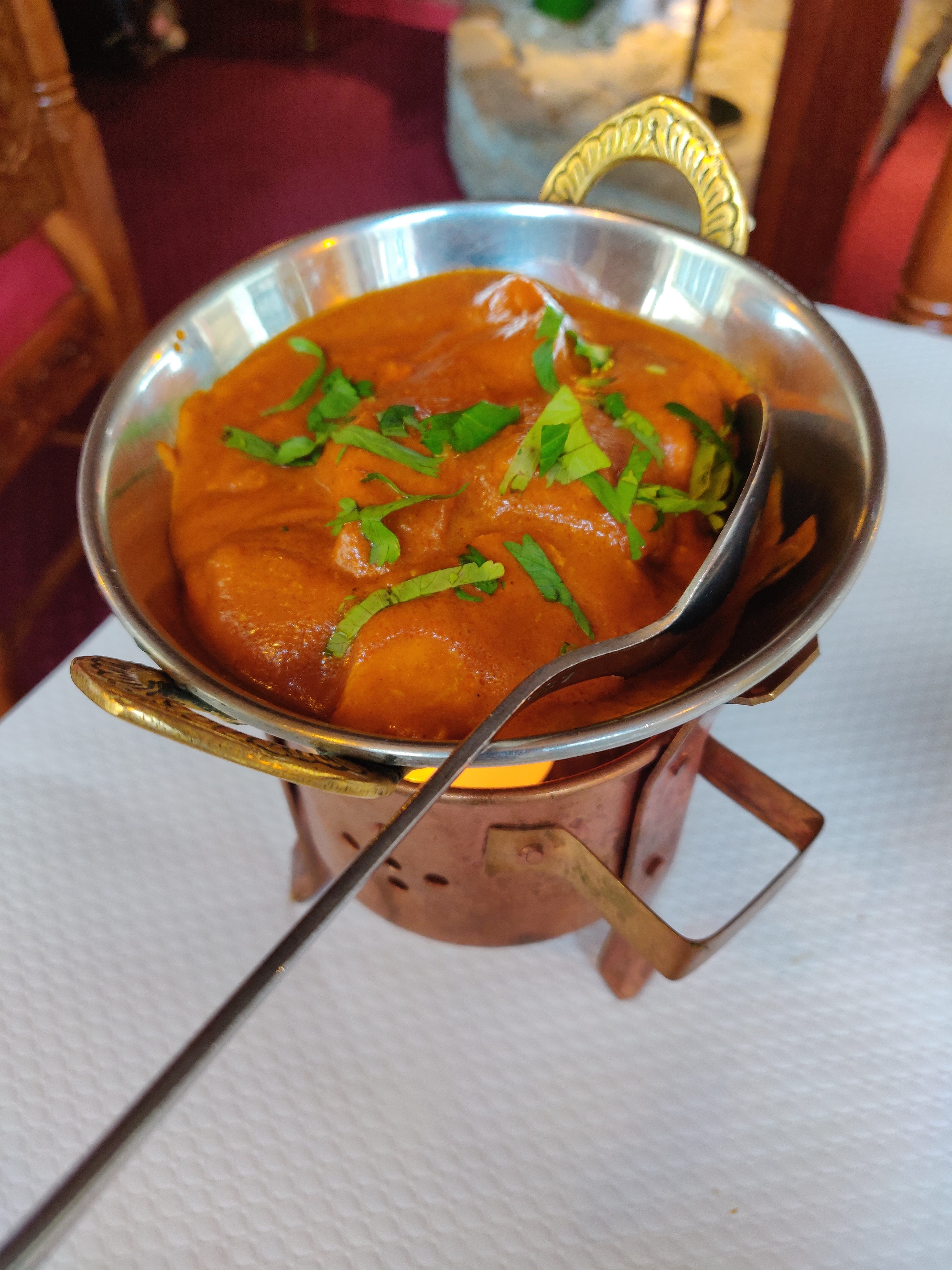 Bon restaurant indien. Le système pour maintenir la sauce et la viande au chaud est cool