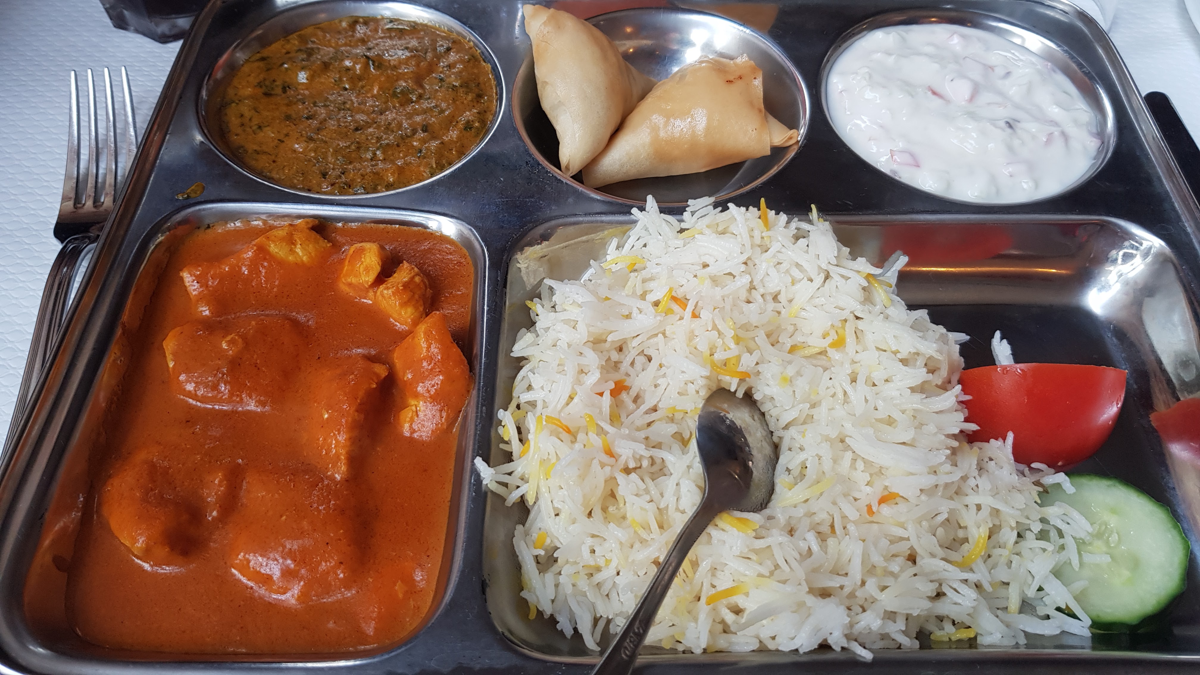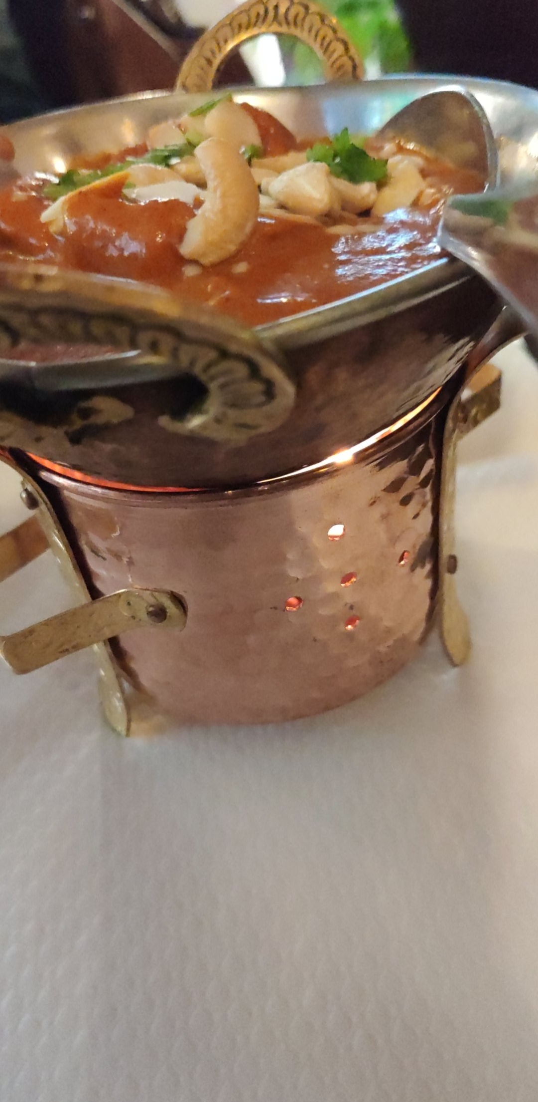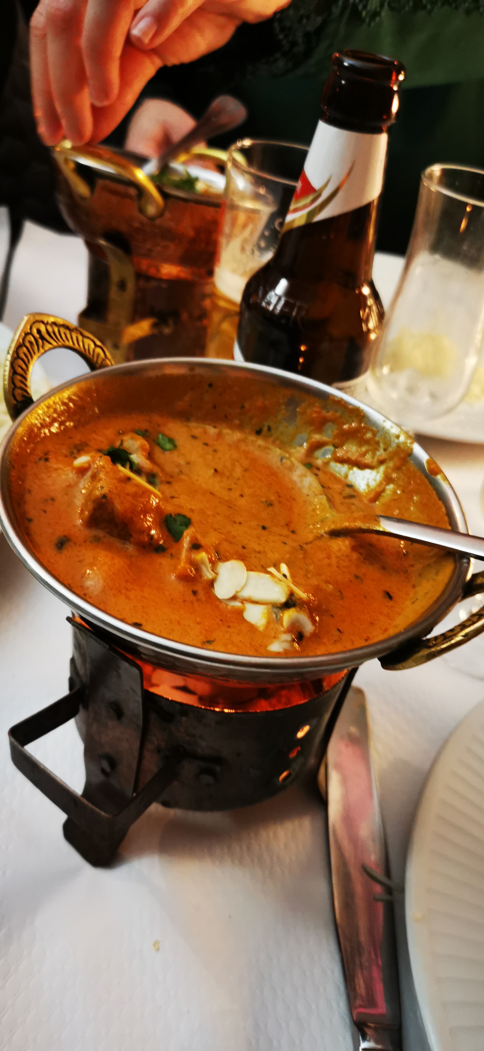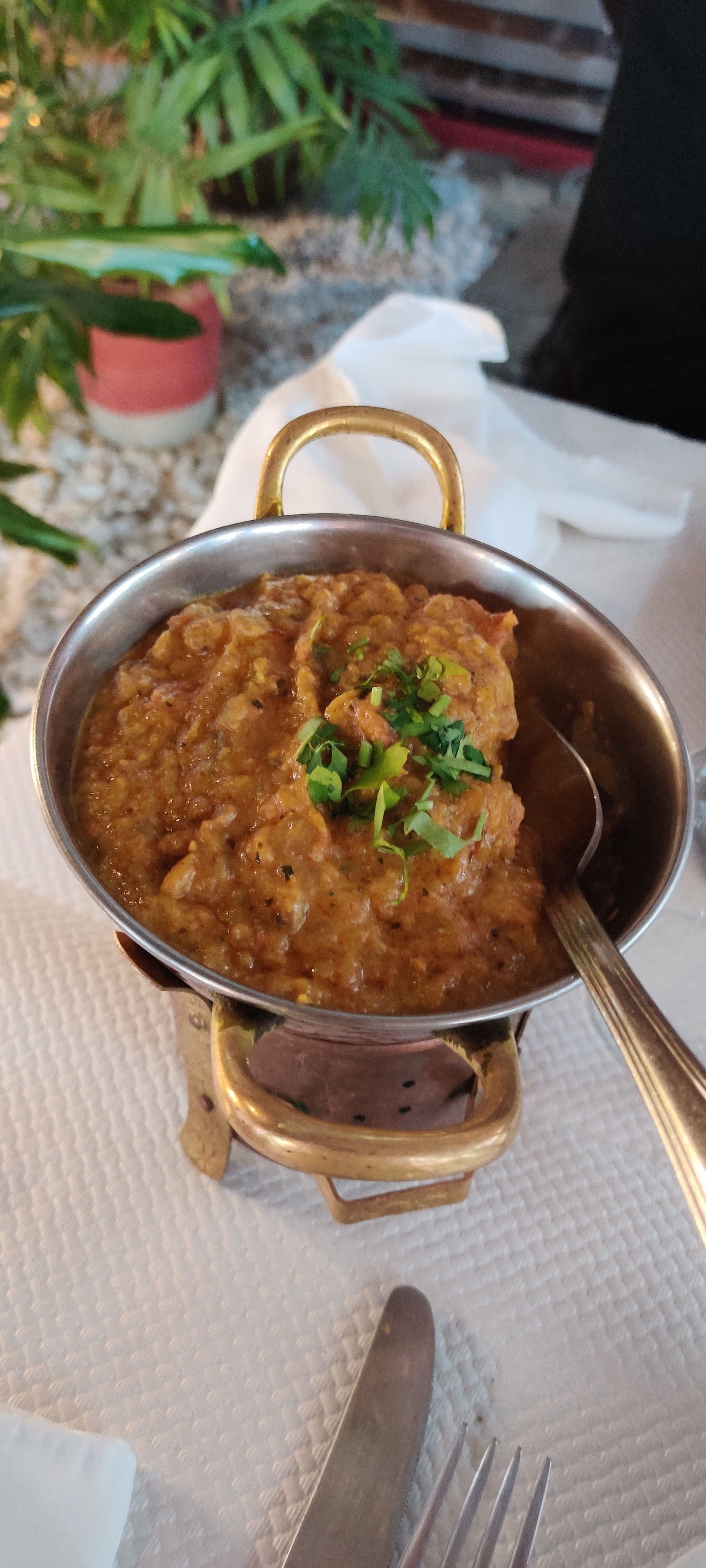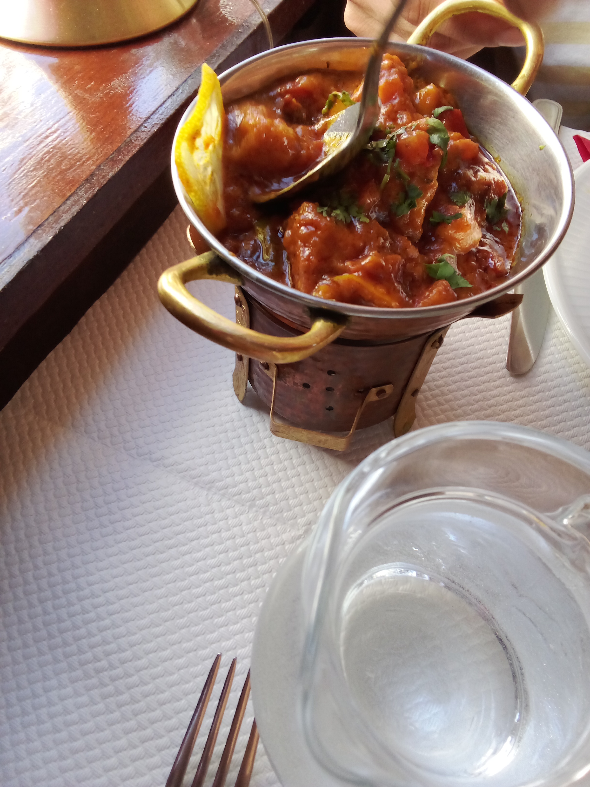 Bon restaurant indien. Le système pour maintenir la sauce et la viande au chaud est cool