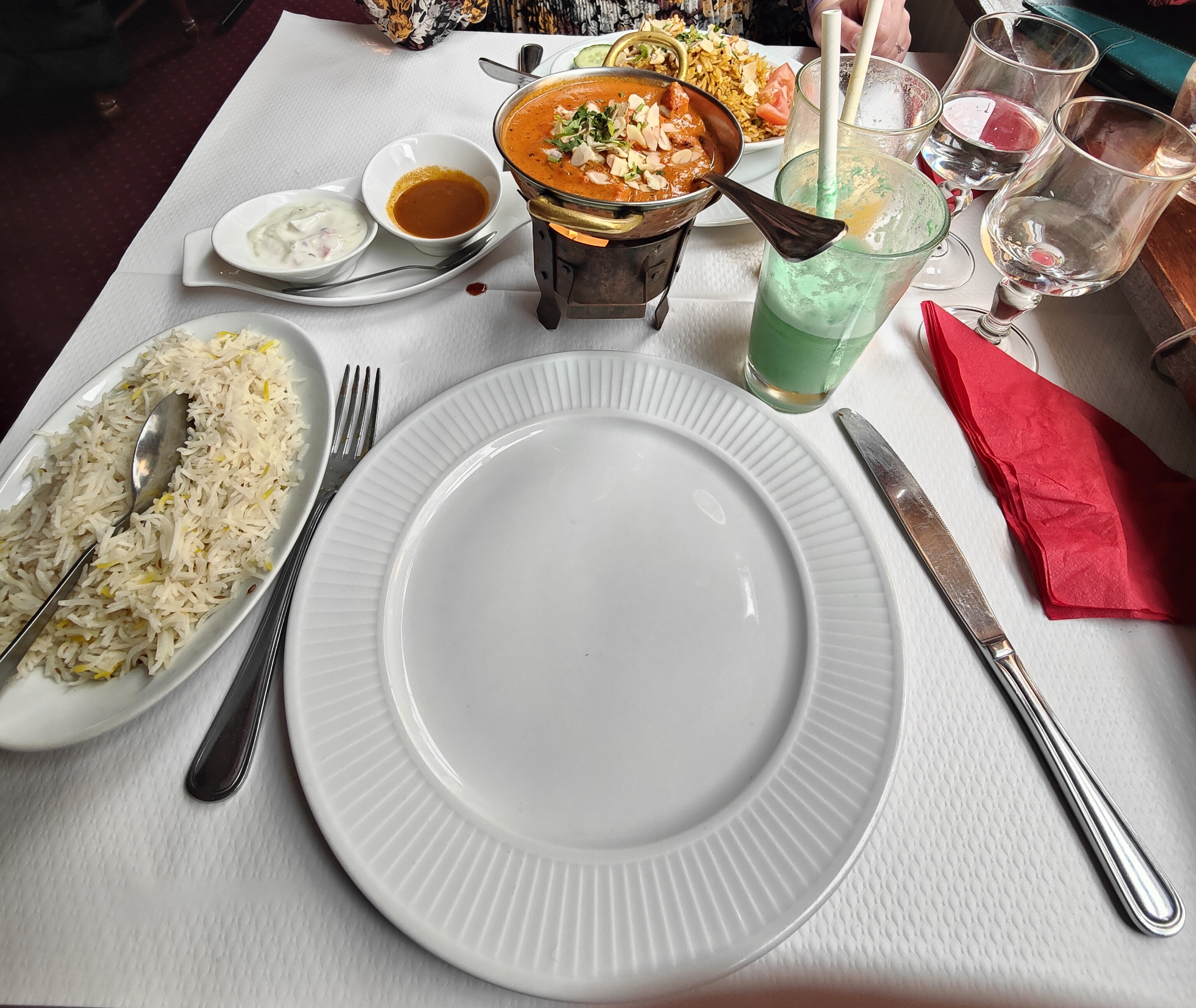 Nous avons testé pour la première fois le Rajasthan, excellent repas, cocktails, entrée et plat principal une merveille, je vous recommande le poulet butter avec du riz au Safran, nous reviendrons sans hésiter !