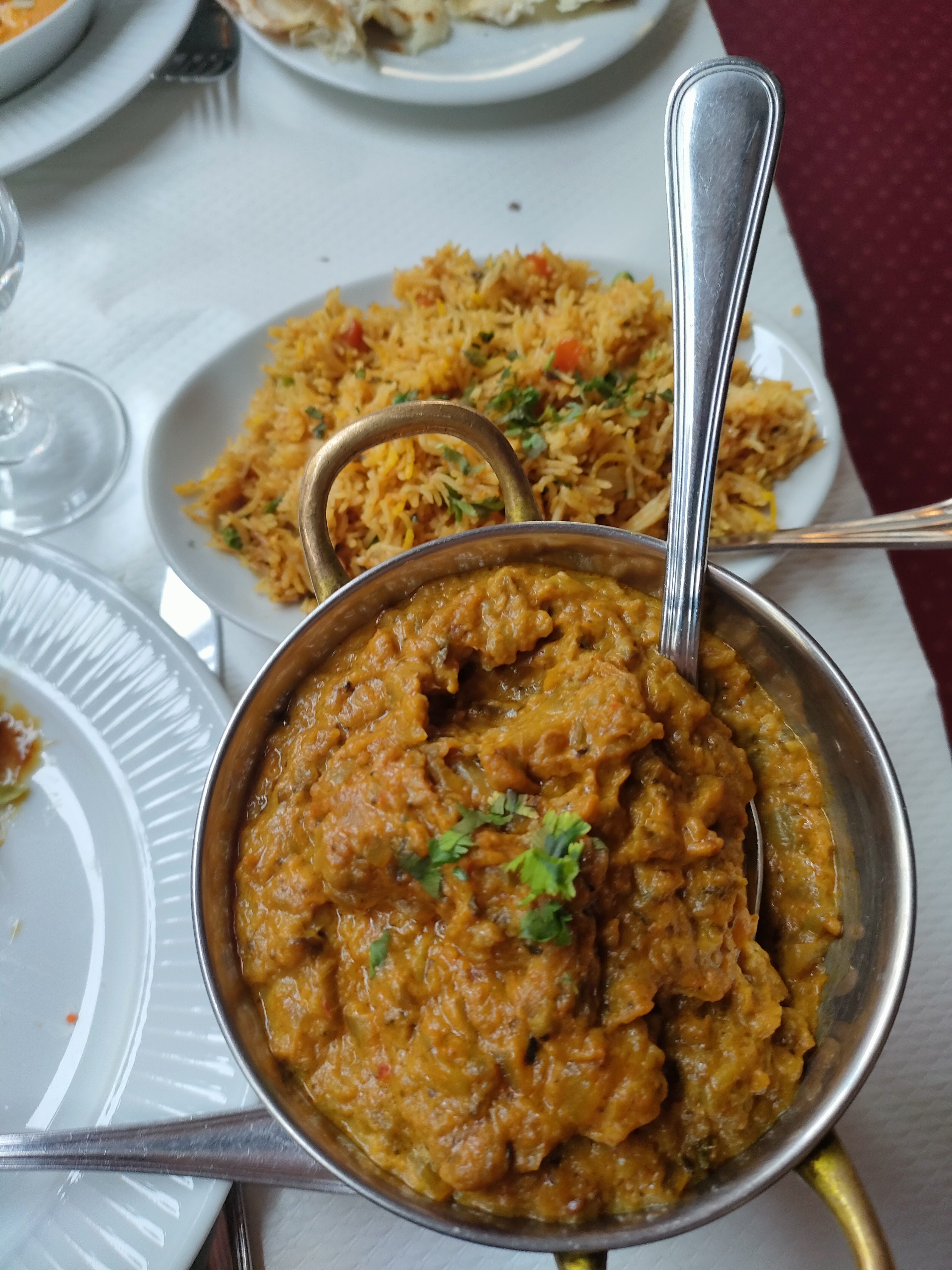 Nous y sommes allés en couple et vraiment pas déçu, le cadre, la cuisine et la musique vous plongent en Inde. Le personnel connaît sa carte et sait répondre à vos questions concernant l'appellation des plats. La présentation et les saveurs sont au rendez-vous, (la quantité aussi 🤤👍) surtout pour les gourmands 😉. Question prix, rien à redire on est dans une gamme de prix abordable. Je recommande ce restaurant sans hésiter.