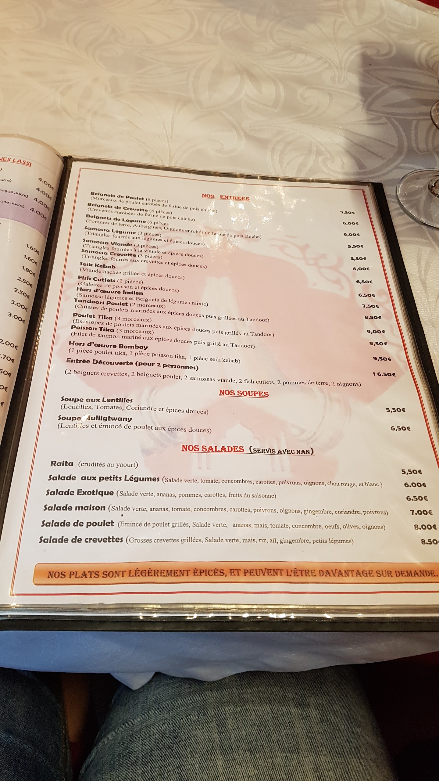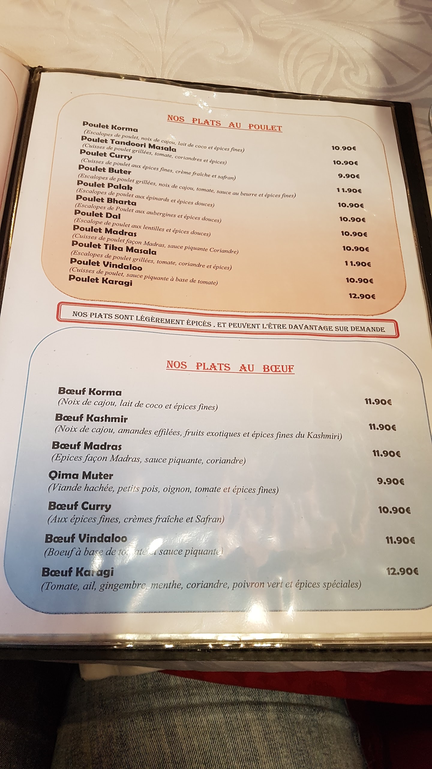 C'était mon premier restaurant indien et franchement je ne suis pas déçu. Un bon accueil, serveur sympathique, et la cuisine... J'ai jamais eu autant de saveurs en bouche ! Je me suis régalé. J'ai découvert une autre cuisine, ça m'a beaucoup plu.