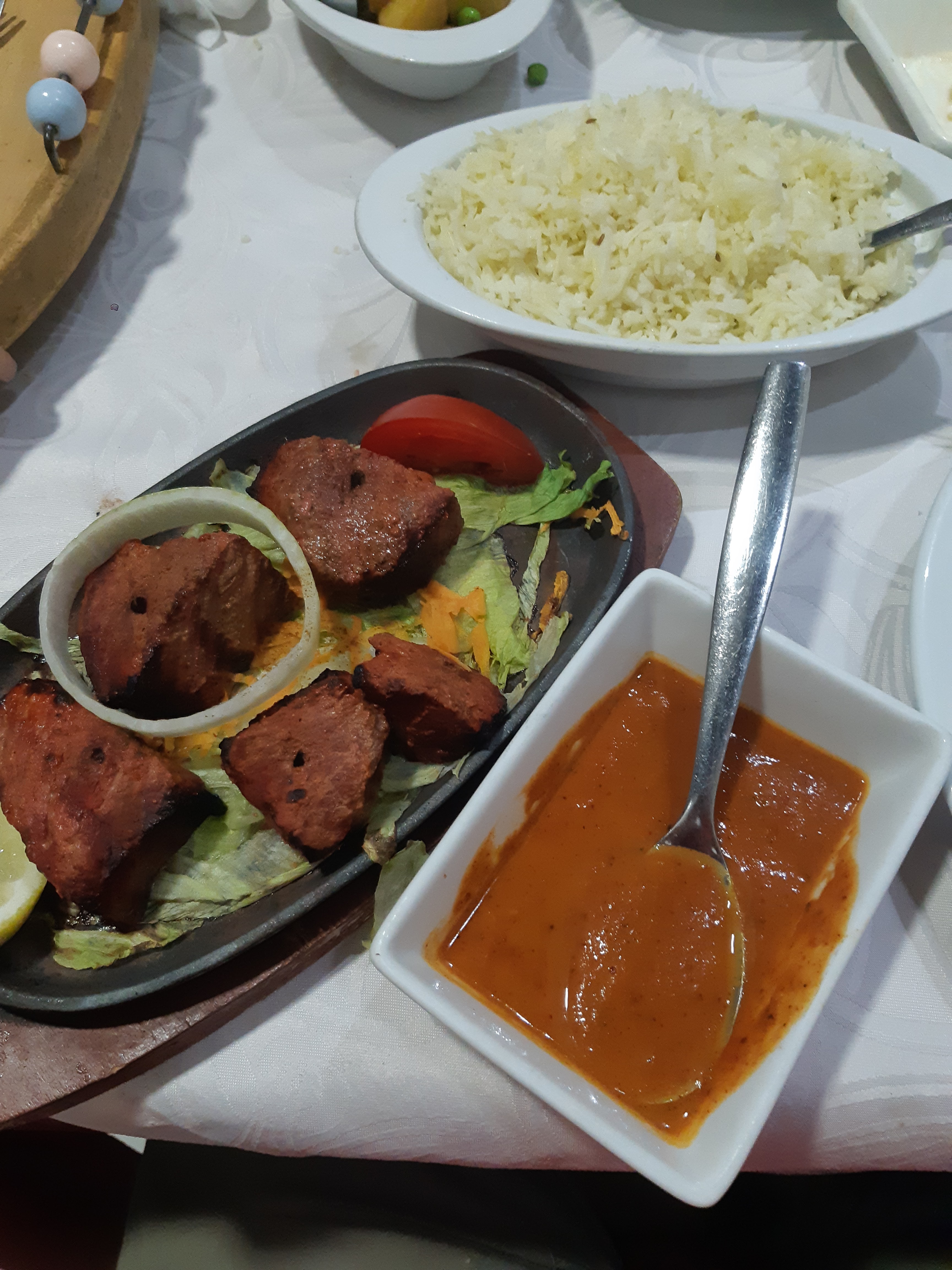 Ma mère et moi venons des États-Unis et avons été ravis de voir un restaurant indien à quelques pas de notre hôtel. C’est de loin le meilleur repas que j’ai eu en Europe parce que je suis un amoureux des saveurs et des épices (et désolé, la plupart des autres plats ne l’ont pas fait pour moi). Le serveur était sympathique et même si le service était un peu lent, nous avons apprécié la conversation avec lui et notre repas dans son ensemble. La nourriture n’était pas du tout épicée, mais je m’attendais à ce qu’ils répondent aux goûts locaux, peut-être moins épicés. Essayez-le certainement!