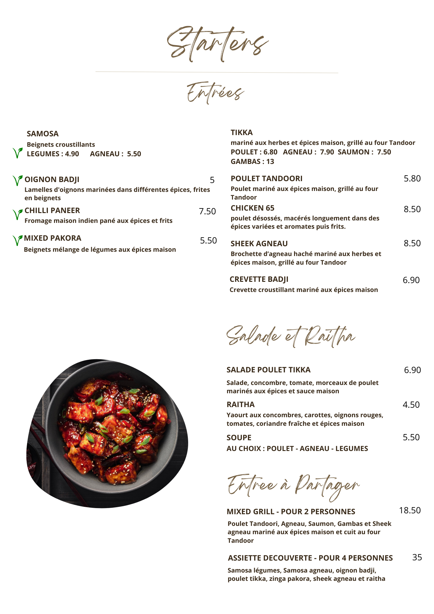 Bonne cuisine indienne à venir essayer