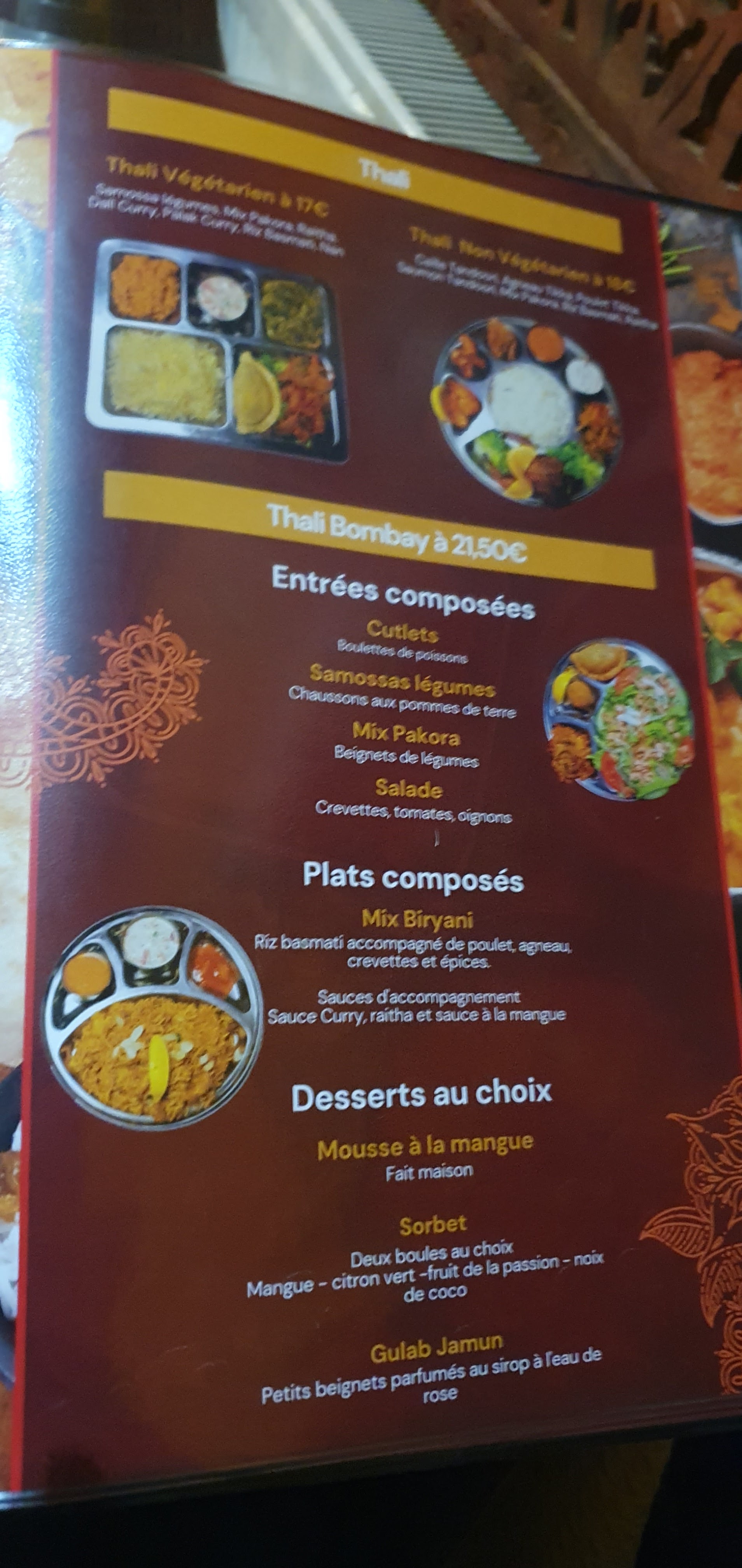 Délicieux, copieux, vaste choix (Inde, Sri Lanka), petits prix. Un must de la cuisine indienne. Très satisfait de mon anniversaire passé là-bas.