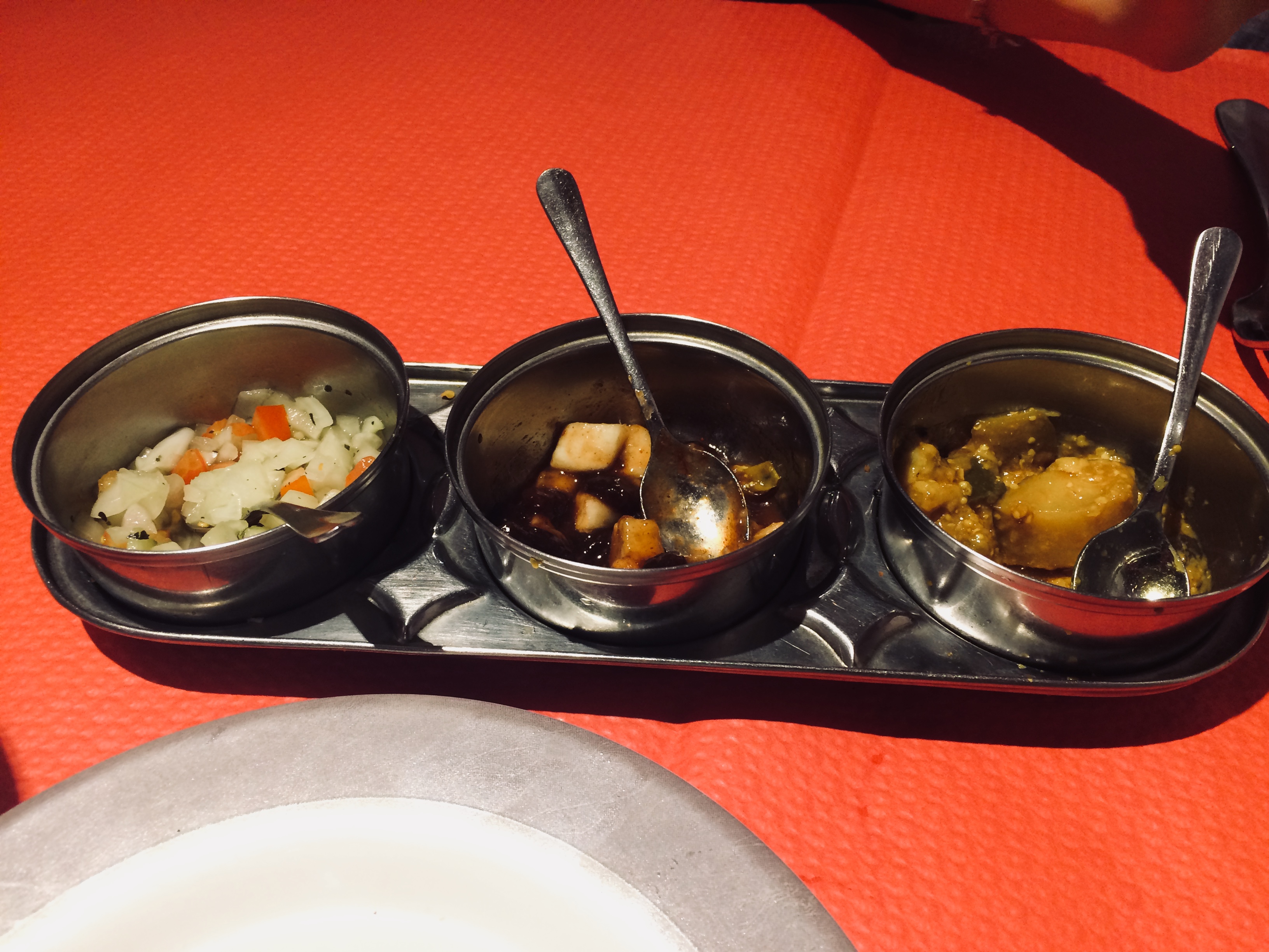 En réalité nous n'avons pas aimé du tout, des beignets dont on ne sent que le curry et réchauffés, puis des curry très ordinaires. La salle était pleine et la carte beaucoup trop longue. Nous avions pris le menu à 18€, peut-être aurait-il fallu prendre un tandoori.