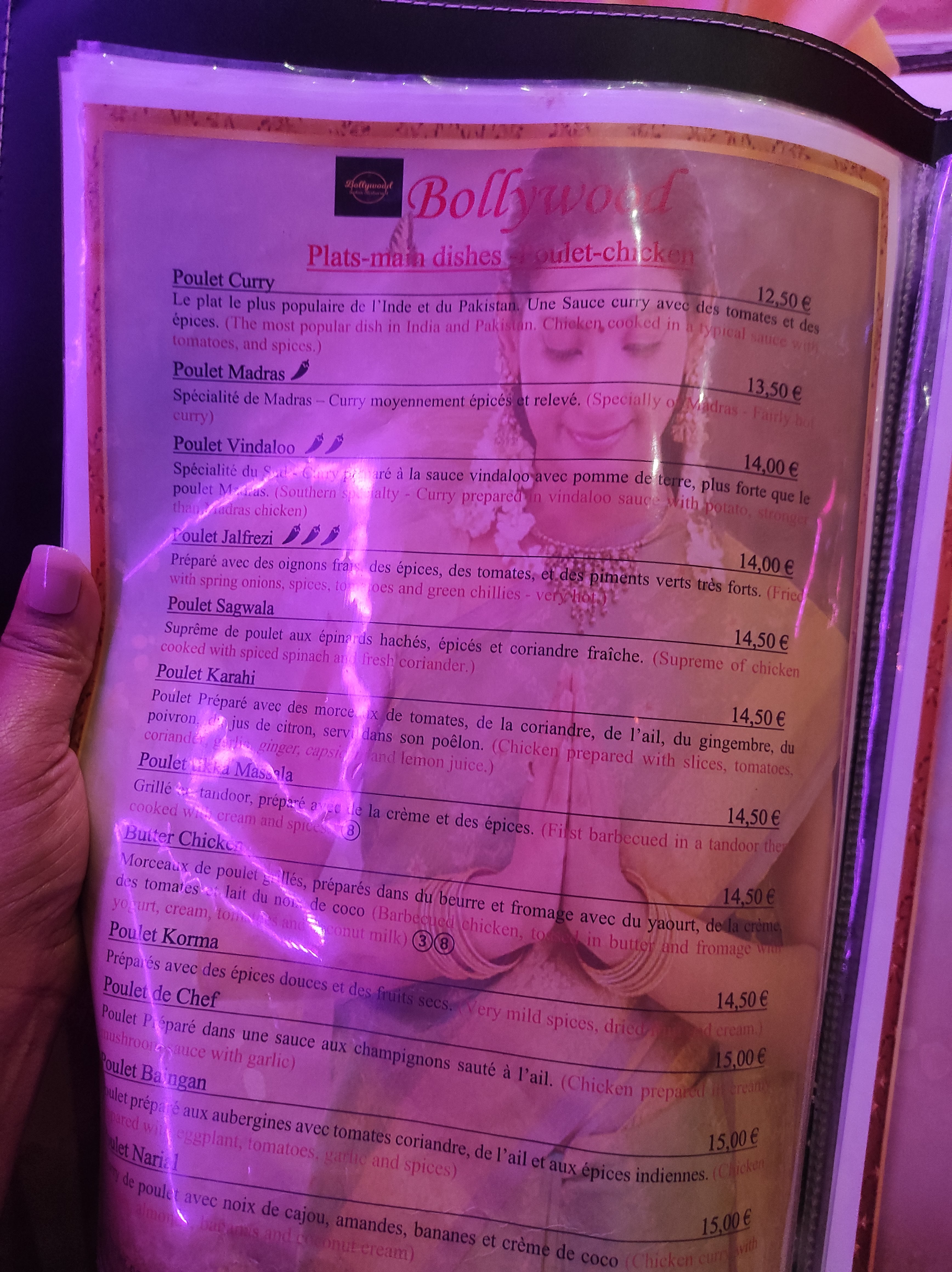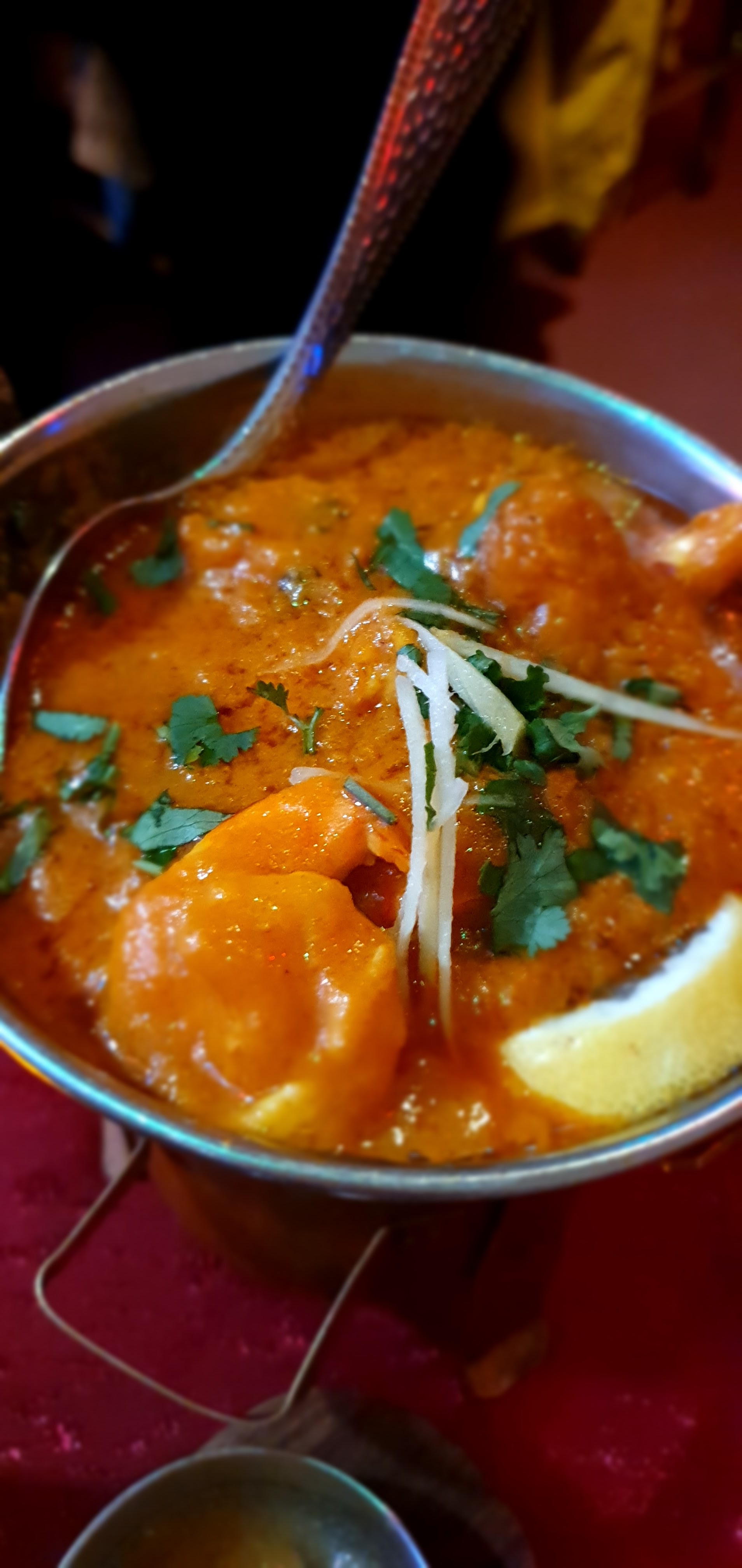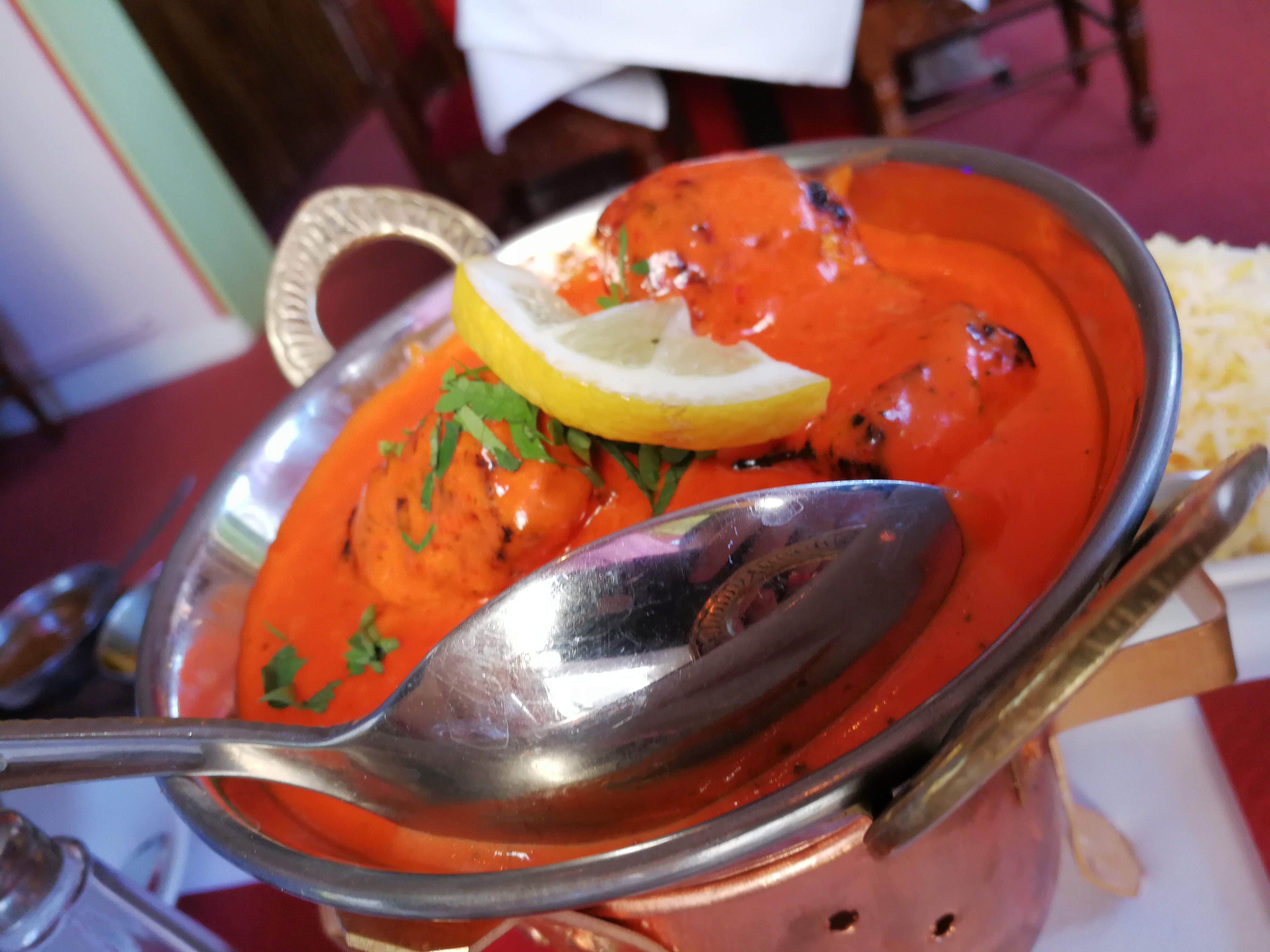 l’accueil est très sympathique. Décors très bollywoodien. Cuisine excellente. Un apéro est servi gratuitement. Je m'y connais en cuisine indienne ayant moi même des origines de ce pays et je peux vous dire que je retrouve bien les goûts. Seul petit bémol: quoi que suffisant, les portions de viandes sont un peu juste pour celui qui a un gros appétit, mais, aux prix tout à fait raisonnable, on peut prendre un plat de plus. Je recommande chaleureusement. J'allais oublier, on peut avoir des menus à emporter