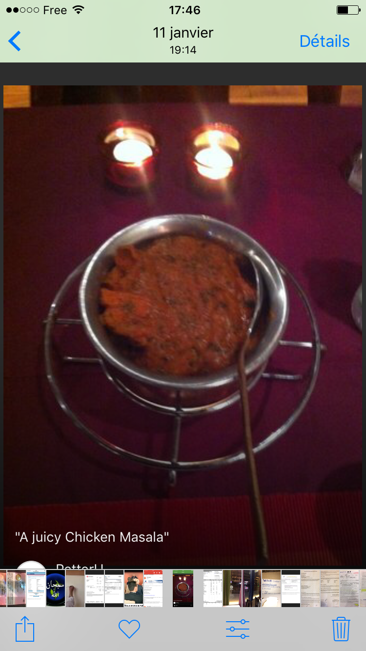 Butter chicken très bon ! Seul point négatif le naan au fromage, le fromage dedans est trop fort :( Sinon très bon