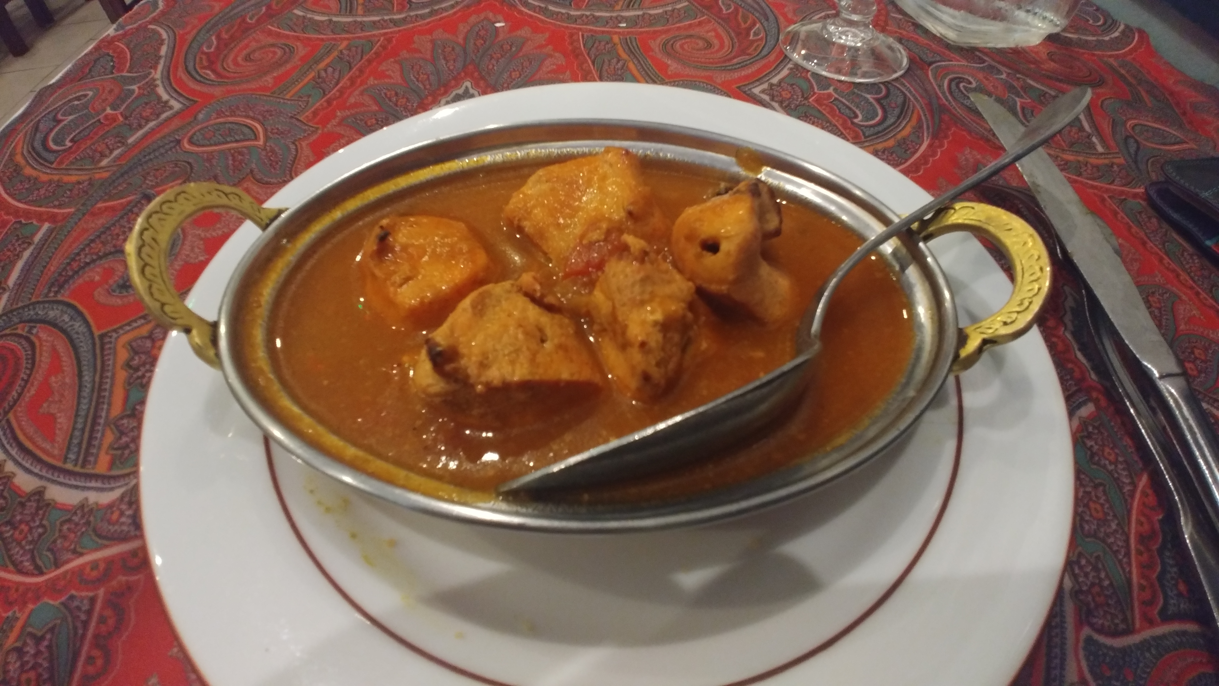 Nous avons pris le menu entrée + plat à 10,80€. Nous avons testé le poulet massala. Bon mais sans plus.