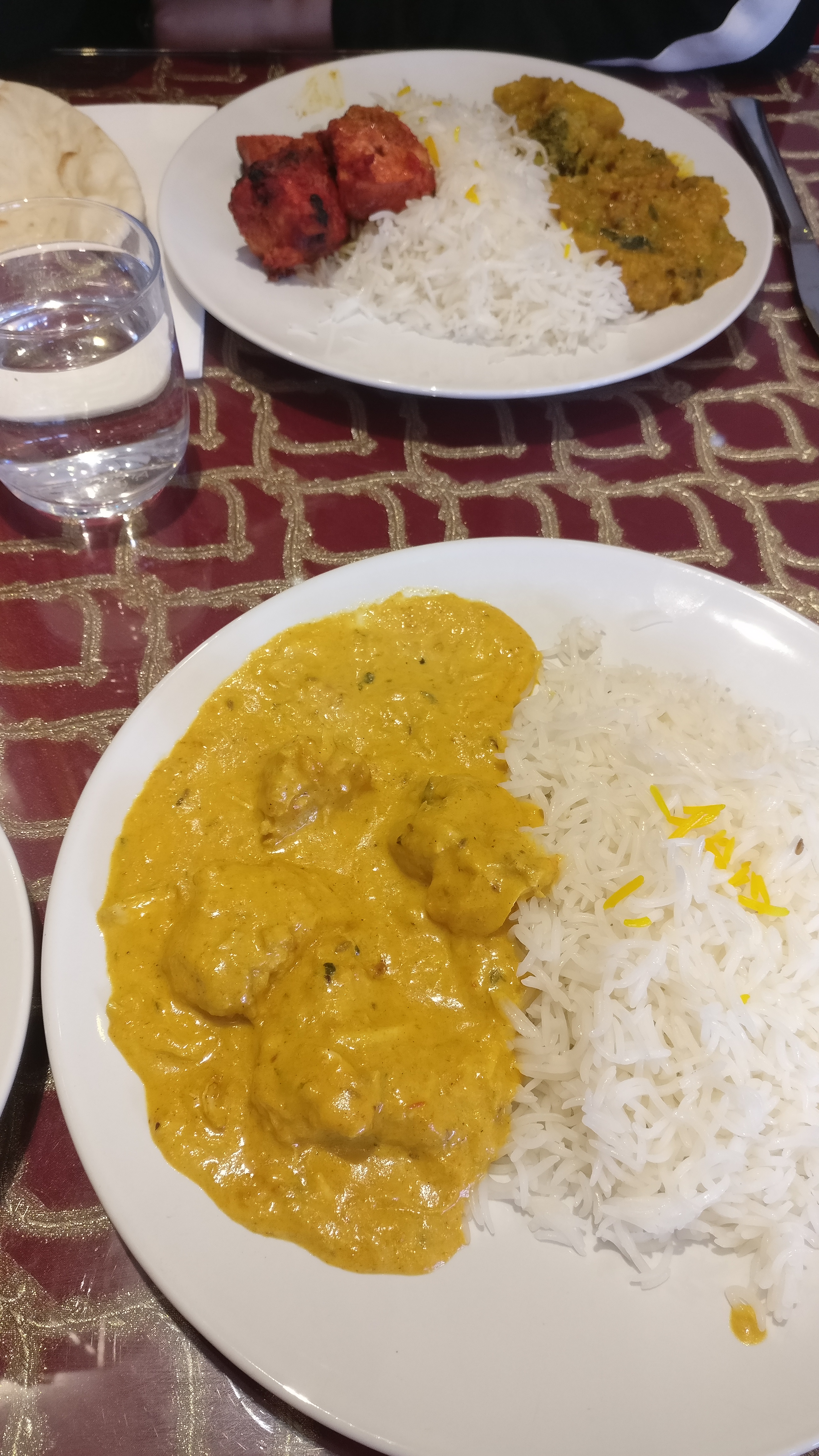 Le goût des plats est très moyen. Je n'étais pas convaincu de la quantité de nourriture fournie. Nous avons commandé du panner tikka auquel ils n'ont donné que 3 petits morceaux pour 6 euros. Nous avons également commandé du poisson tikka, de l'agneau masala, du chapati et du naan. Chapati devrait être du blé mais ils ont donné de la tortilla.