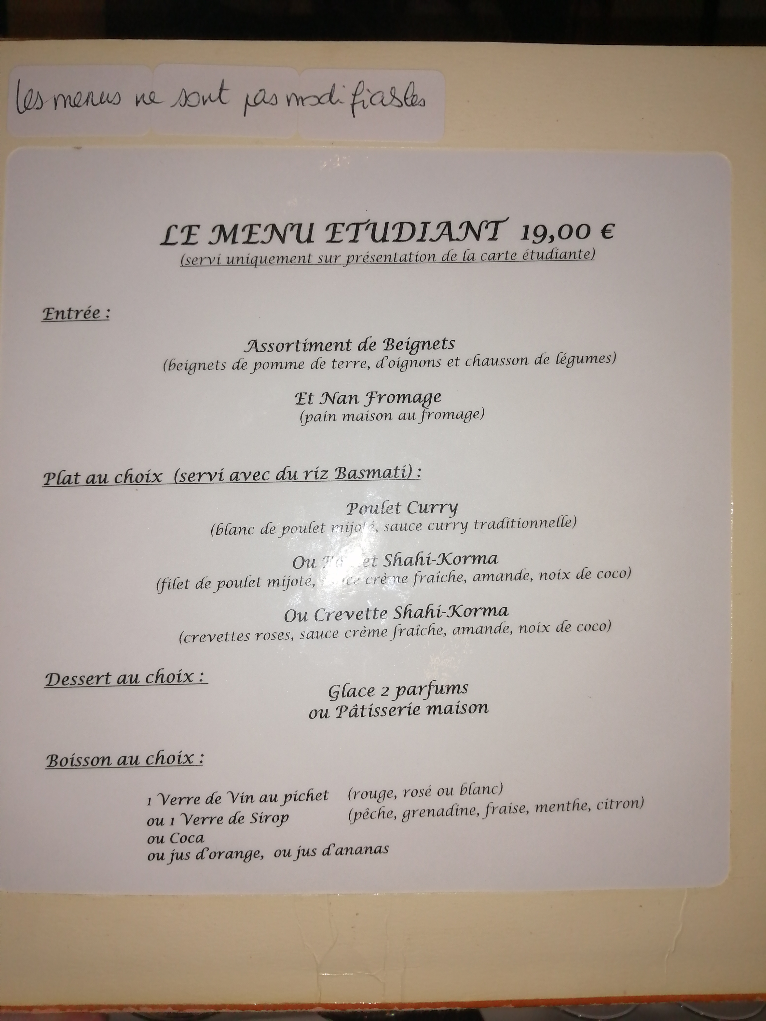 Super bon. Le menu étudiant est bon,copieux et raffiné. Je recommande vivement. En comparaison avec d'autres restaurant indien c'est un petit cran au dessus. Félicitations