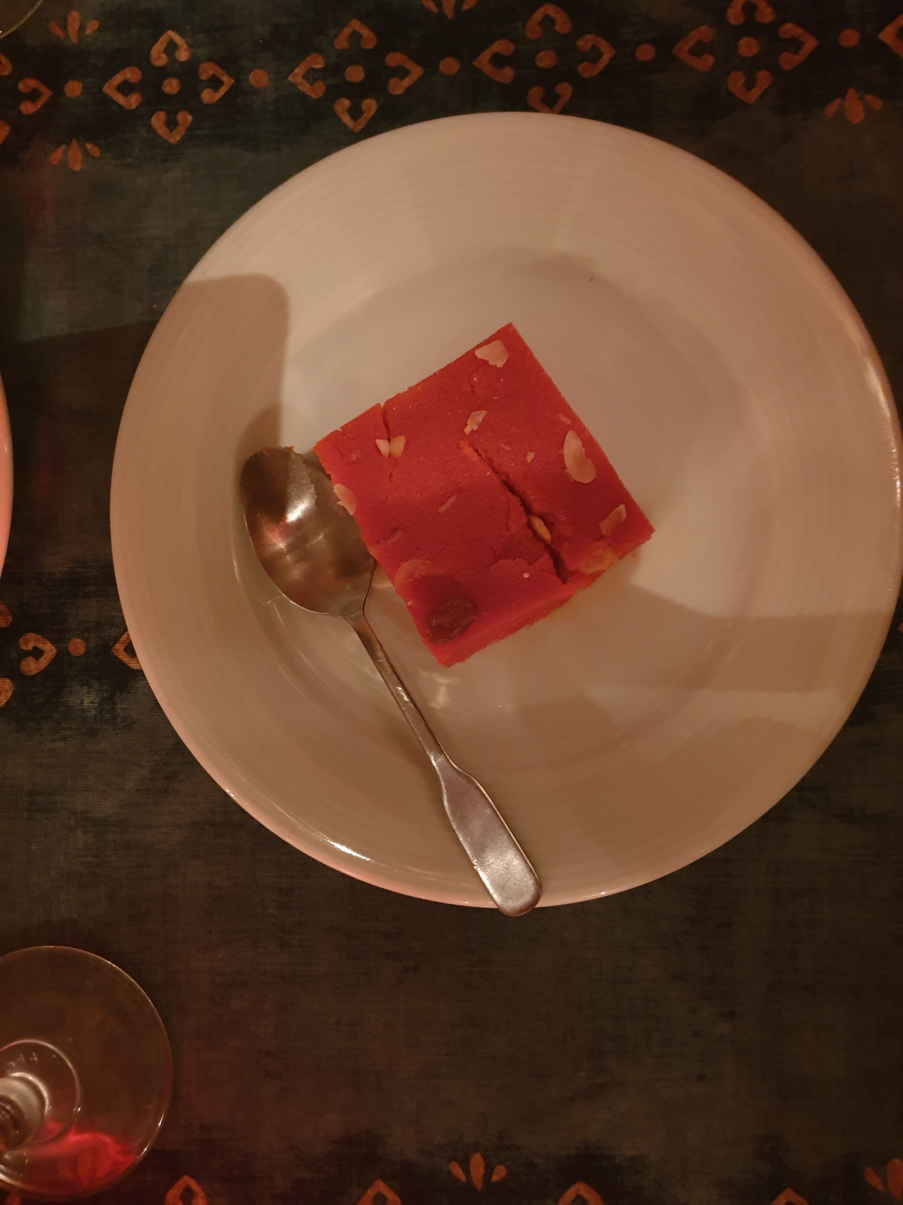 Repas en livraison ce jour. Déçue ! Nan au fromage sans fromage et trop cuit quasi brulé. Et le dessert halwa c’était une fondue, liquide, de la purée. Trop déçue ce soir.