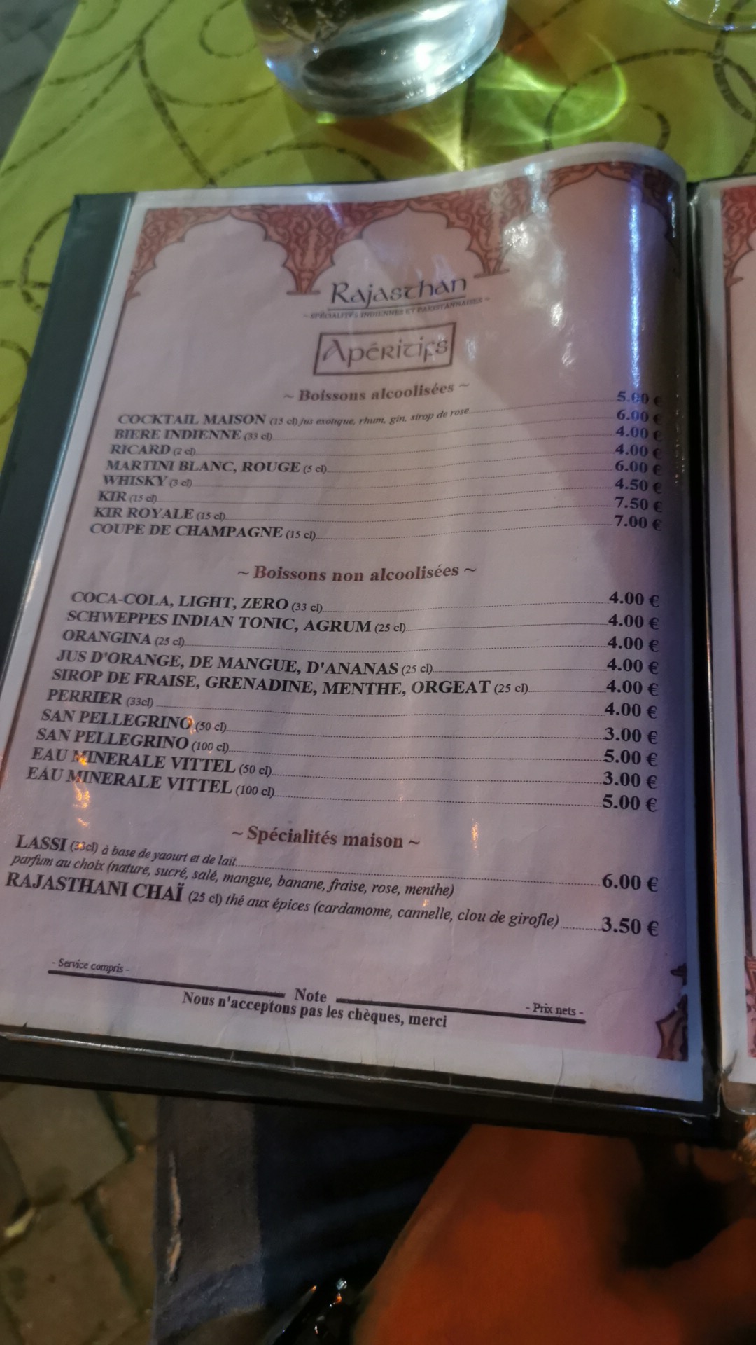 Très bon accueil- les plats sont bons et copieux ,le service est très correct..Les toilettes sont propres également..Nous reviendrons..A noter un très bon menu du 31 décembre (réveillon) à 25 euros..Dommage que nous soyons déjà invités, sinon nous aurions réservé au Rajasthan !..Vivement conseillé !
