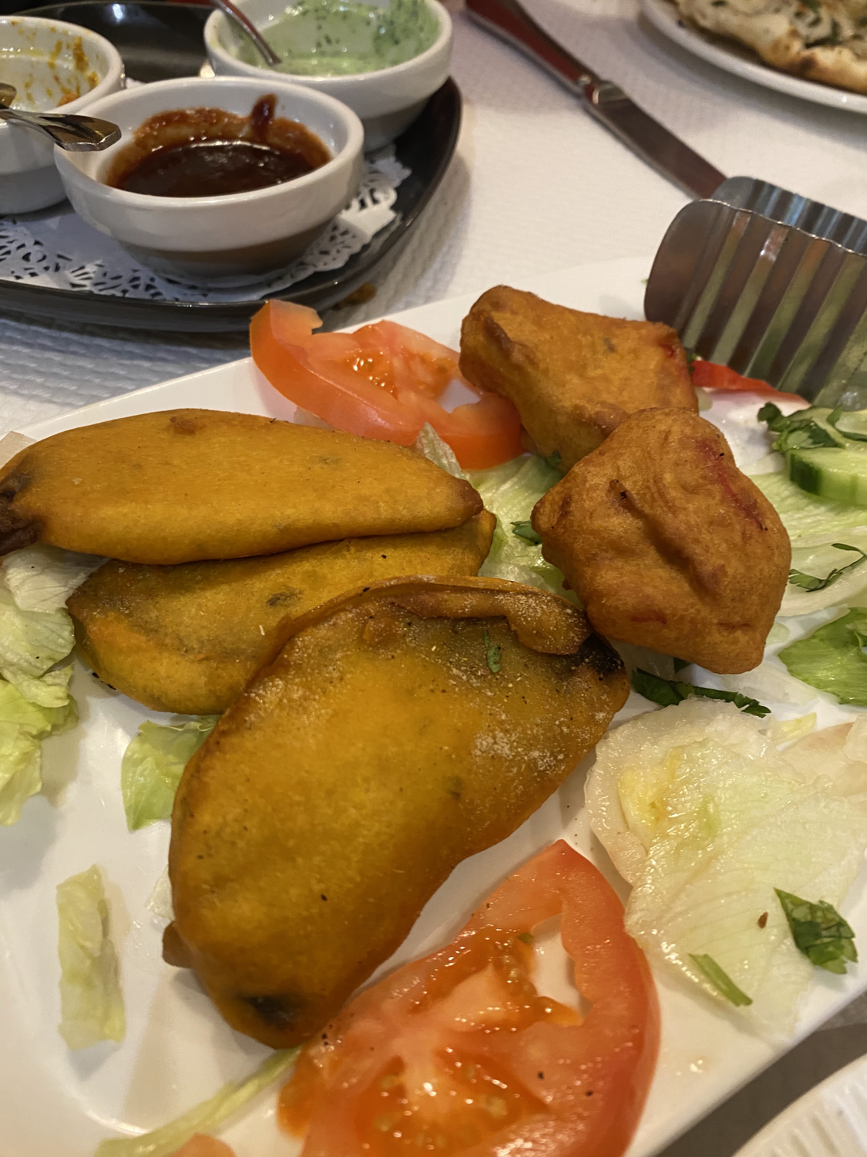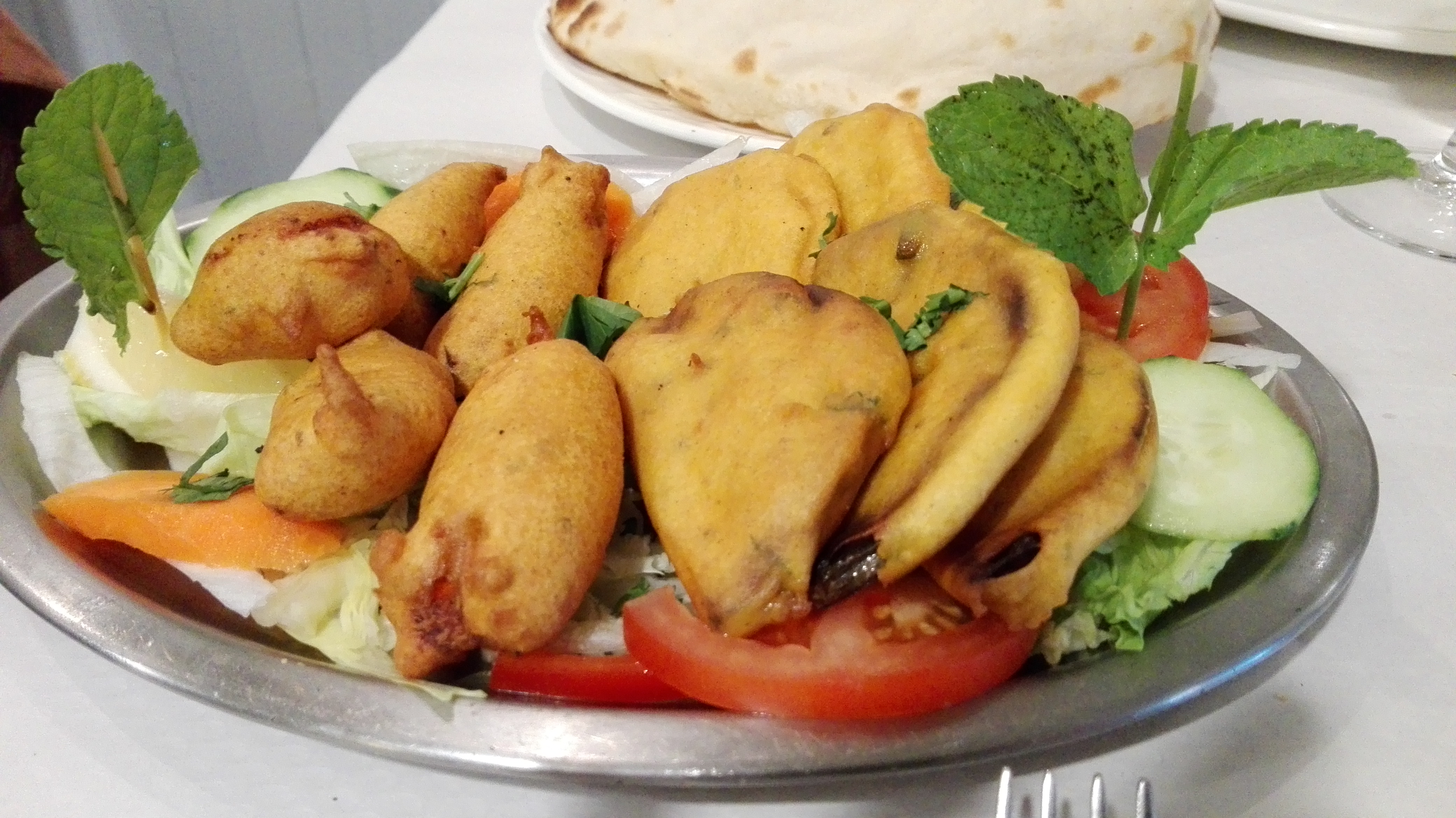 C'était un excellent service au restaurant. Nous voulions essayer quelque chose de nouveau et avons commandé un plateau composé de Samosas, de pakoras aux crevettes et de saumon tikka. Totalement délicieux.