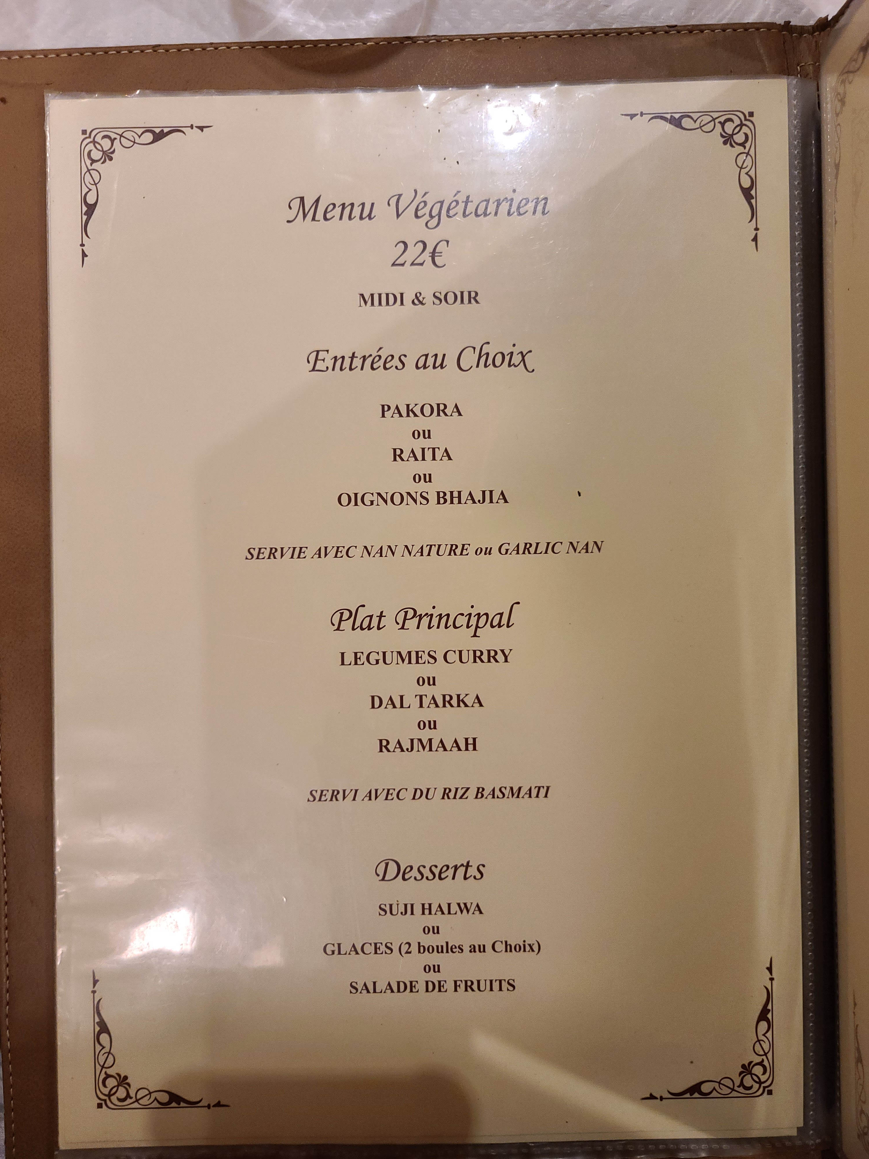 Nous allons très souvent dans ce restaurant où l'accueil est très chaleureux. Nous mangeons divinement bien. Les Nans fromages sont bien fournis et les plats en sauce sont bien relevés accompagnés de leur riz spécial (noix de cajou et raisin) qui est de très bonne qualité. Nous conseillons également les lassis à la mangue ou à la rose qui sont très bons également accompagnés du thé cardamome en fin de repas :) Bref, n'hésitez pas à gouter cette délicieuse cuisine indienne !