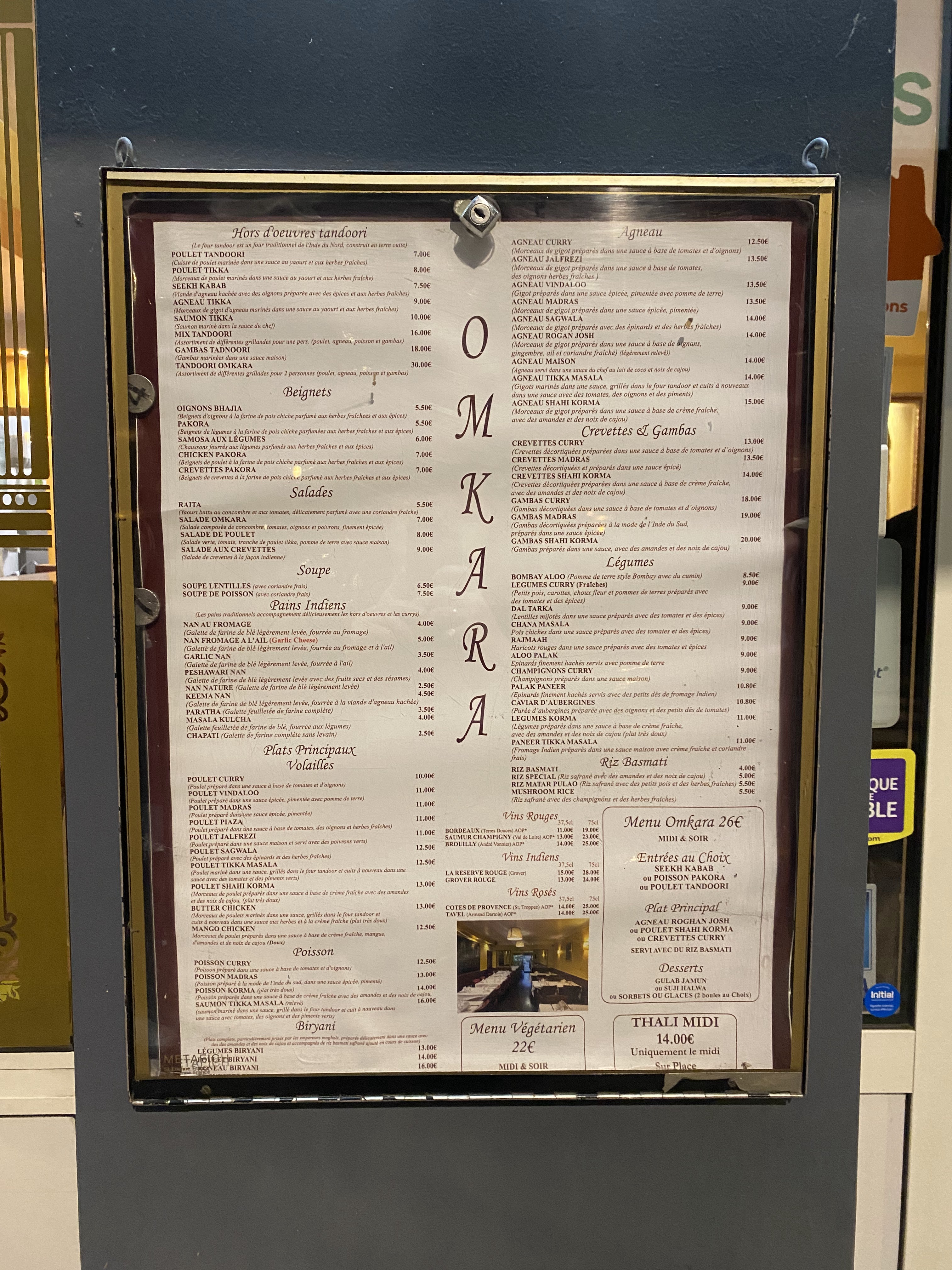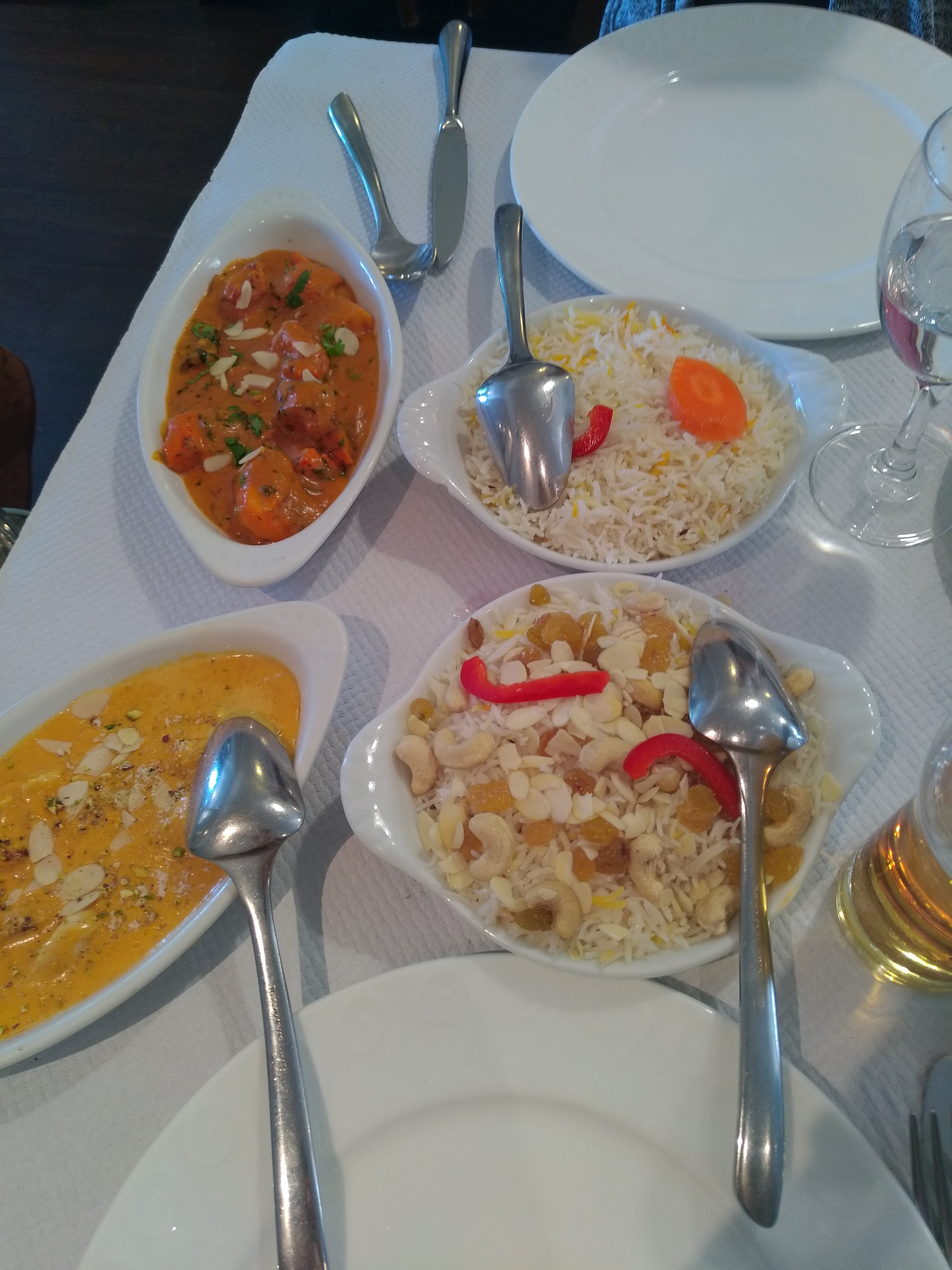 Nous avons testé le restaurant en vente à emporter. Commande passée au téléphone sans problème disponible 30 min après l'appel. Lorsque je suis arrivé la commande était entrain d'être finalisée et on m'a alors proposé gracieusement un verre de jus pour patienter. Les pars sont généreuses. Nous avons testé le butter chicken et des gambas c'était très bon et les enfants (3 et 6 ans ) ont adorés Les nann étaient très bon également avec tout de même une préférence pour le chease nann Et le riz spécial au noix de cajou est servi également généreusement. Nous recommanderons
