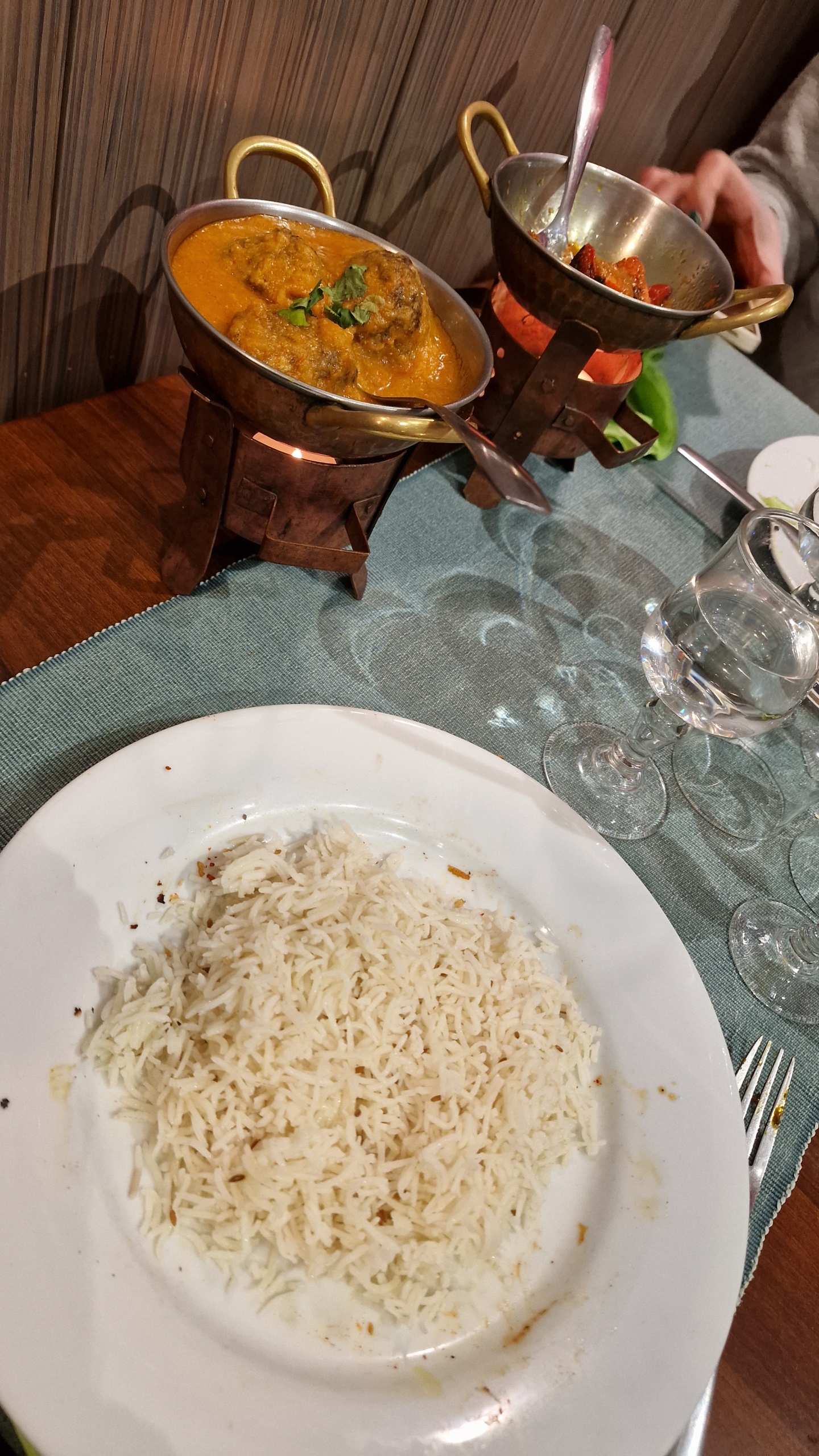 Très bon accompagnements (nann, lassi maison, riz) mais un peu déçue des plats. Les tables ne sont pas adaptées à ce type de cuisine, quant à la place.