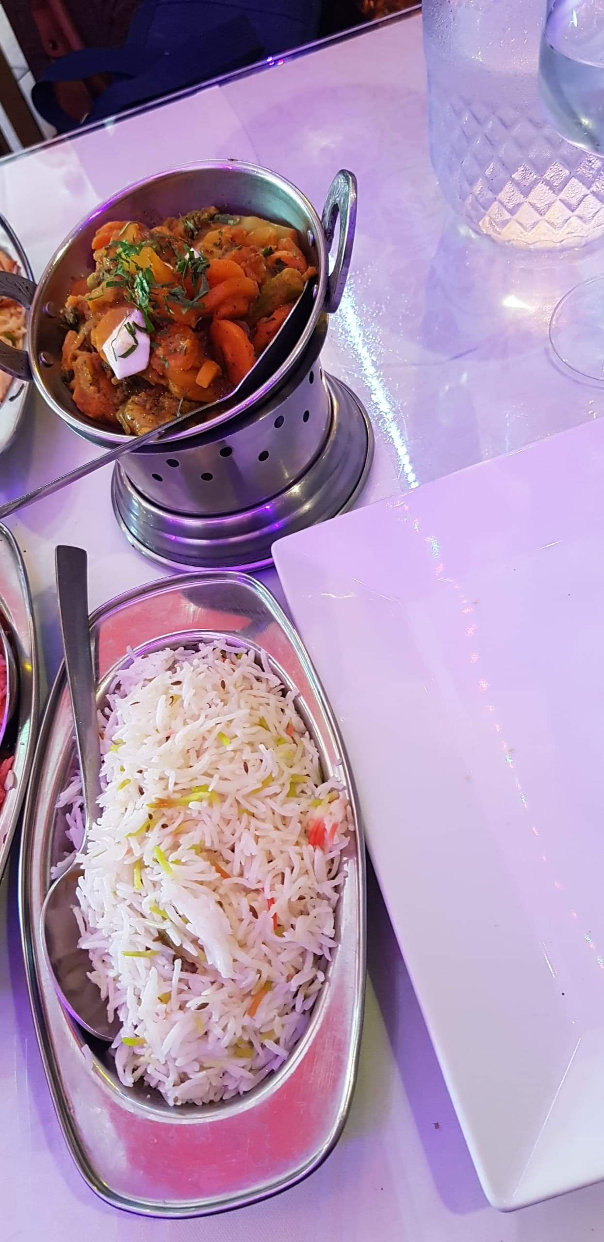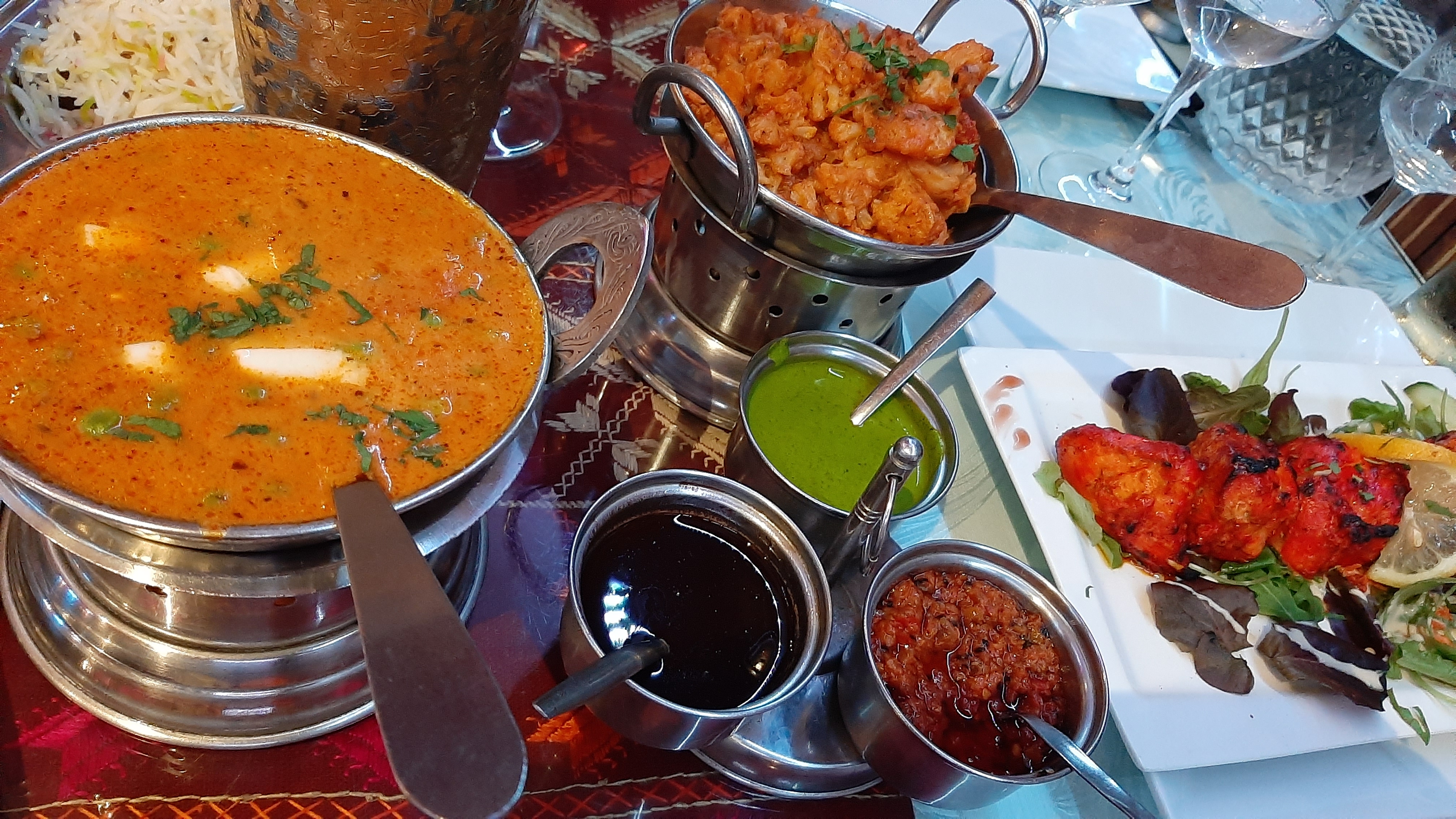 Très bon rapport qualité prix et très bien servi. Musique indienne un peu lourde à la fin mais c'est dans l'ambiance !