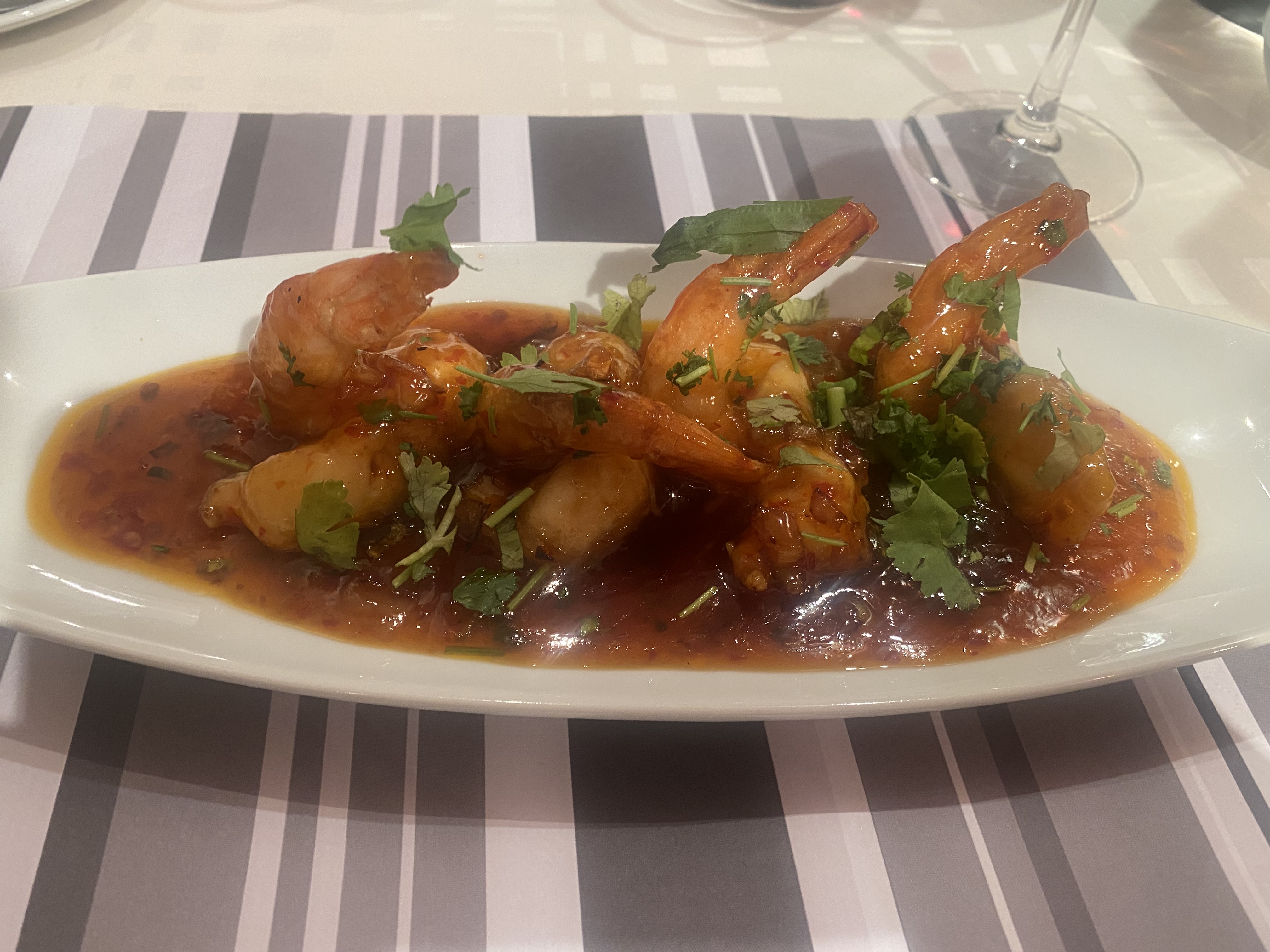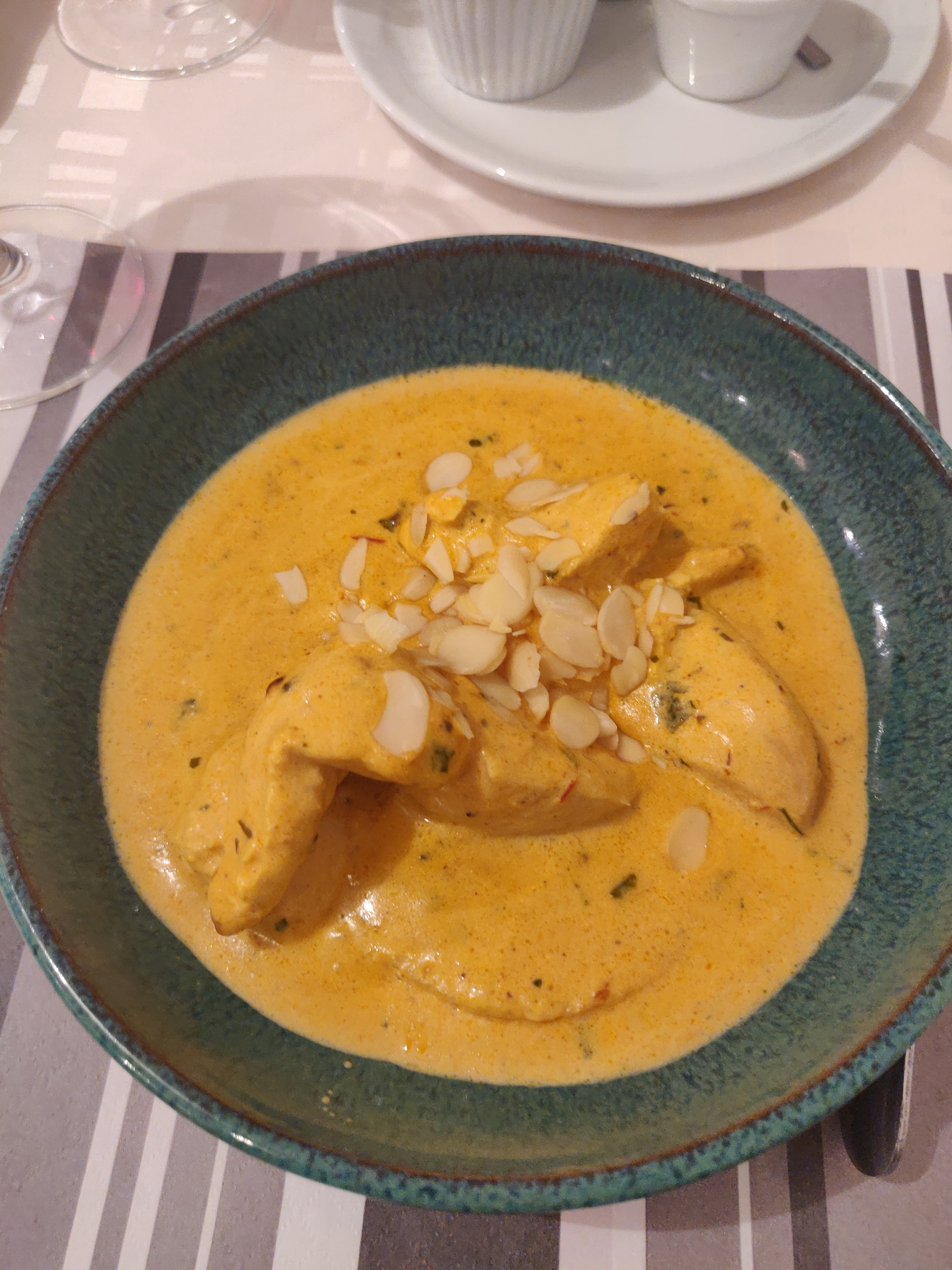 Nous avons eu un merveilleux repas chez Saveurs de L'Inde. Le service était sympathique, tout comme le propriétaire qui cuisinait lui-même ce soir et venait régulièrement demander si tout était à votre goût. Les gambas sauce chili étaient excellentes ainsi que le butterchicken et le Mix Ocian India, ce dernier composé de Coquilles St-Jacques, gambas, calamars, légumes et une sauce curry, super gourmand ! Le dessert avec de la glace de la maison était également savoureux. Dans l'ensemble, fortement recommandé si vous séjournez à Vannes.