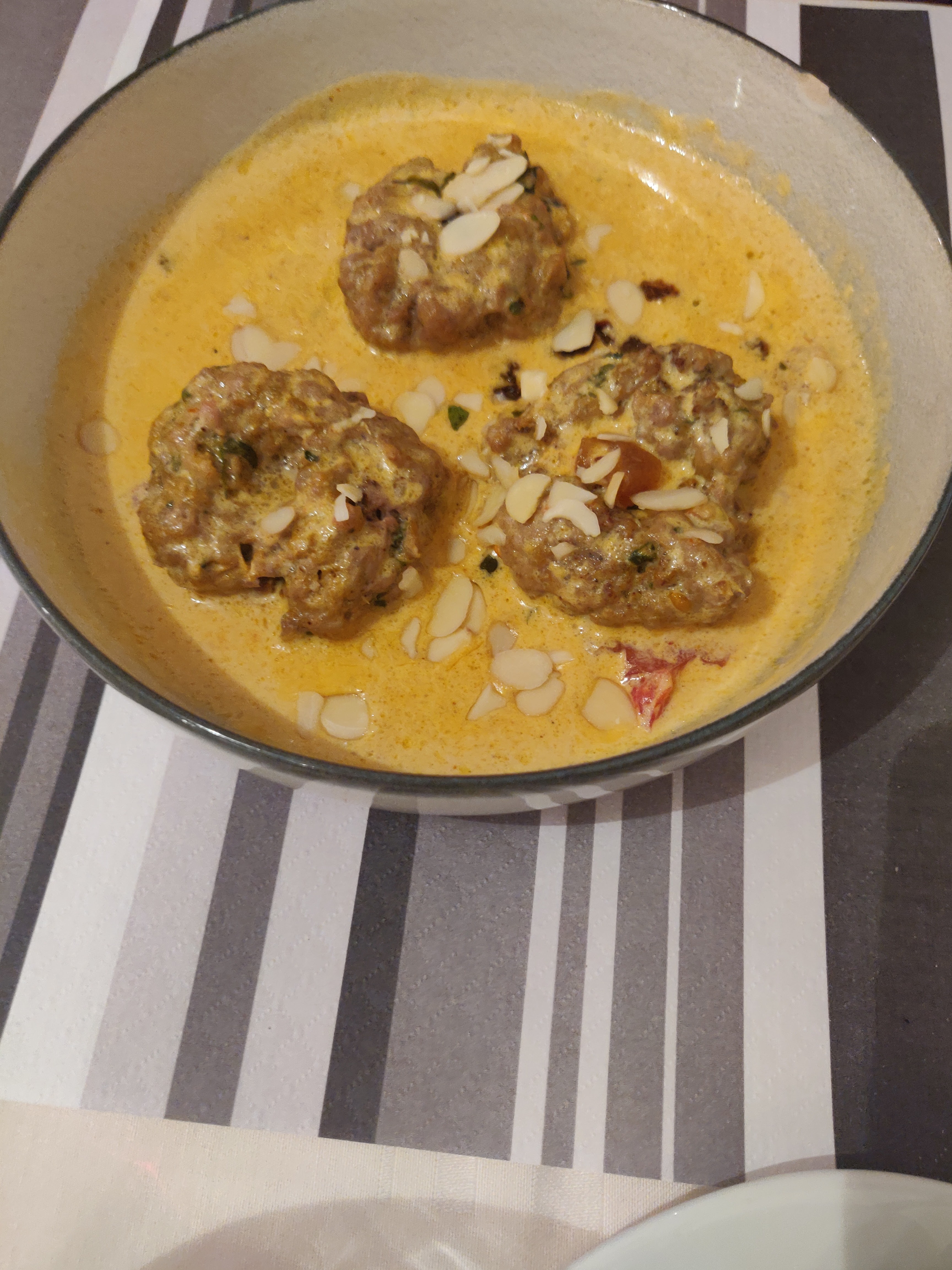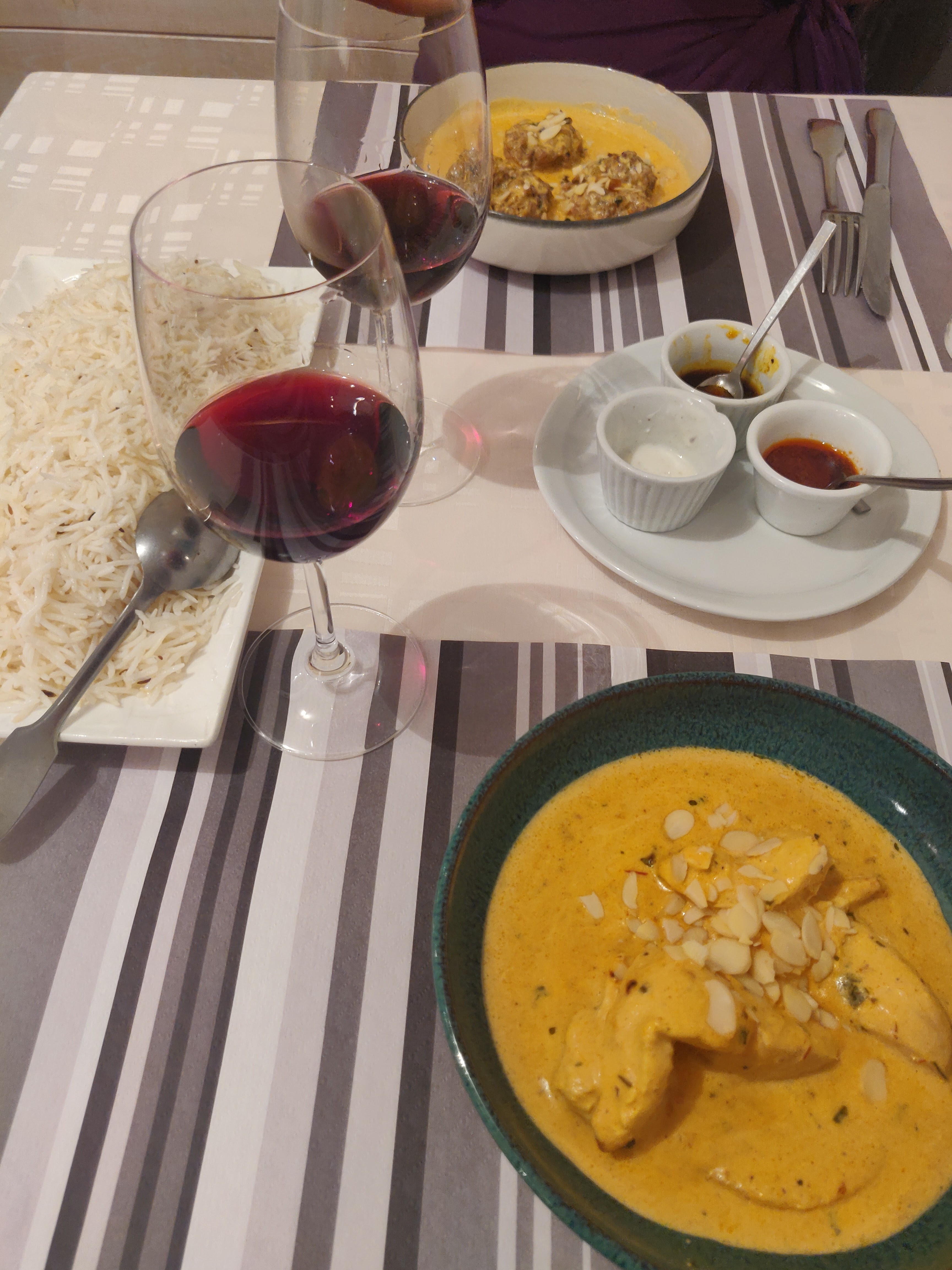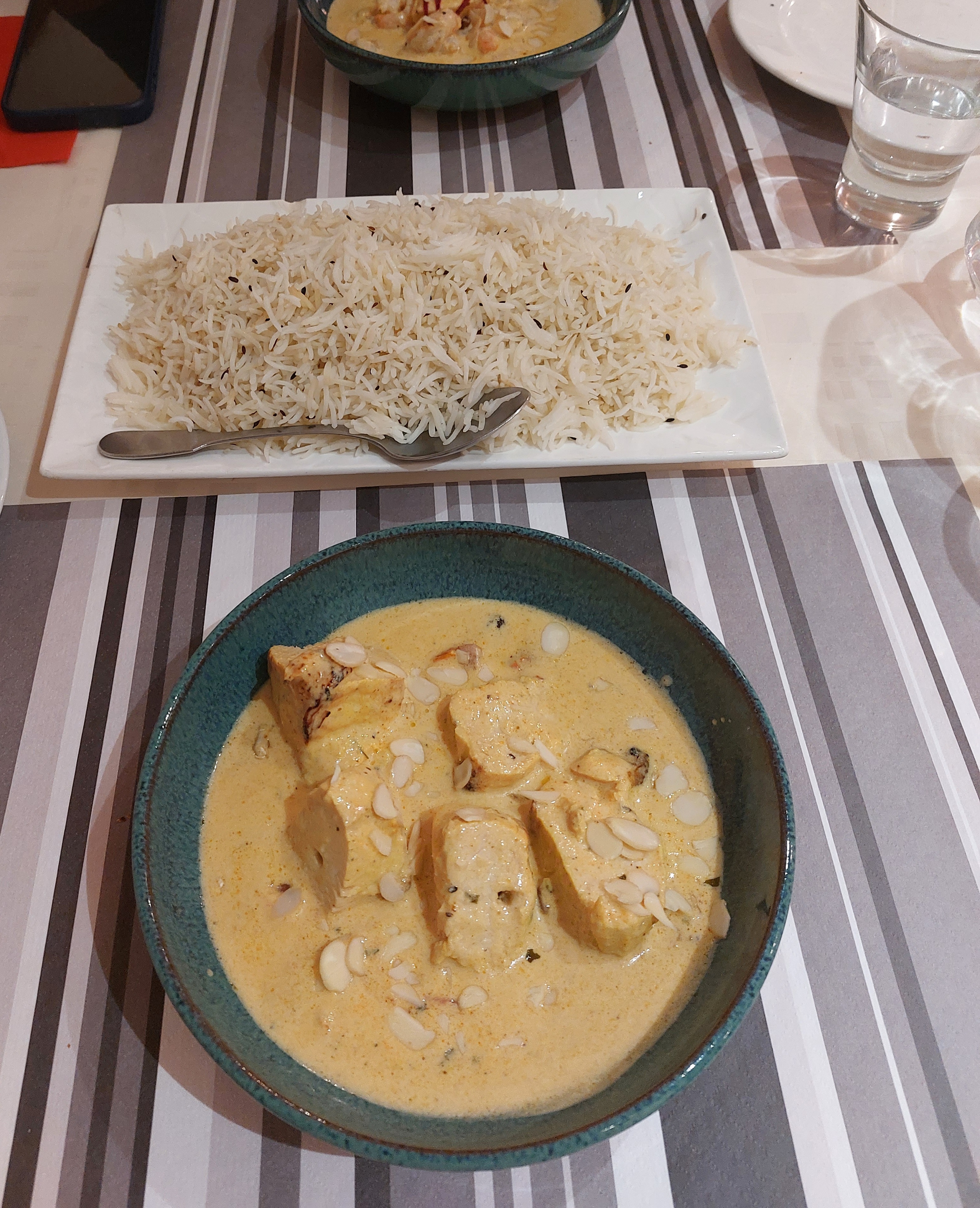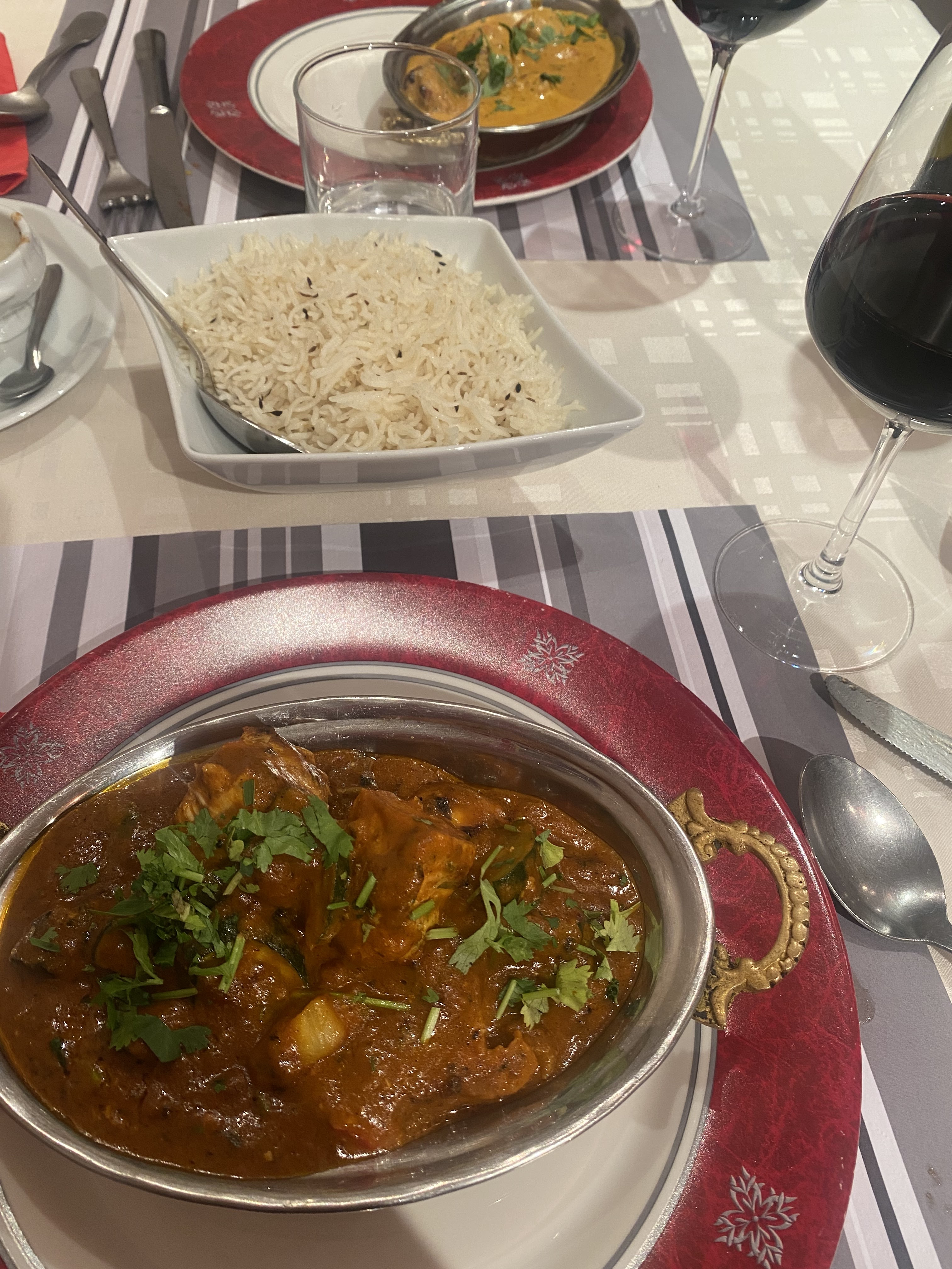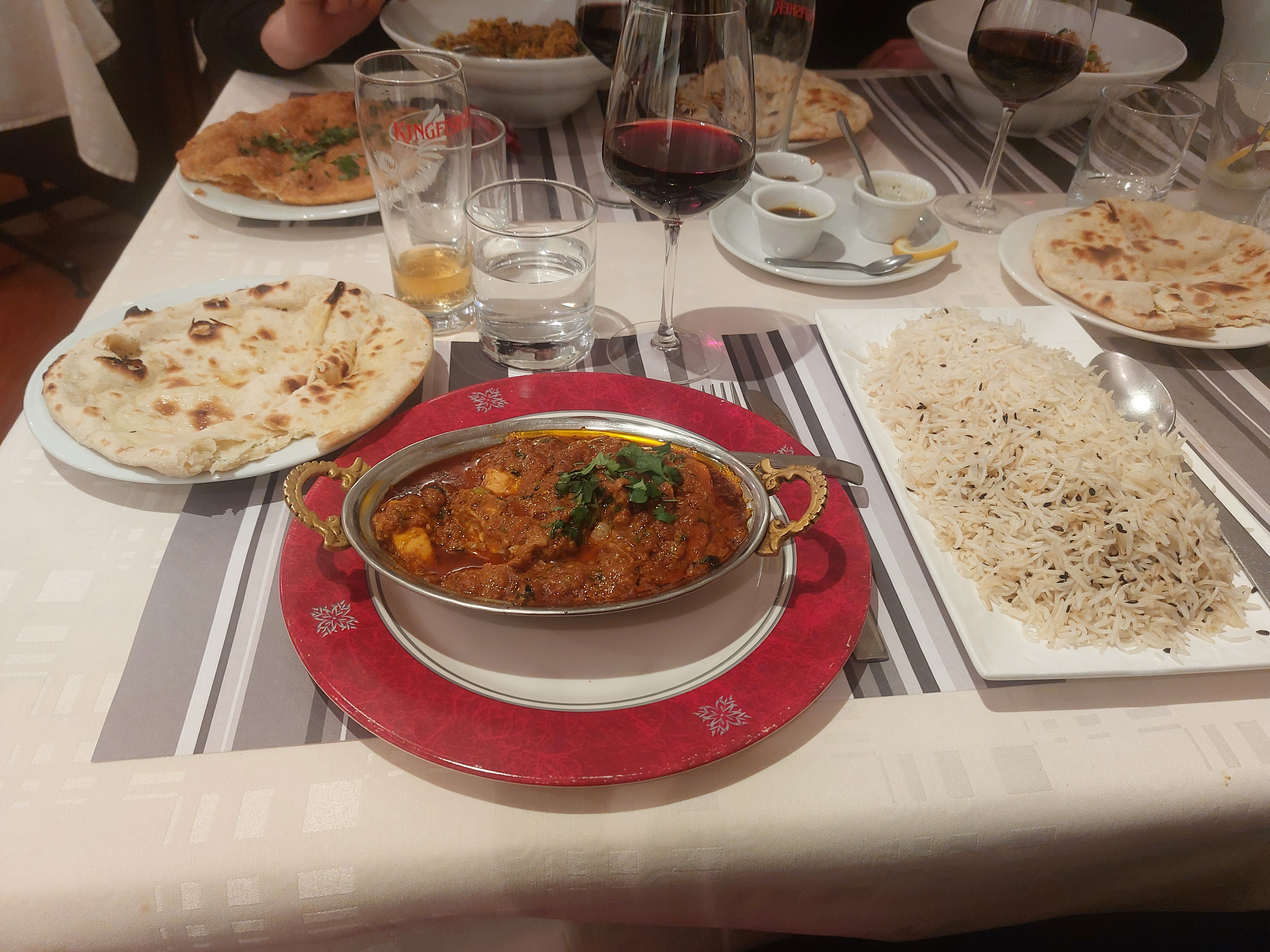 Je n avais pas encore goûté à la cuisine indienne, jusqu'ici. Ma première découverte était avec le riz basmati...... !!!! Extra fin, digeste... puis l agneau tikka masala!!!!! Alors là.... WELL DONE SIR! J'ai fait ma gourmande en rajoutant le Nan au fromageee 😊 j'ai du mal en m en passer maintenant. Il y a des choses qu'il faut faire au moins 1 fois dans une vie, et découvrir des bons plats en fait partie. Merci à la maison, en plus les portions sont généreuses