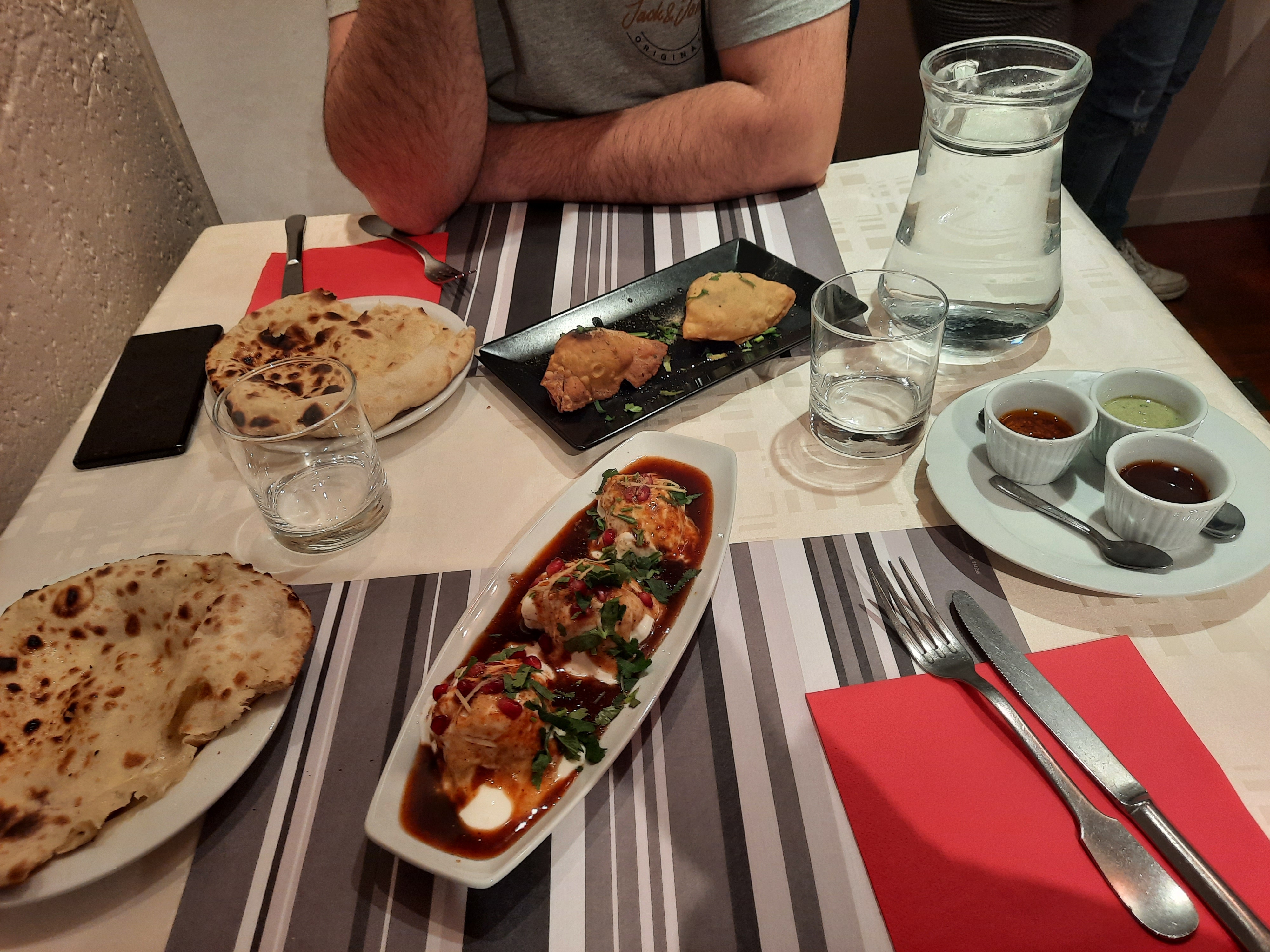 Très bon restaurant Indien. - entrées (pakora) délicieux - nan cheese & garlic délicieux - butter chicken très bon (un peu trop de tomate cependant) - gajar halwa : décevant, trop cuit et sec/farineux. Je recommande de changer de recette. La salle est en sous-sol, mais lumineuse et spacieuse. Le personnel est disponible et souriant.
