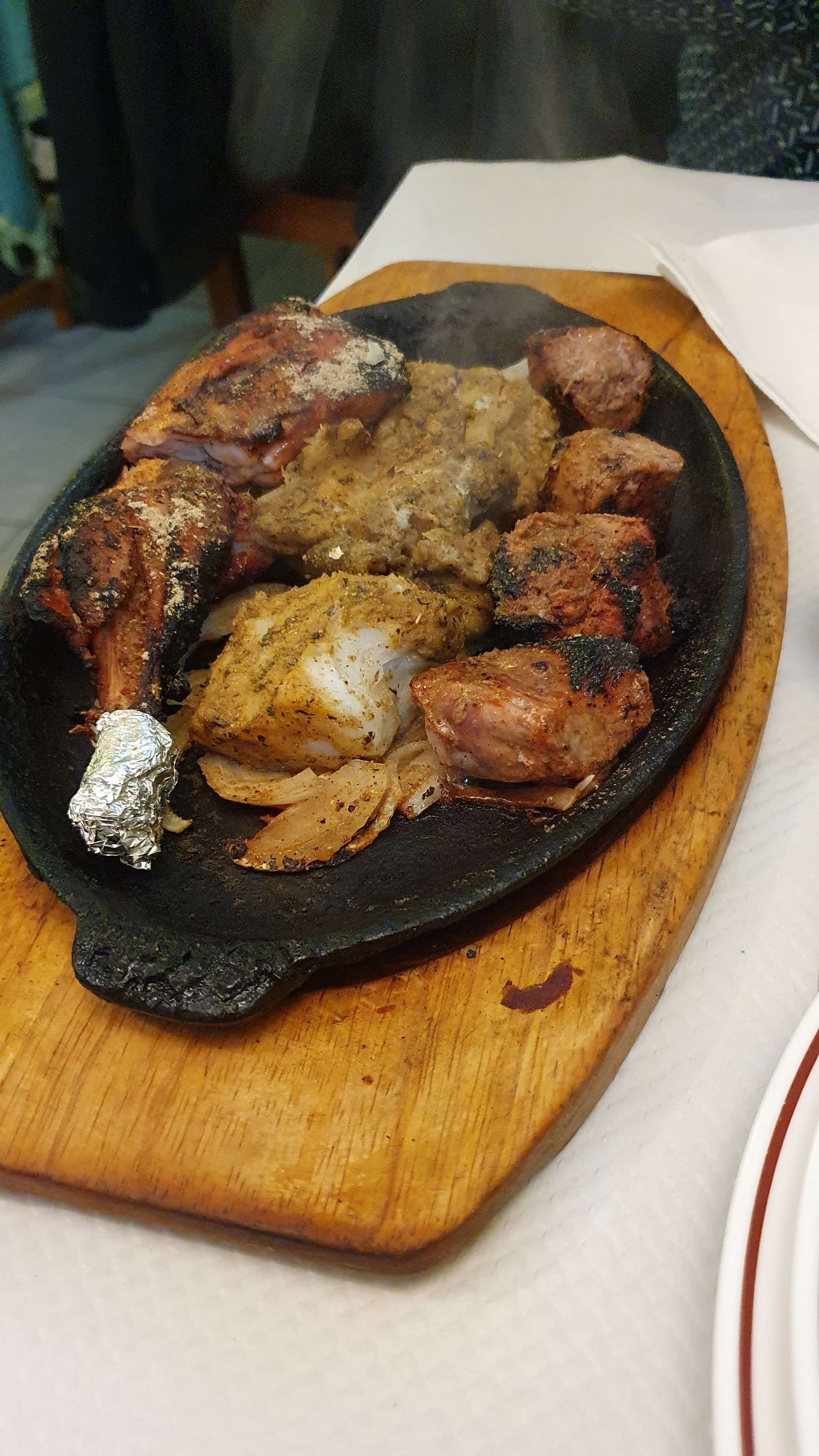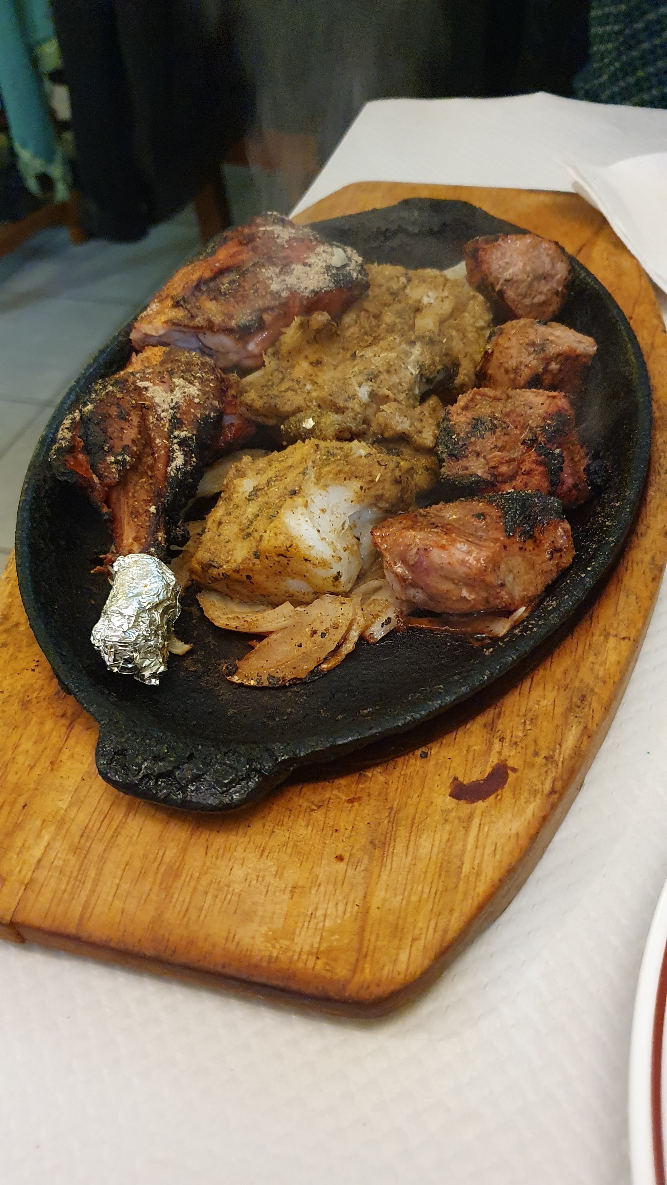 Le poulet est venu sur un lit de 2 morceaux d'oignon brûlé, impossible à manger, les samosas étaient ok mais le même est venu sur un lit de laitue qui semblait recyclé des clients précédents, poché et détrempé avec deux morceaux de pamplemousse séché. . affreux. En faveur je dois dire que le poulet massala était très bon et le riz au citron aussi. Il a fallu presque une heure pour nous servir en terrasse, même si cela ne m'a pas dérangé car la dame était seule avec toute la salle à manger.