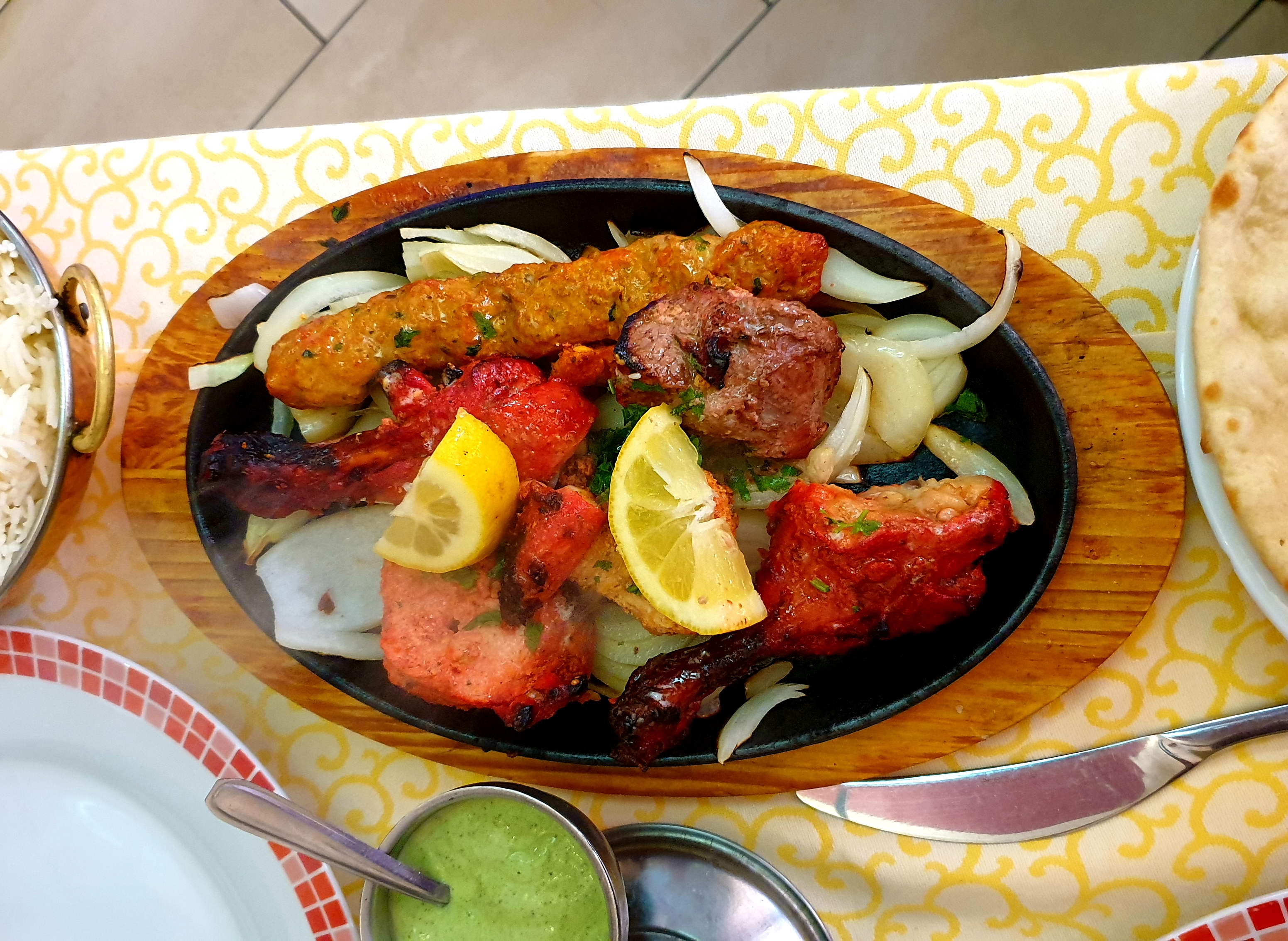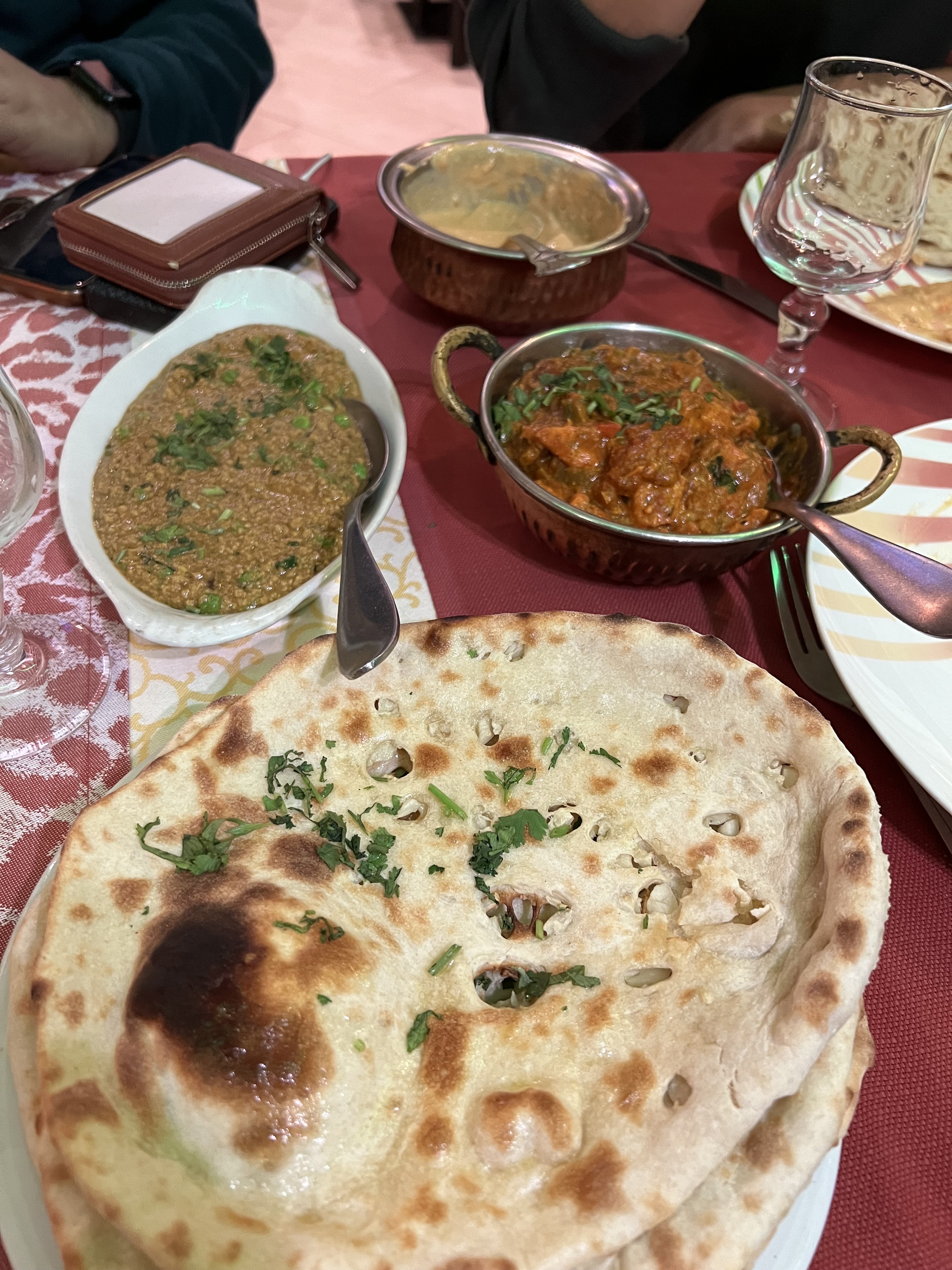J'ai mangé ici un samedi midi avec ma famille. On a pris le menu à 55€ qui comprend une mix grill avec du poulet, de l'agneau et du saumon rôti avec deux Naan (le pain indien) à choix. Ensuite moi j'ai pris le crevettes samasa et mon épouse le dall takara ( des lentilles avec une sauce au curry). Après tout ça c'est le moment du dessert, à choix entre tous les desserts de la carte, nous avons pris la sélection des dessert maison attente la glace maison indien. Tout excellente et fait maison. Personnel très accueillant et cordiale. Très conseillé