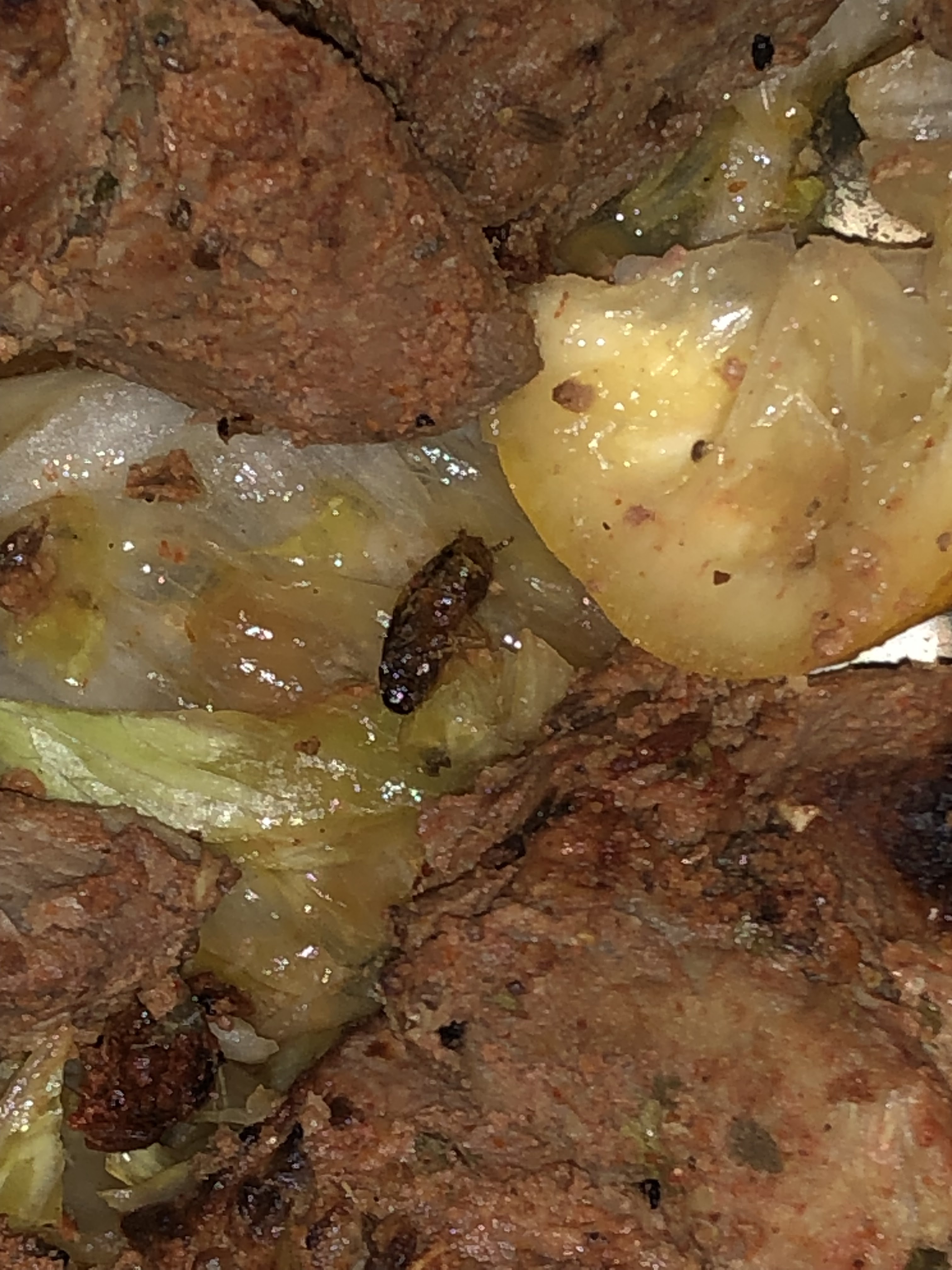 Fuyez !!!!!!!!!!!!!! Des insectes type cafard dans mon plat. Je rêve !!!!!!!!!!!!