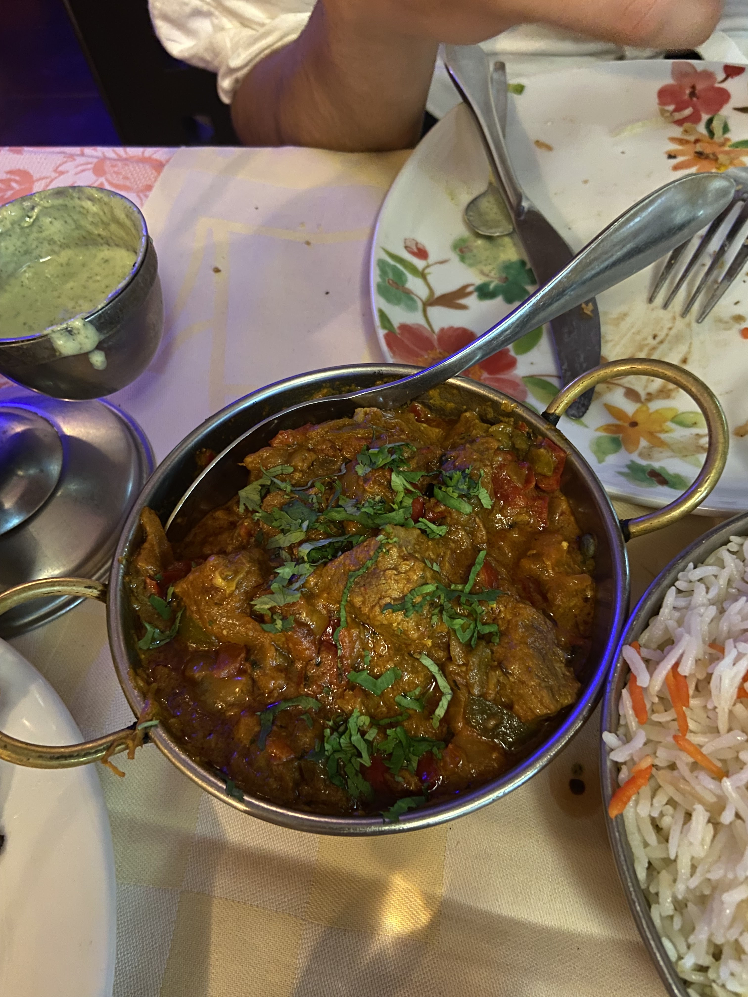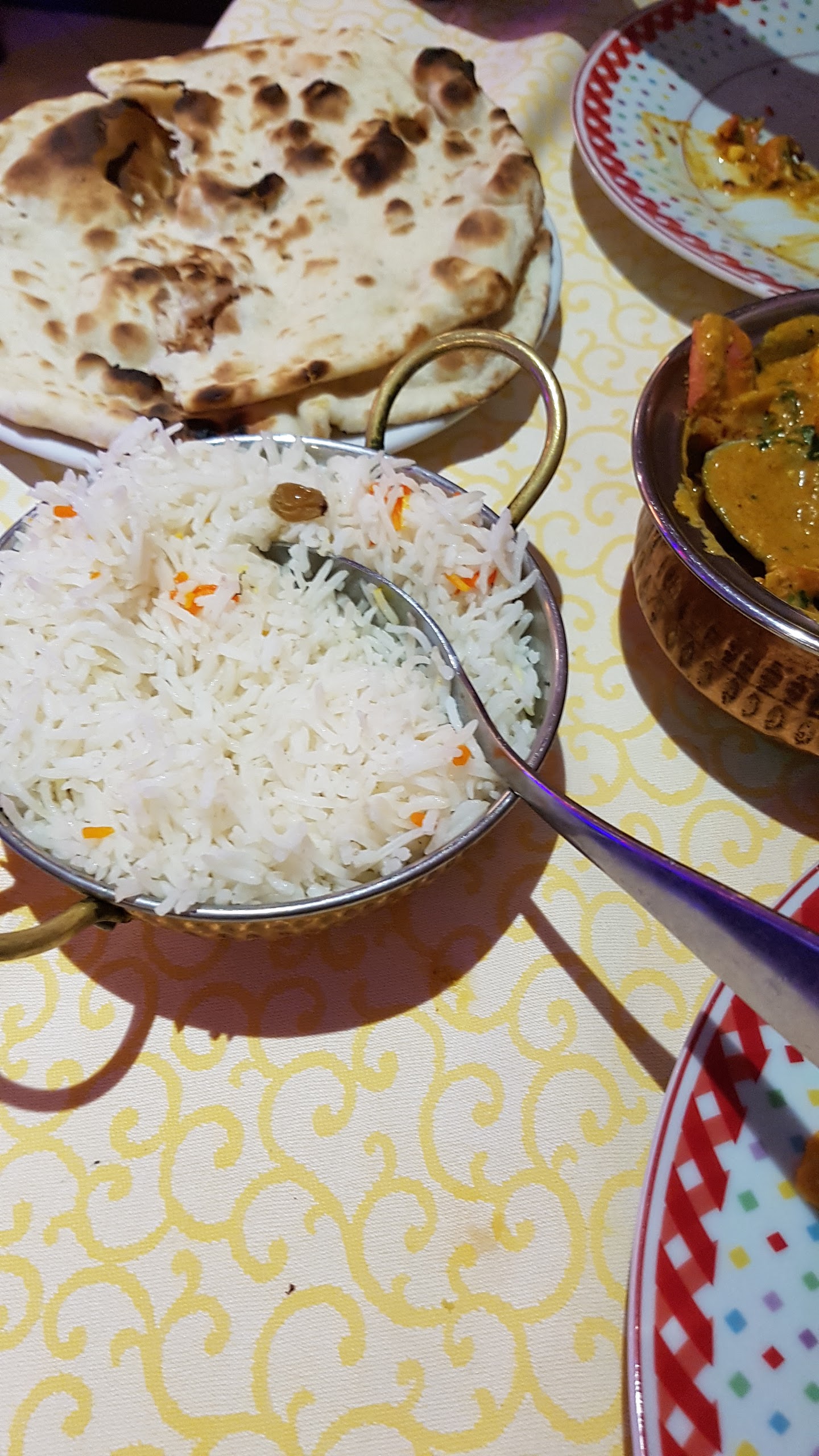 La nourriture est excellente, parfumée à souhait. Ce n'est ni trop épicé, ni trop gras, c'est parfait. Mon plat préféré? L'agneau Royal Kashmir. Et en plus, c'est abordable😀