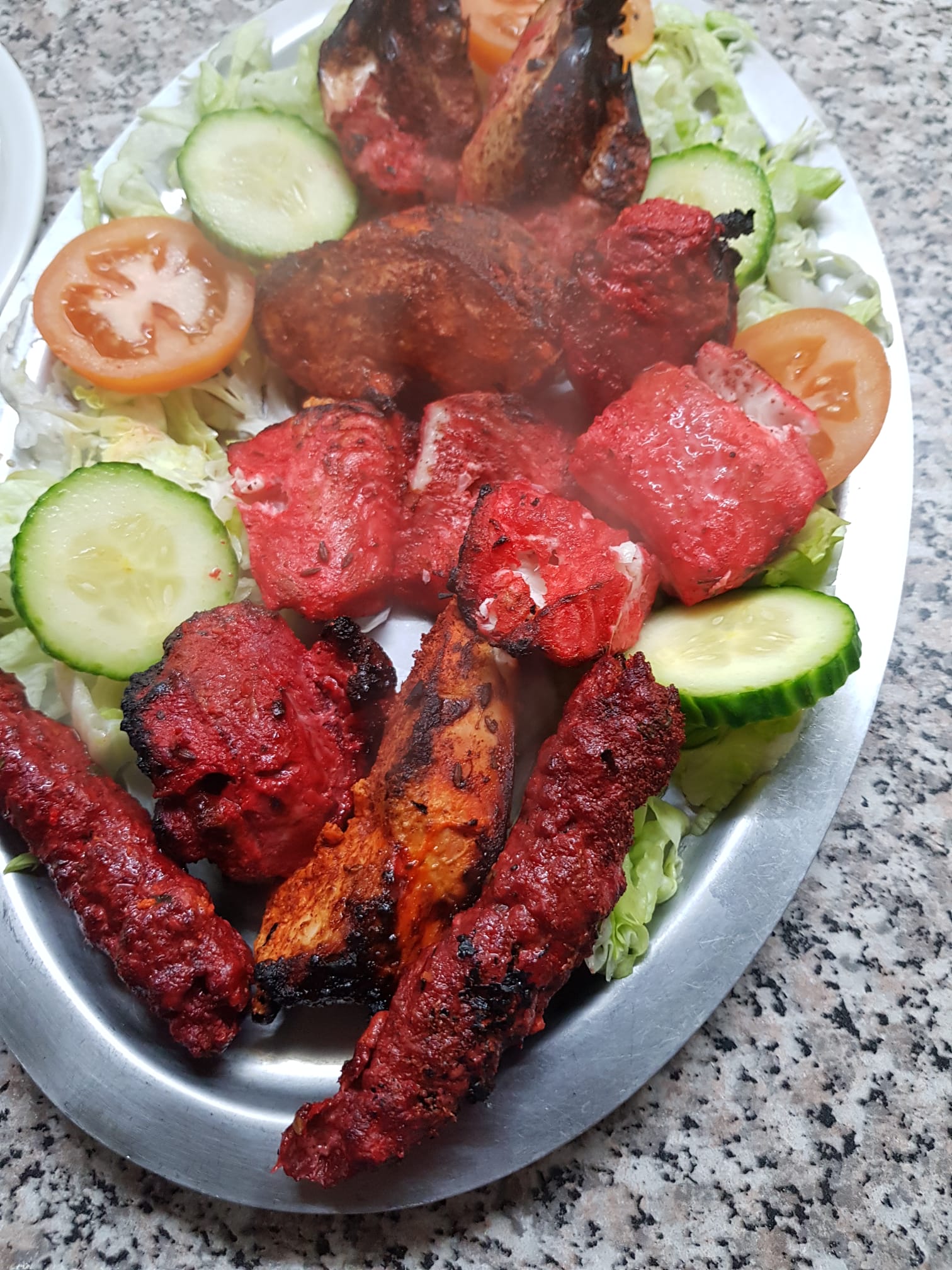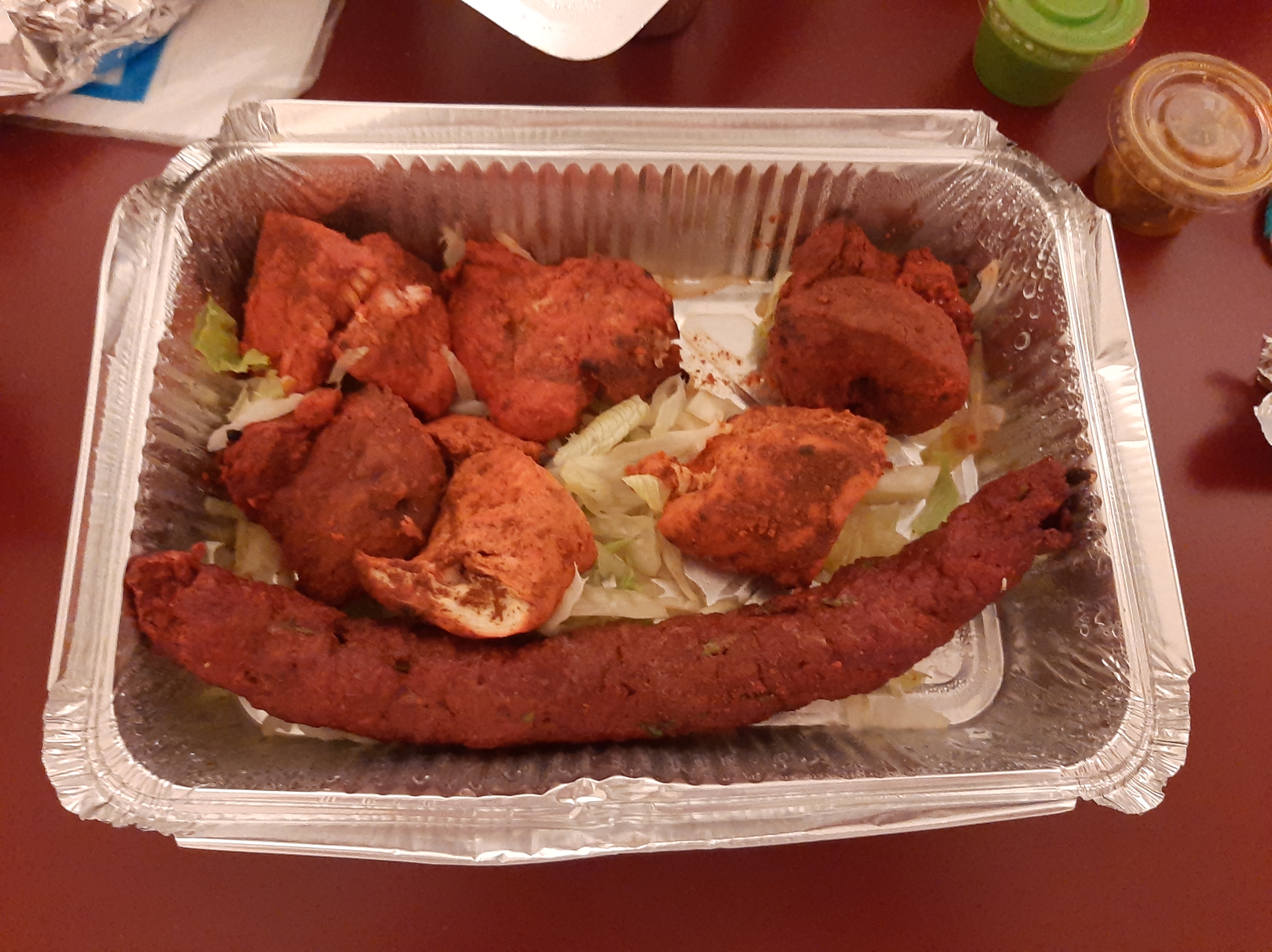 Interlocuteurs agréable et souriant, nous avons choisis le royal grill très bon avec différentes viandes ou poissons 2 morceaux de chaque et les beignets de légumes avec leur sauces, le mix légumes bien épicé, un royal crevettes à la mangue délicieux et des naans. Le tout prêt à l'heure pour venir le chercher, pas d'attente et bien chaud dans des barquettes bien fermées.