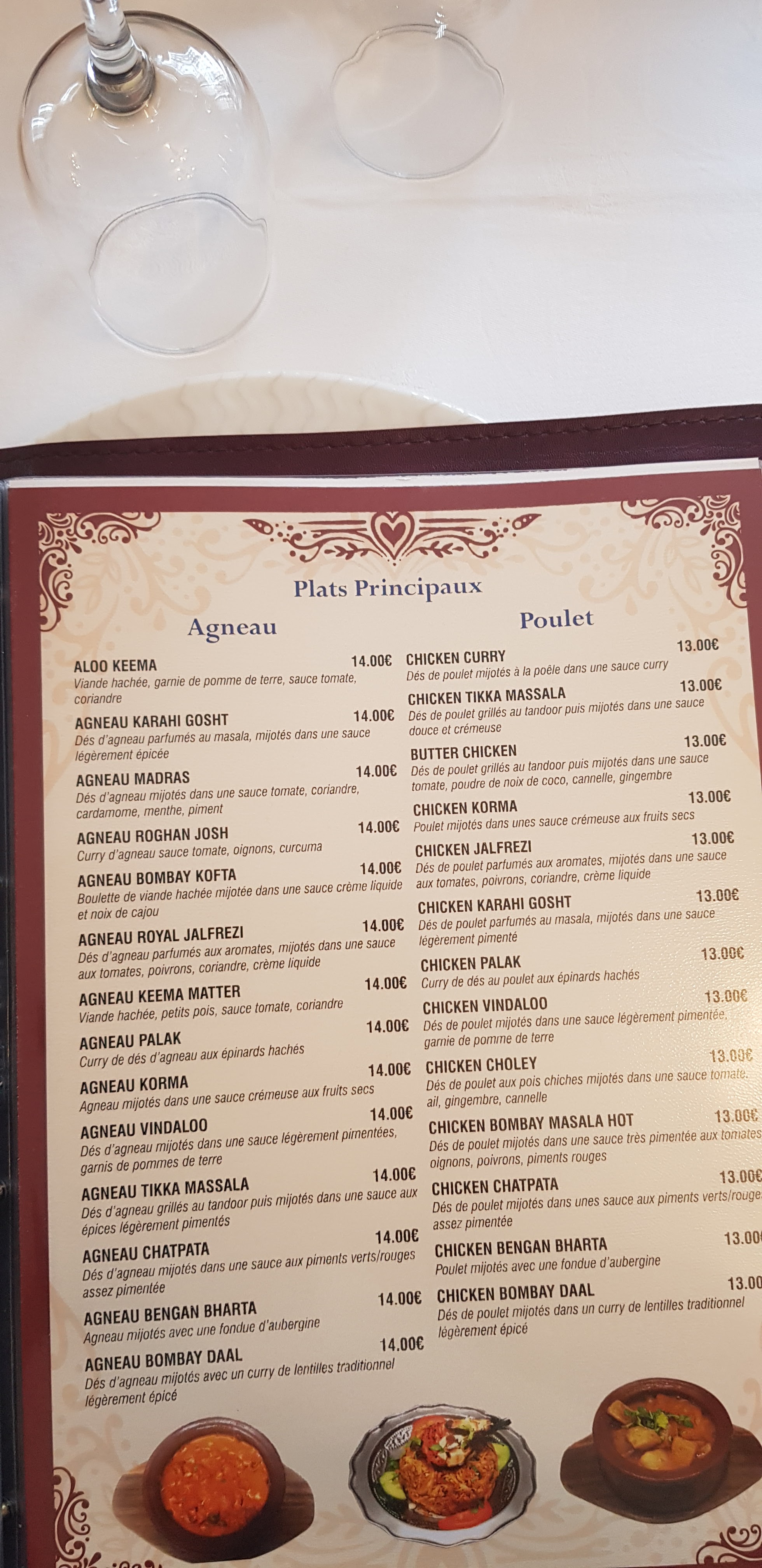 En tant qu'adepte de l'indien, je vous recommande ce restaurant bien décoré à l'ambiance intimiste. Le service est précieux car le personnel est vraiment à l'écoute pour nous satisfaire au mieux. Les prix sont corrects et surtout les cheeses nans. Ils sont topissimes et on ne s'en rassasie pas. J'y suis allée mardi soir et j'ai pris un chicken palak. Il m'en restait encore car les plats sont plutôt bien servis. Bref, j'y retournerai c'est sûr !