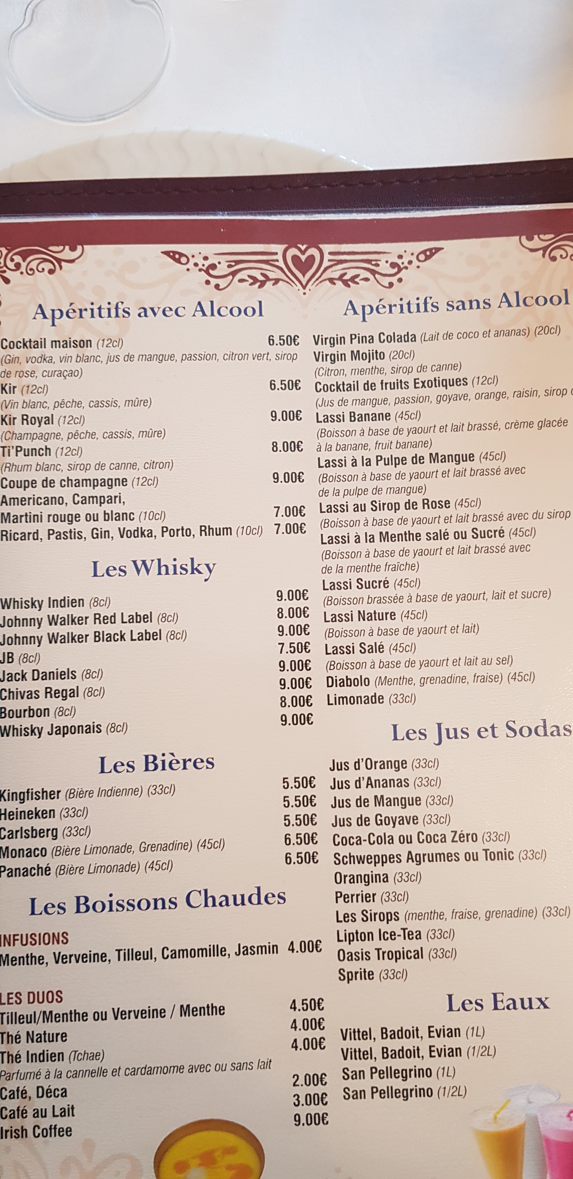 Rien à dire respecte les recettes traditionnelles à la Française. Les épices et les saveurs parfumés . 🍻 Bière et vin indien