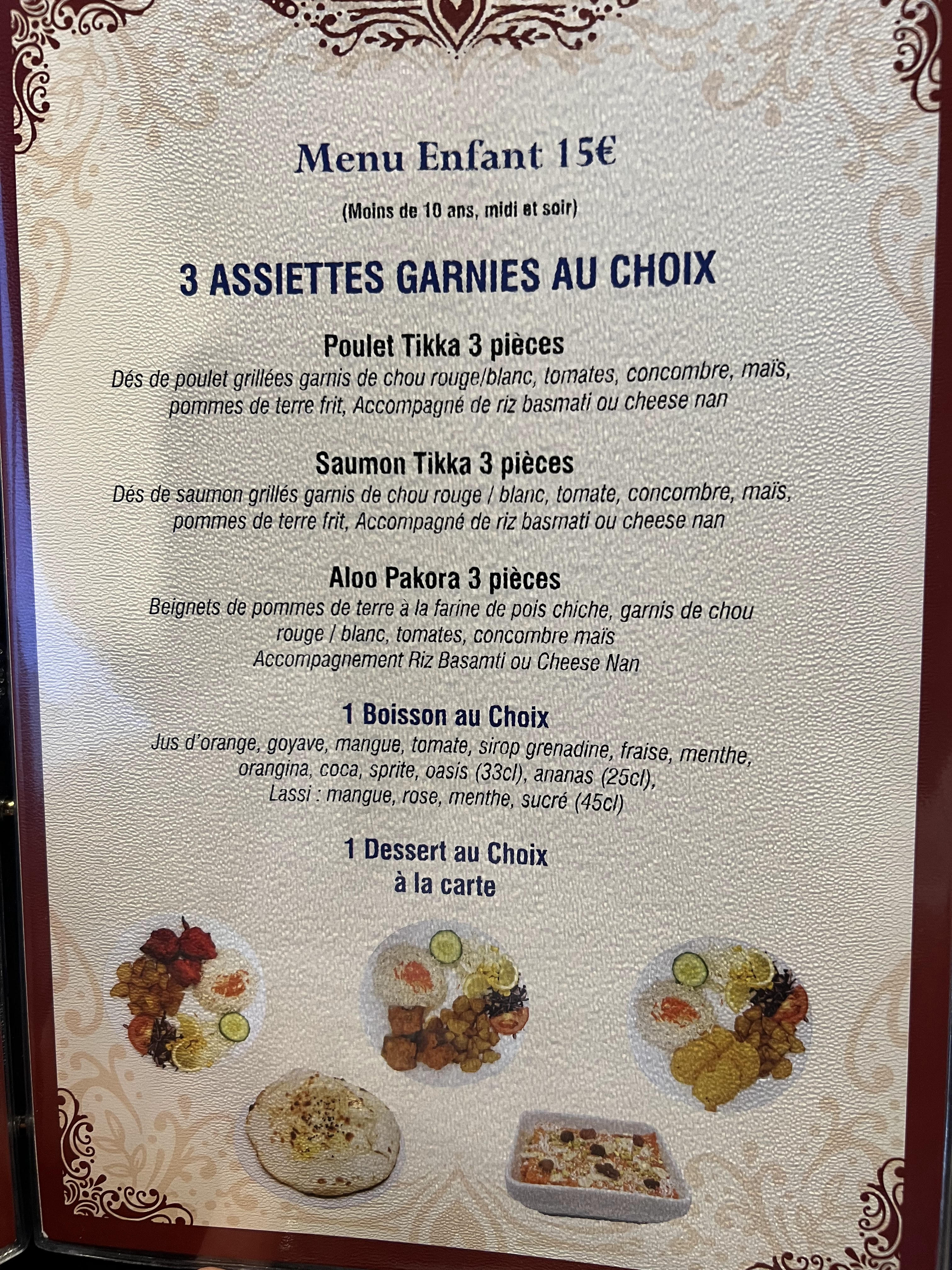 Des plats très parfumés et très goûteux, des serveurs très aimables. La déco intérieure est à elle seule un voyage. Possibilité de repas de groupe, terrasse, prix très corrects Petite faim s'abstenir ou demander à emporter le reste du repas, ce qui est généralement proposé en fin de repas. Le cheese nan est à tomber. Je recommande en dessert (même si on n'a plus très faim), le kheer... Dessert très frais à la cannelle, cardamome et pistaches... savoureux 😋😊 Toutes les personnes (même les plus réfractaires à la cuisine indienne) ont apprécié... Je recommande sans hésitation. Bravo et à bientôt