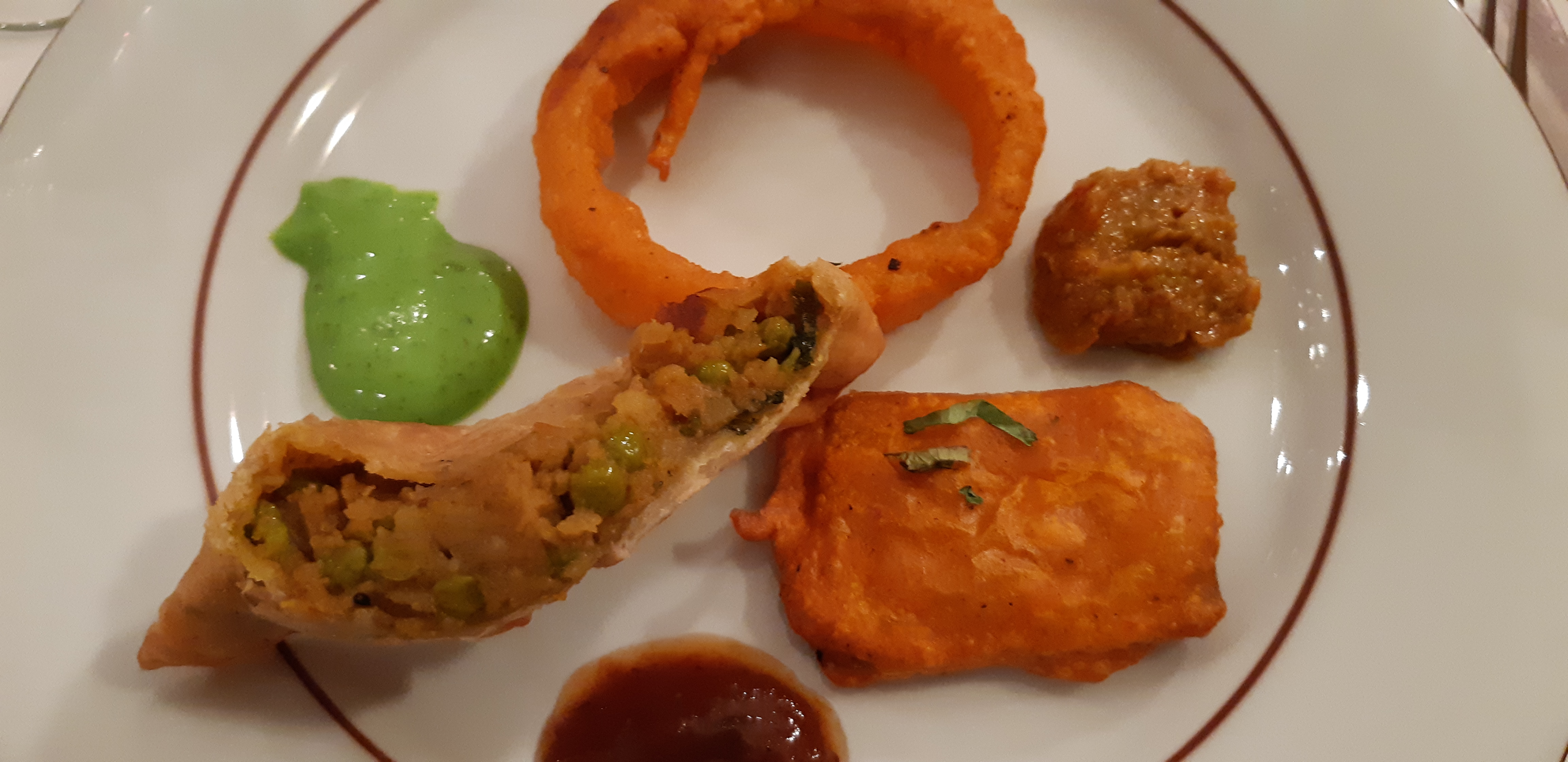 Très bon ! Soupe de lentille, samousa legume sauce epinard creme fraiche ...