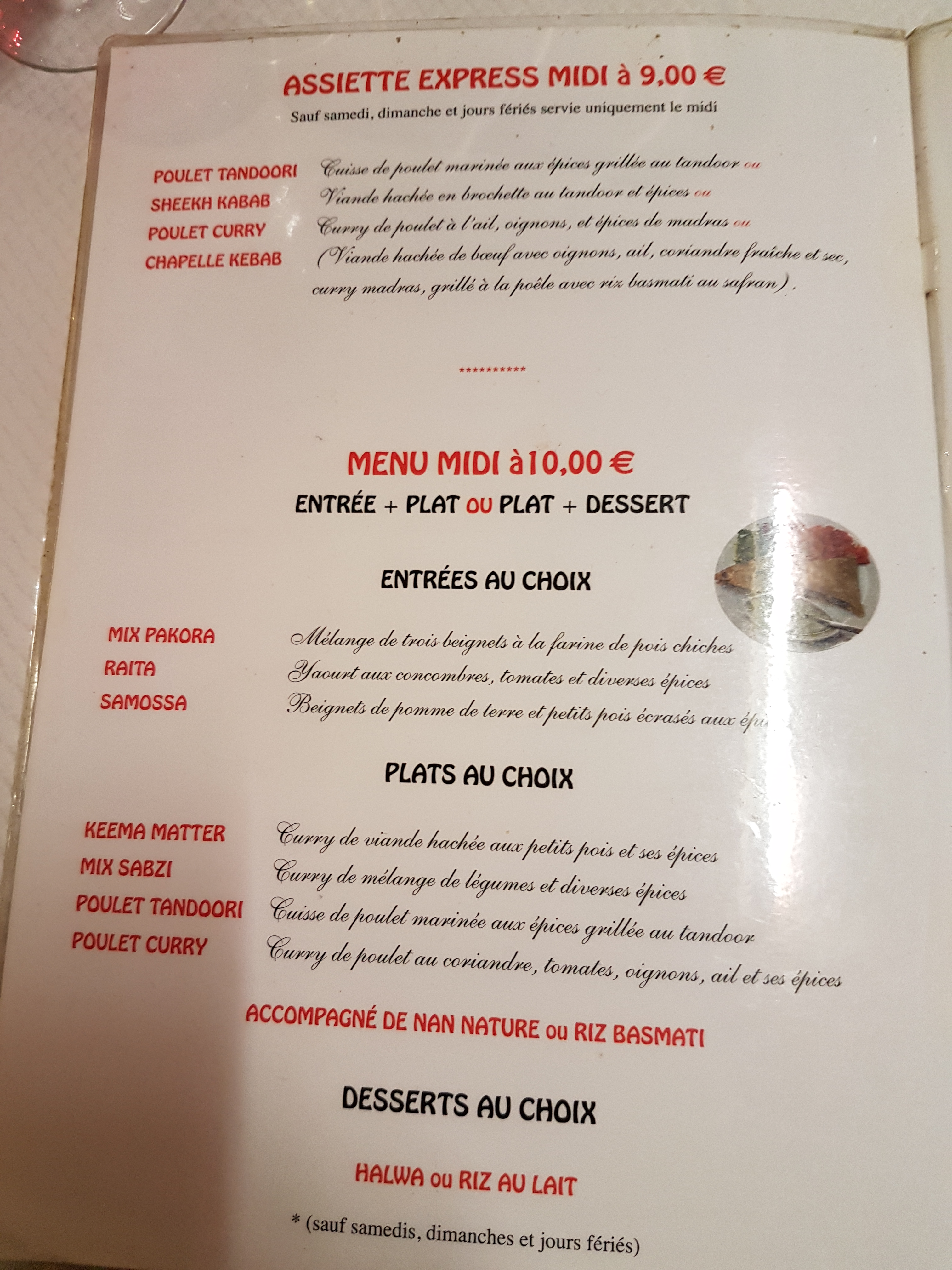 1ère fois dans ce restaurant indien. Très correct, que ce soit au niveau du prix comme de la qualité des plats.