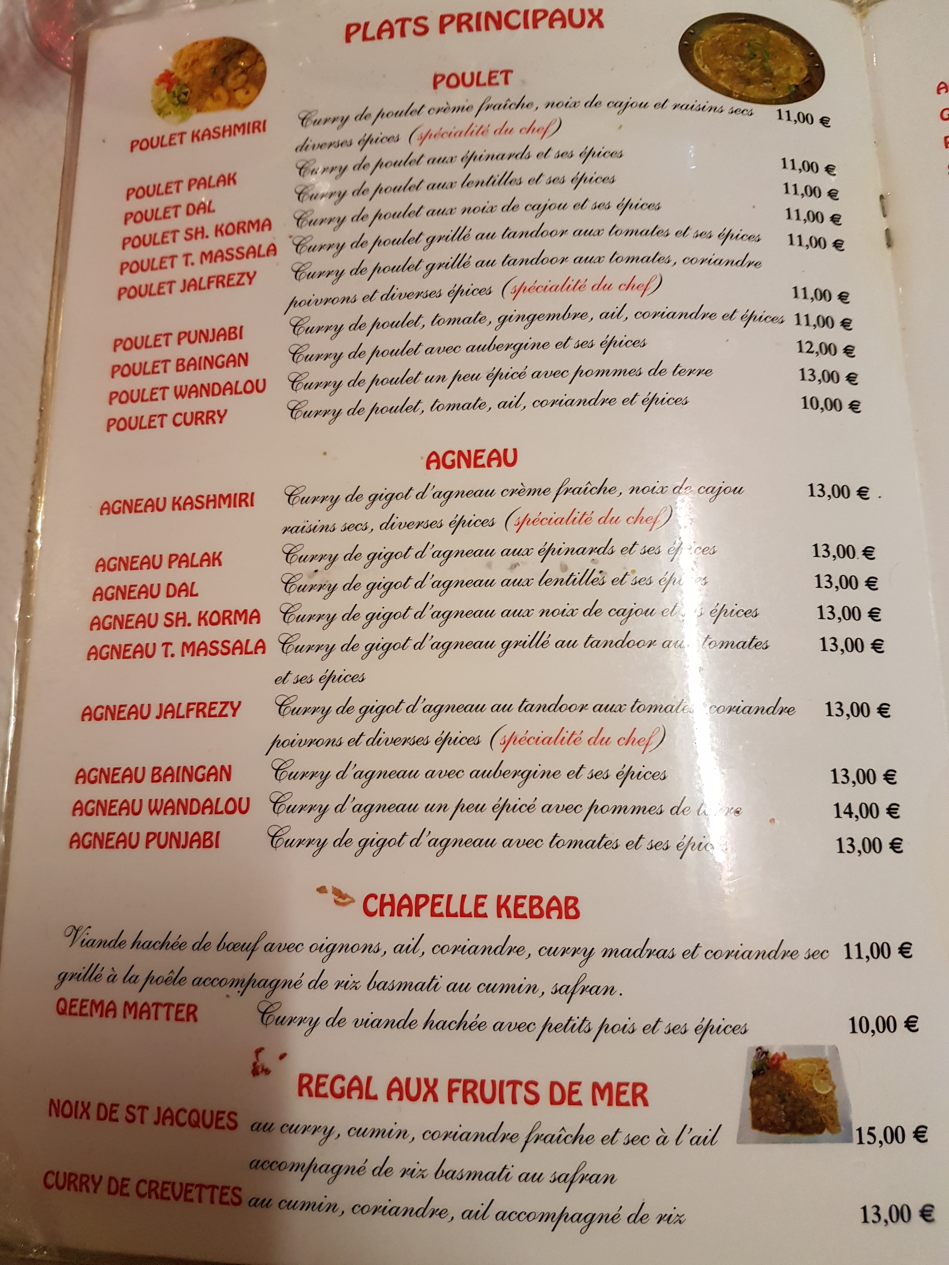 Leur poulet Kashmiri est excellent ! D'autres plats un peu plus fades mais cependant très bons. La déco est un peu défraichie mais a son charme.