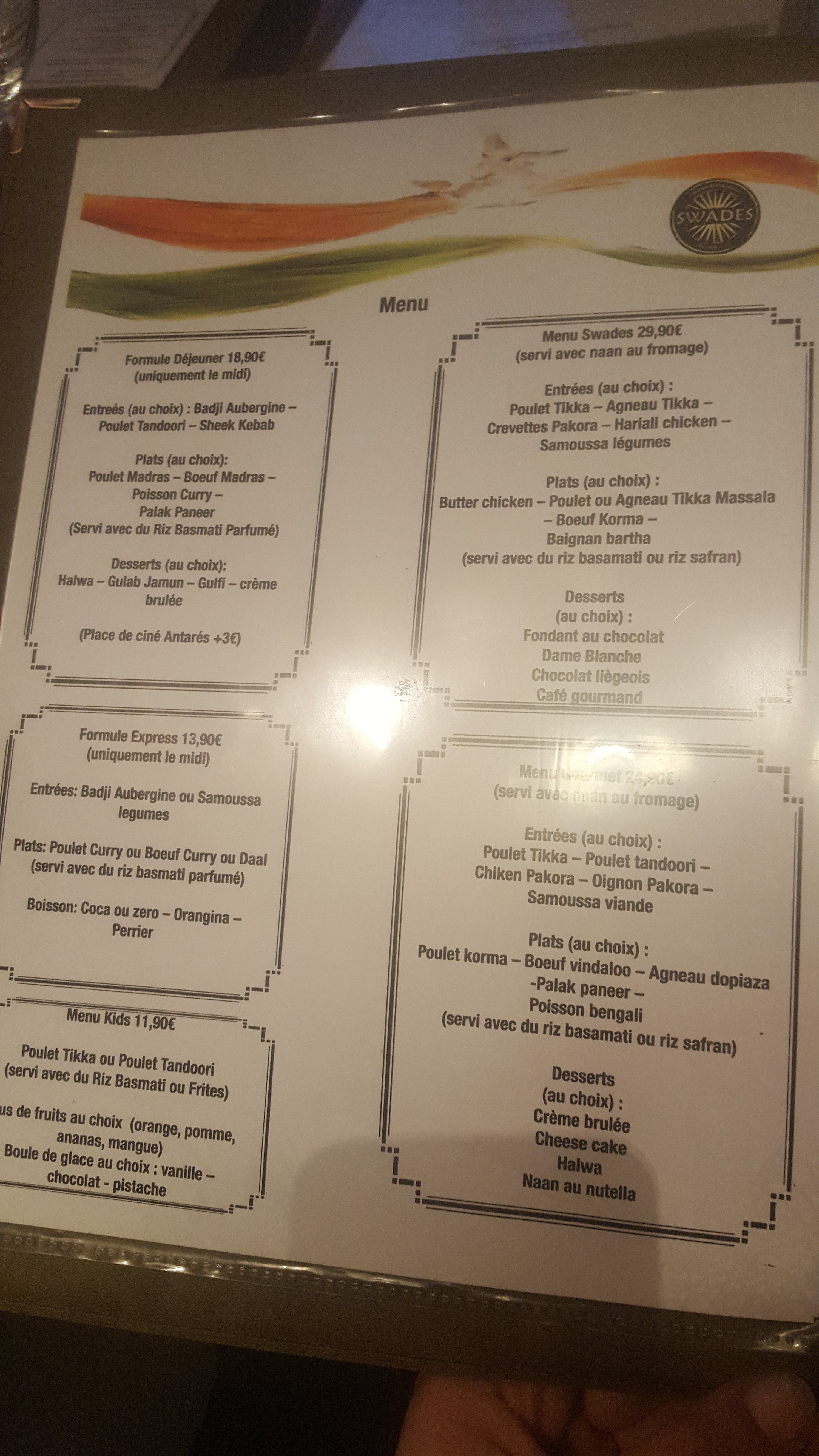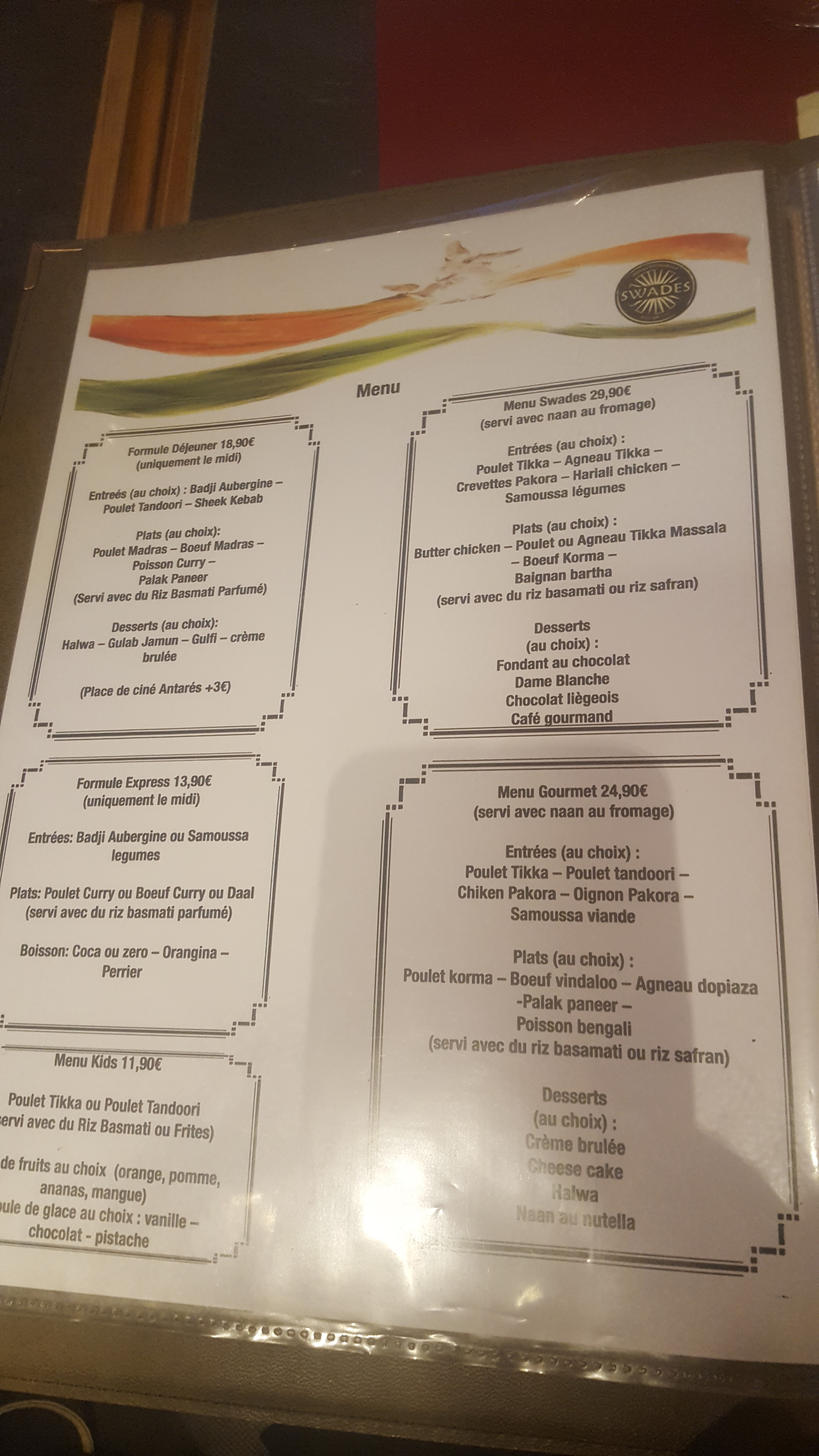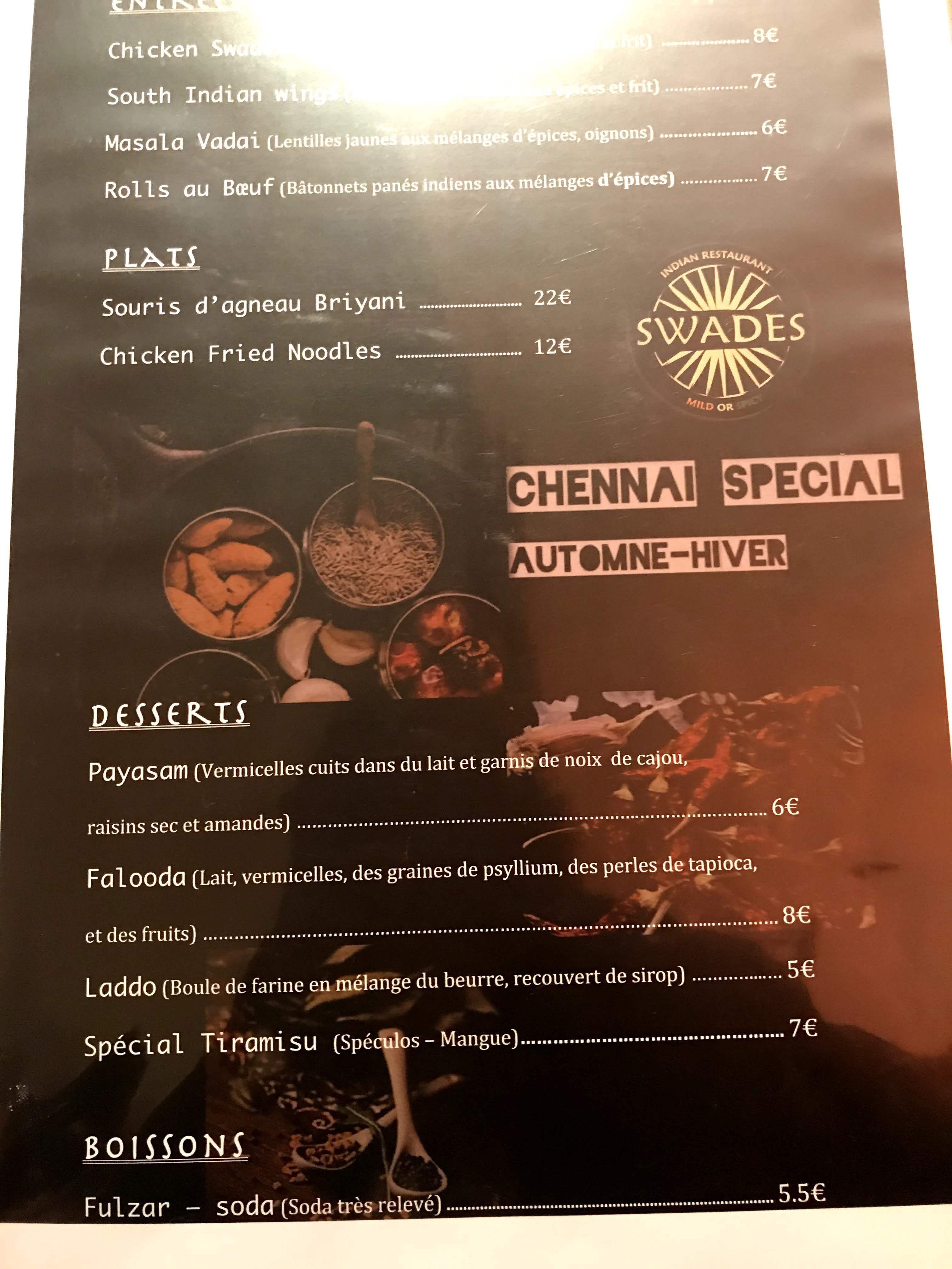 Une cuisine unique avec des recettes originales sous-poudré d'une touche personnelle made in swades qui font de leurs plats des mets exceptionnels. Leur piment maison, leur nouvelle carte aux plats unique avec des mélanges que l'on retrouve nulle part ailleurs. Une adresse à recommander !