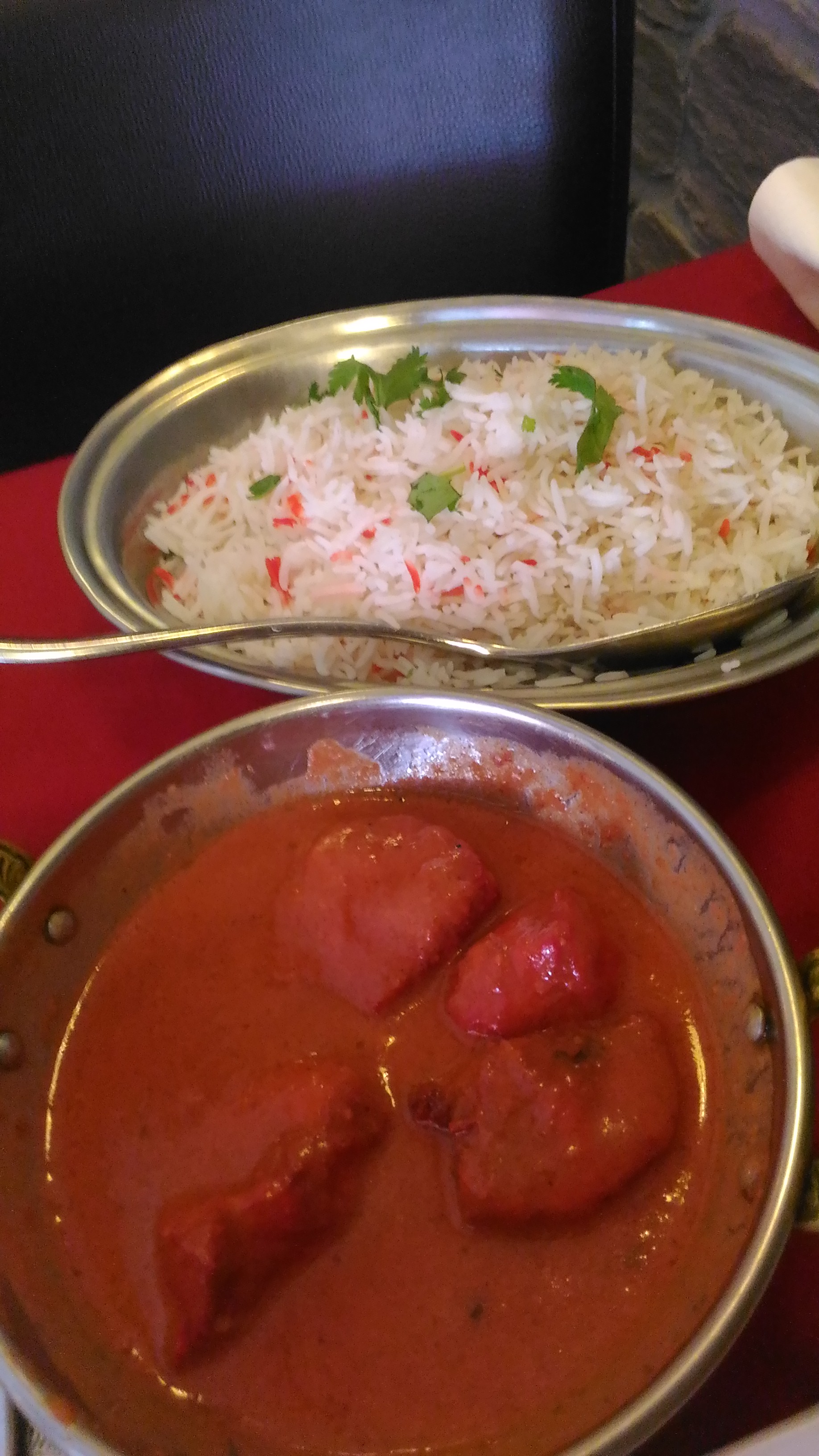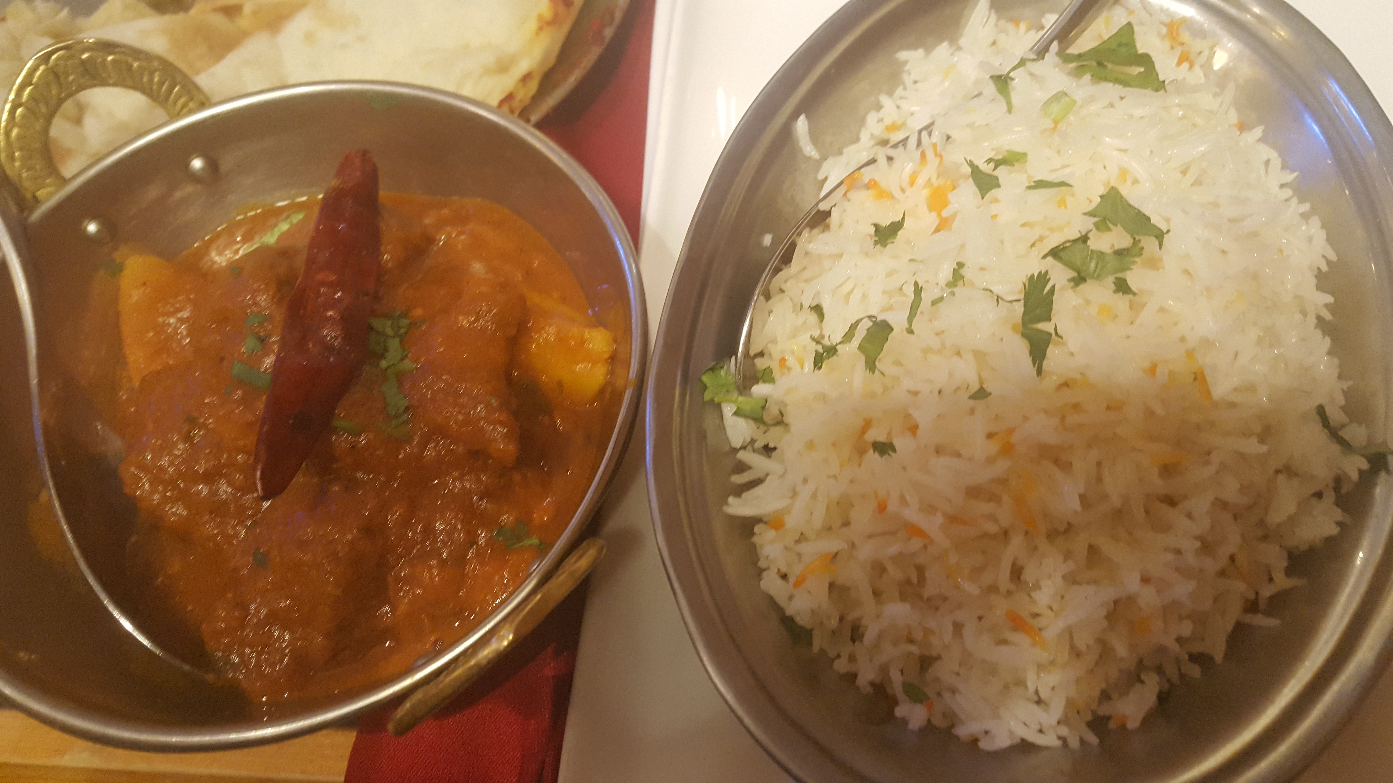 Une première fois dans ce resto et une très bonne surprise. Mon plat était épicé juste ce qu'il faut ( gambas tandoori sauce Massala), et mes amies se sont également régalées. J'y retournerai, sans aucun doute.