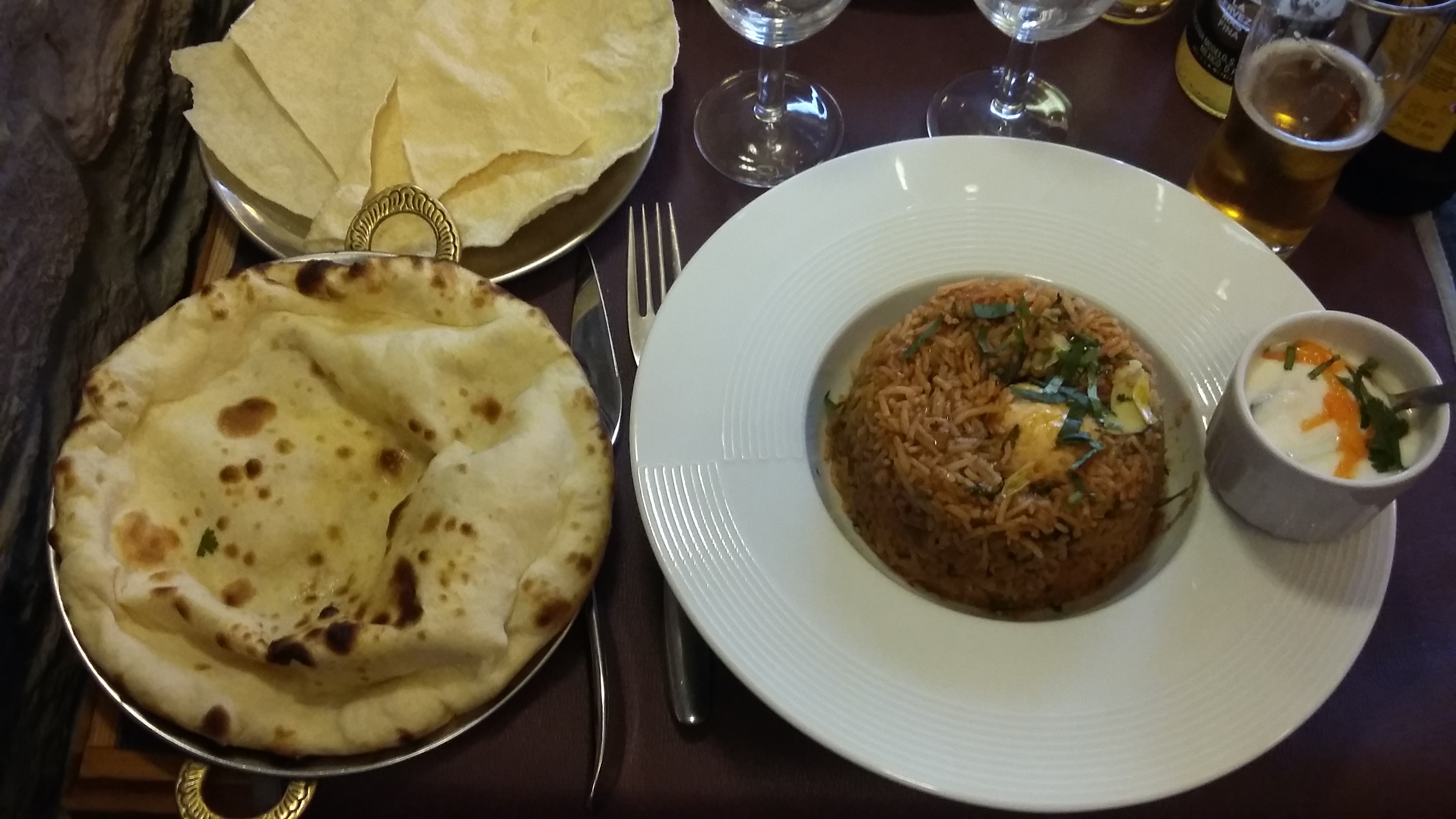 Que l'on veuille manger indien, ne nous autorise pas à trouver ce restaurant extraordinaire. Certes, je ne suis vraisemblablement pas un spécialiste de cette cuisine, mais pour en avoir fréquenté d'autres, ce dernier est basique. Il n'a pas la finesse des plats que j'ai apprécié il y a quelques mois, à Courbevoie. Les quantités sont raisonnables, le service est attentionné, mais. Et justement, ce mais fait la différence. Si je me base sur mon plat principal, le Biryani aux crevettes, je suis capable de le faire à la maison, aussi bon, aussi copieux et pour moins cher. Plus parfumé certainement, car dans ce restaurant, les épices restent les mêmes, pas plus dosées selon les ingrédients. Dommage !