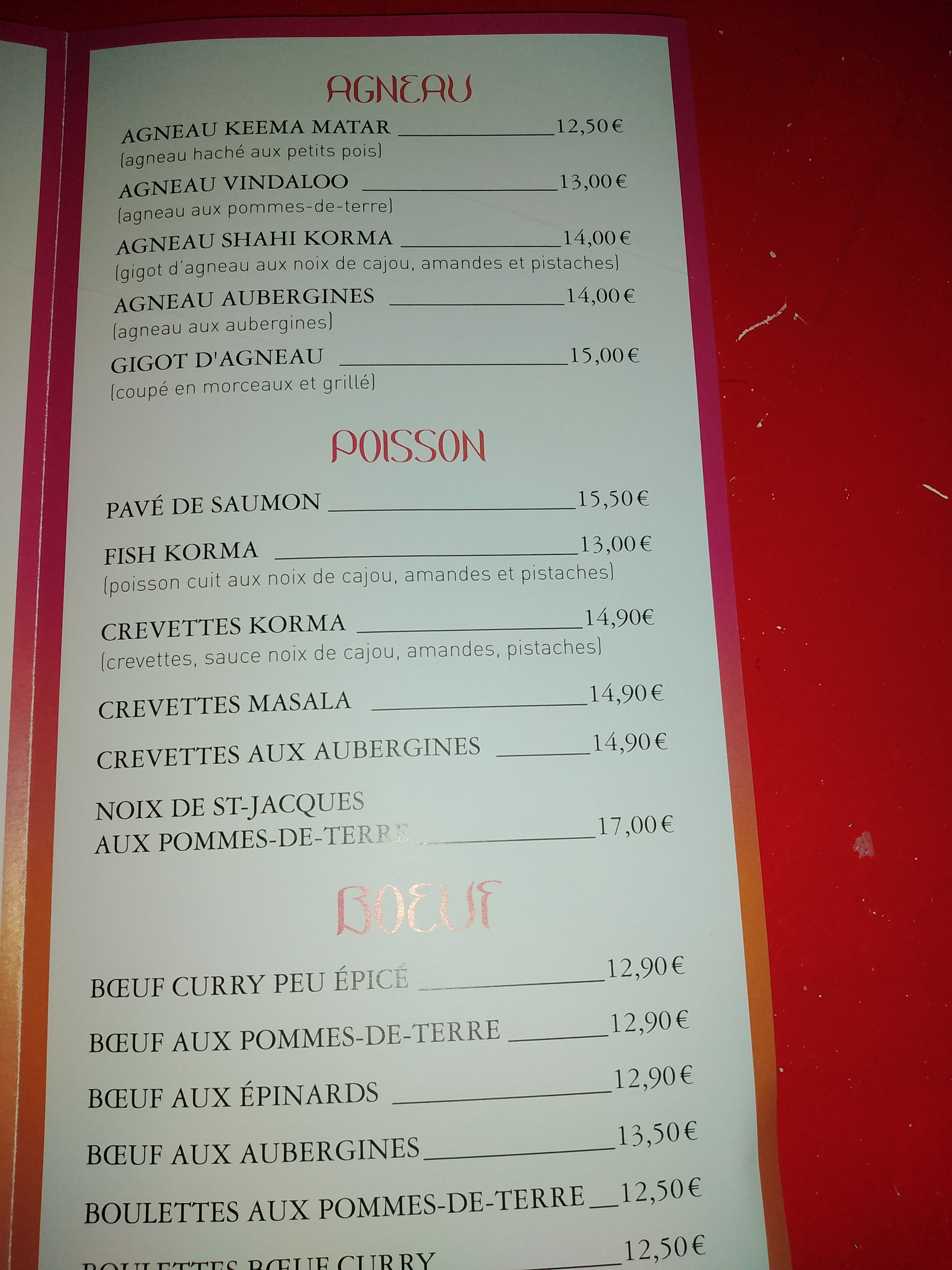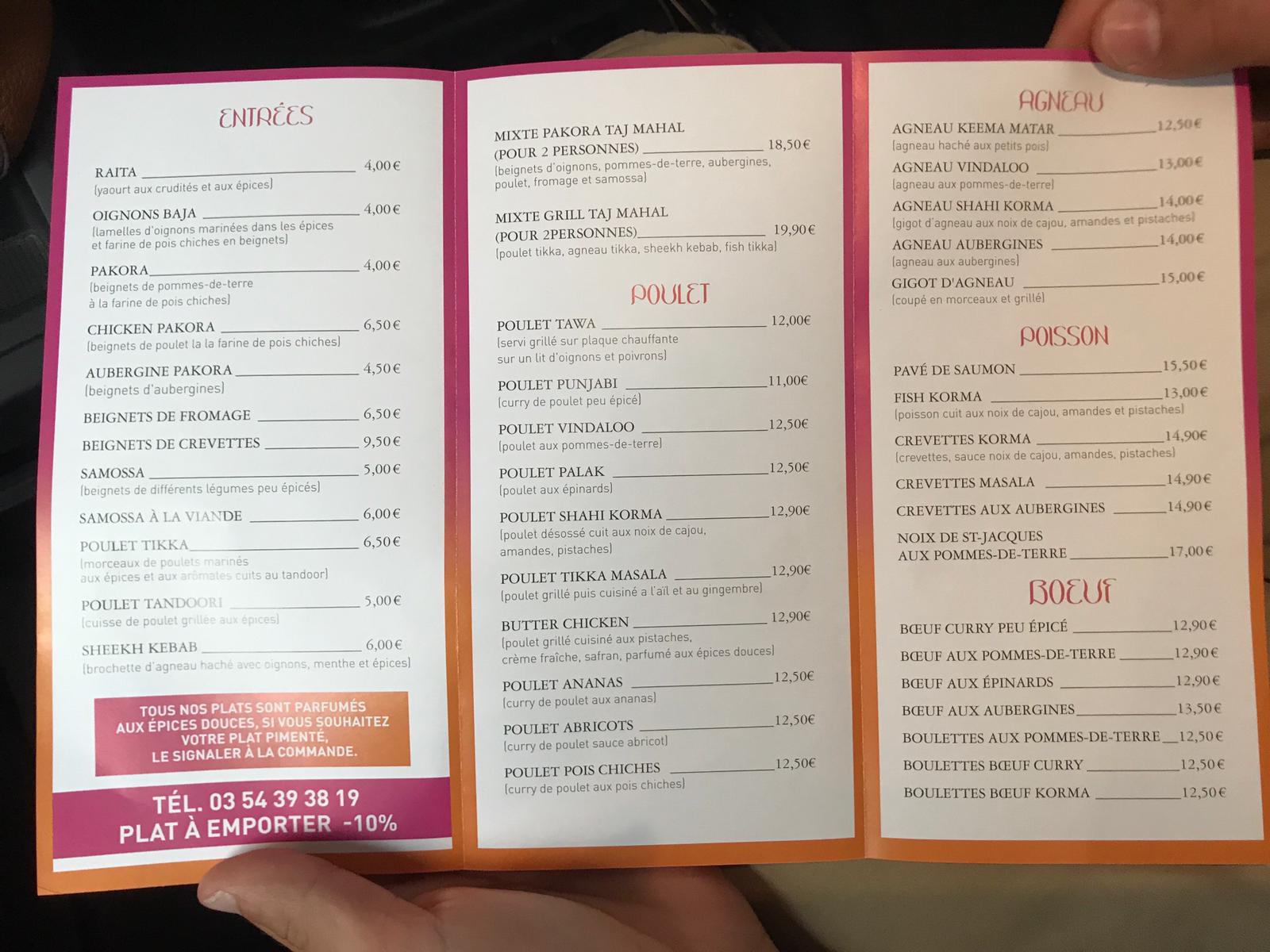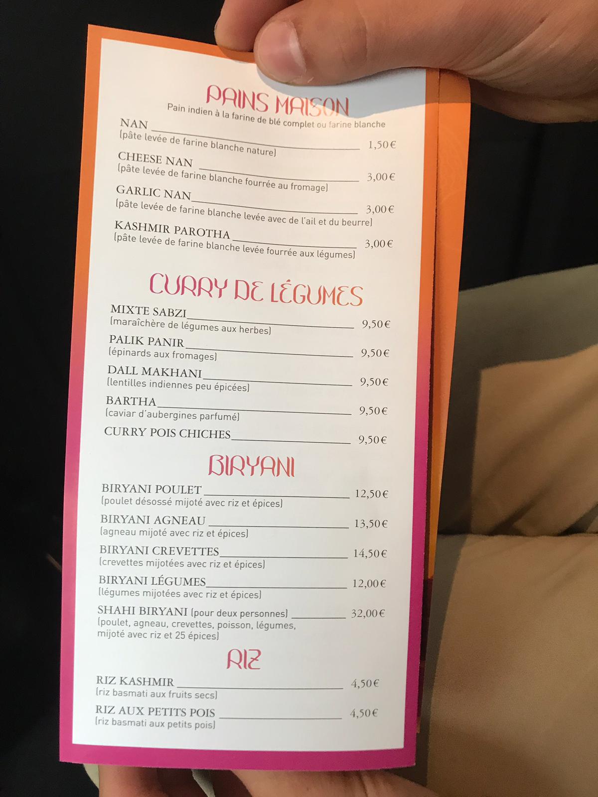 Enfin un resto indien dans le coin. Il est très prometteur. Beaucoup de plats alléchants et aux senteurs variées. Un serveur sympathique. Un cadre agréable. C'est des héros ces gens !! :)